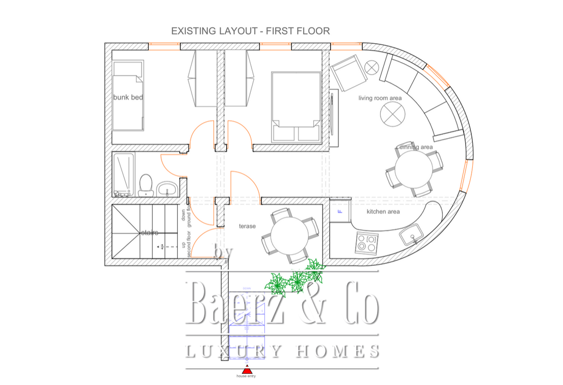 La demeure s’élève sur trois niveaux, chacun abritant un appartement indépendant de 50 mètres carrés. Sa façade en pierre fait écho au patrimoine architectural local et s’intègre harmonieusement à l’environnement naturel. Deux places de parking privées et un accès direct par route asphaltée garantissent une arrivée aisée, tandis que l’entrée principale située au premier étage assure une discrétion accrue.
