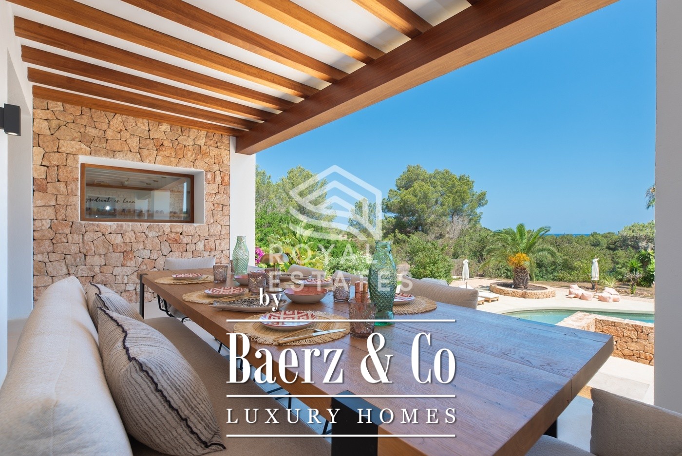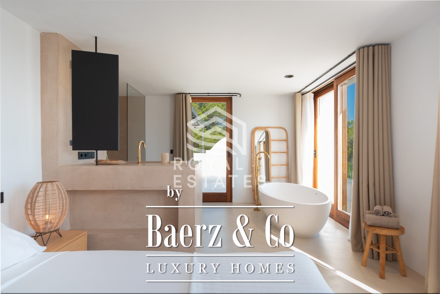 Villa Cala Bassa conjugue luxe discret et art de vivre à Ibiza au sein d’une remarquable demeure de 586 m². Cette villa à Cala Bassa se distingue par ses vues panoramiques sur la mer et son emplacement privilégié à quelques pas de Cala Bassa et Cala Comte. La propriété se démarque par la sophistication de son confort, son ameublement complet et une prestation clé en main particulièrement soignée, conçue pour anticiper les besoins d’une clientèle internationale.