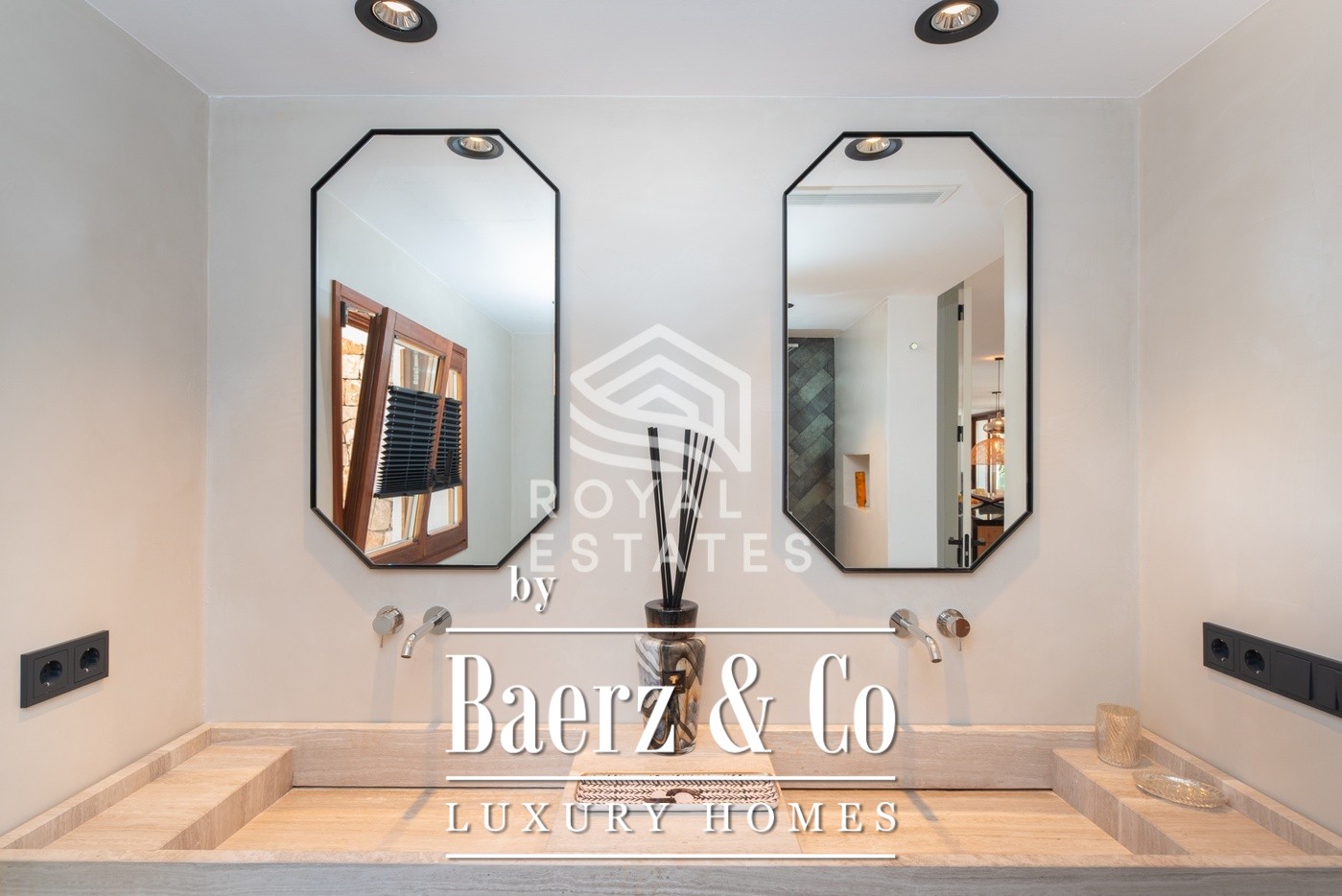 Sur un domaine privé de 4 000 m² sans voisins directs, la sécurité est renforcée par un système d’alarme et de vidéosurveillance de dernière génération. L’engagement durable s’illustre par l’installation de panneaux solaires, le recyclage des eaux grises et la purification de l’eau. La villa la plus raffinée de Cala Bassa à la vente se prête aussi bien à un refuge familial confidentiel, une base de vacances d’exception, ou un pied-à-terre sophistiqué pour recevoir sur l’île.