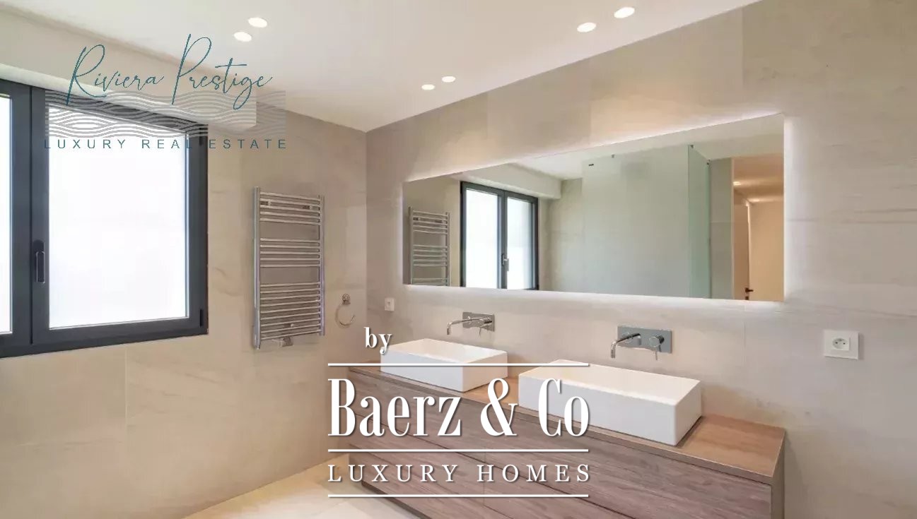 Une large terrasse plein sud d’environ 50 m² relie l’intérieur à l’immensité de la mer, inondant le double séjour de lumière naturelle. La sobriété des lignes et l'équilibre des proportions distinguent chaque espace, depuis l’entrée, la vaste zone de réception de 57 m², jusqu’à la cuisine séparée entièrement équipée et une buanderie fonctionnelle.