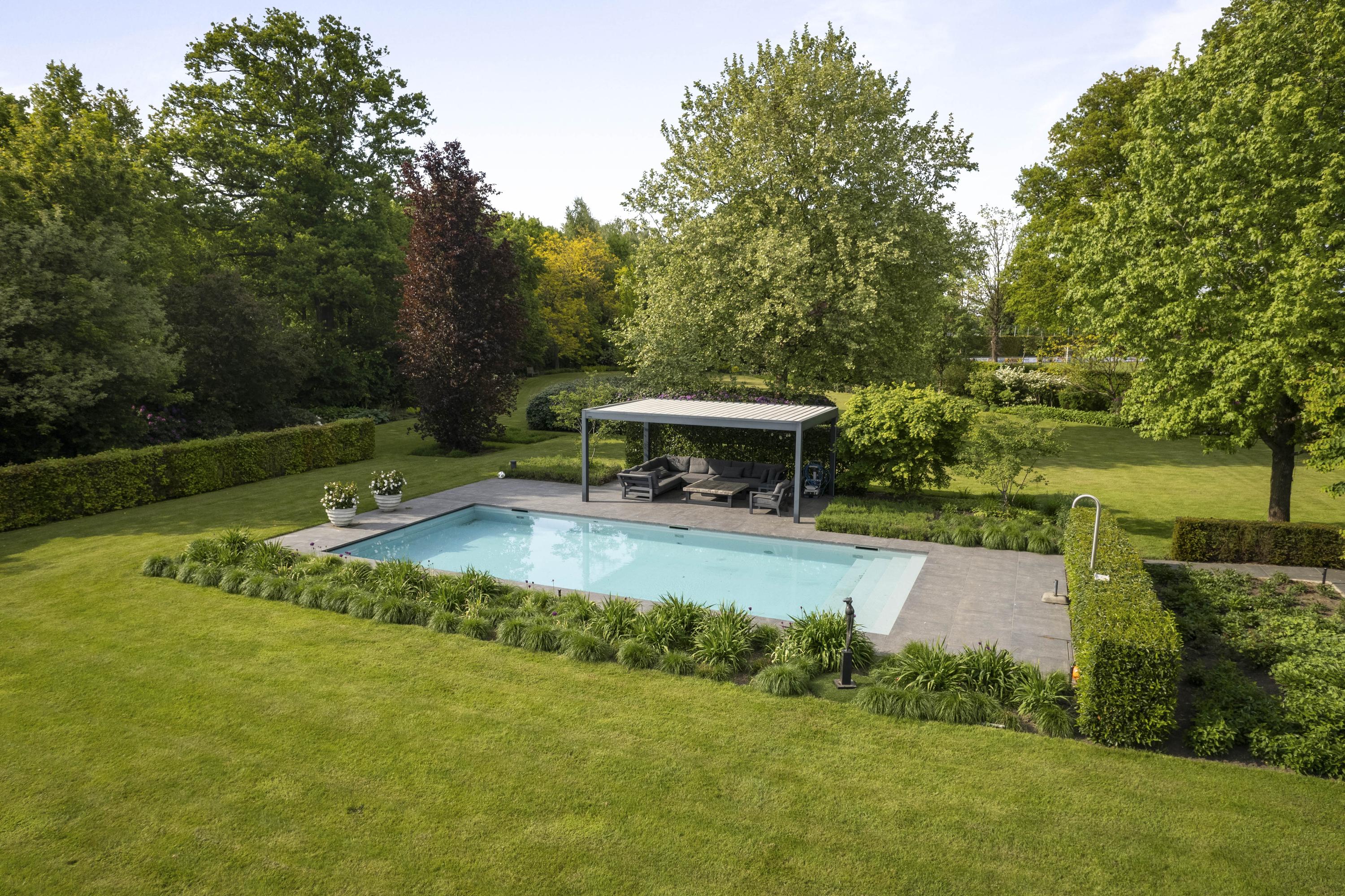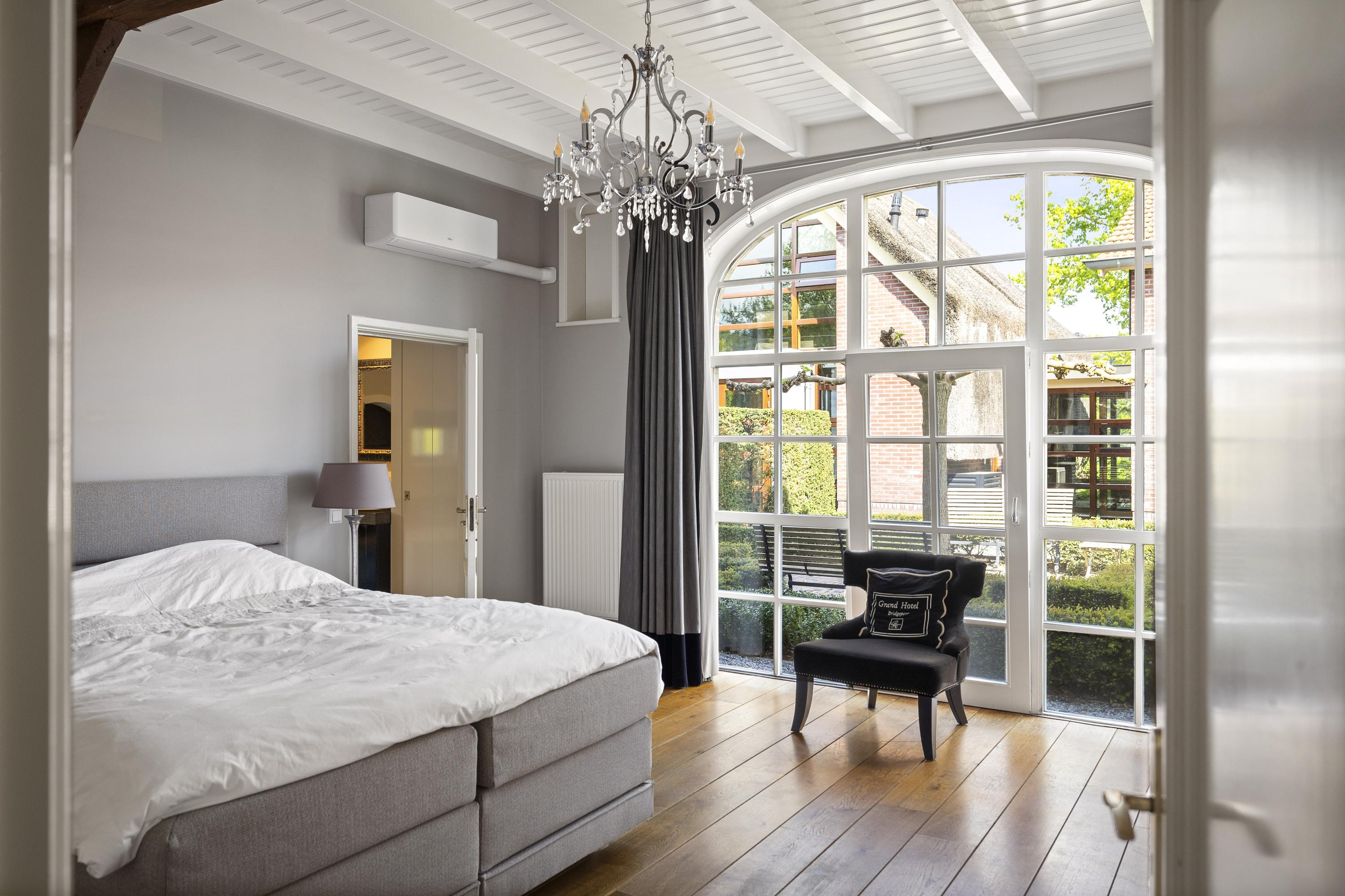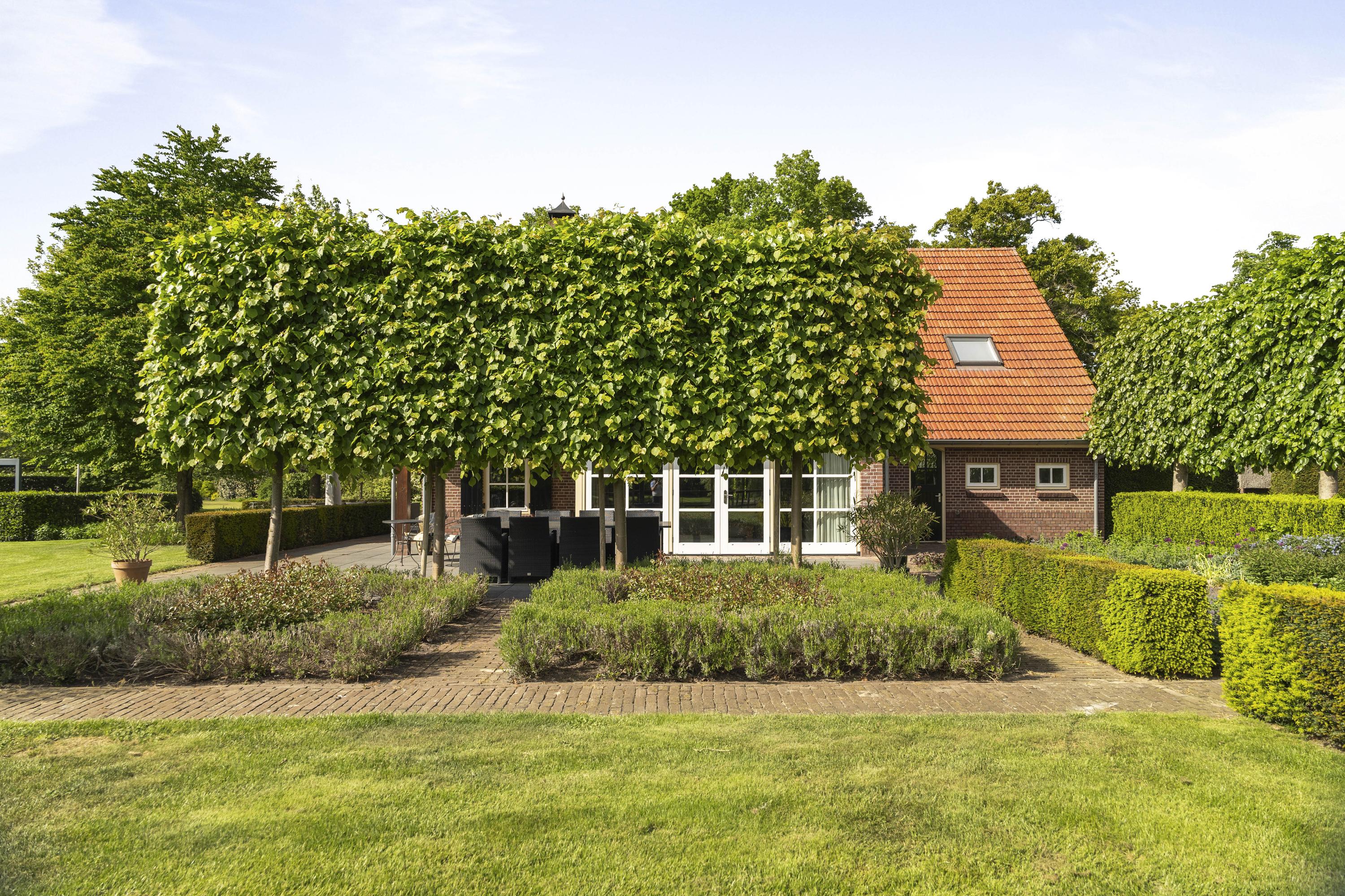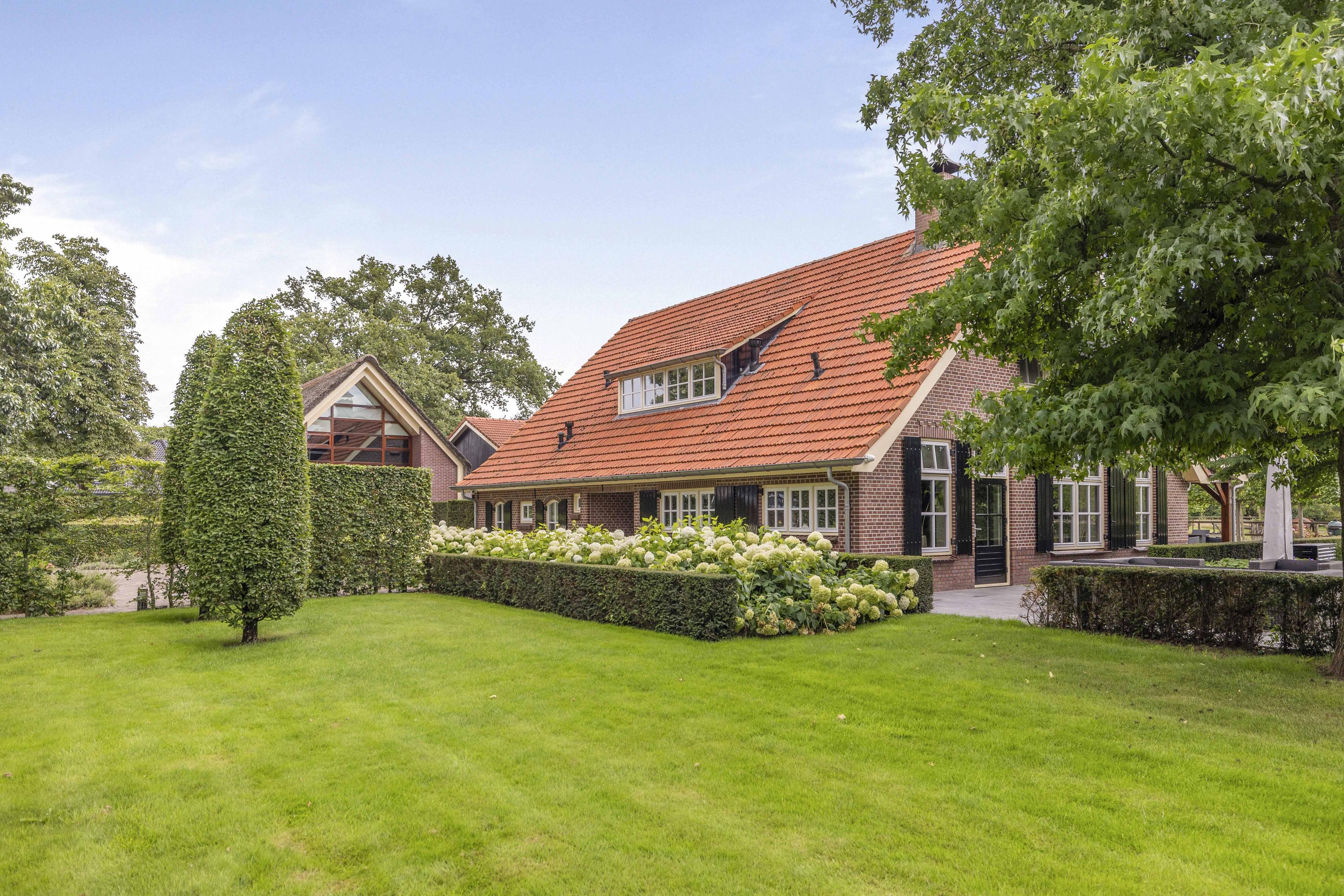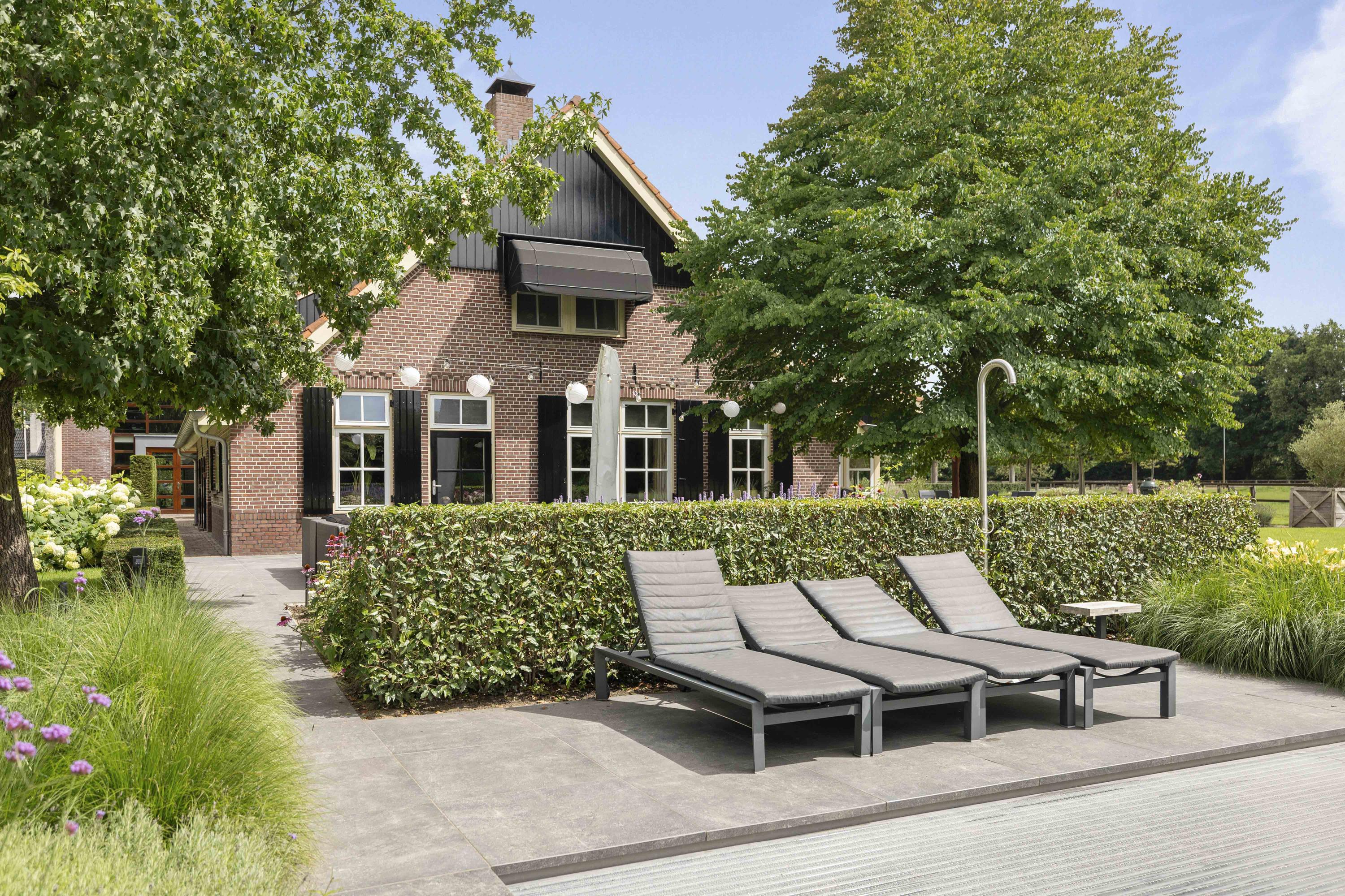 La vie extérieure est préservée par une végétation mature, des jardins d’ornement et une piscine chauffée avec terrasse ensoleillée. L’accès est confidentiel par deux voies distinctes et la sécurité, tout comme le confort, sont garantis par un système d’alarme, une ventilation mécanique et équilibrée, la climatisation et la fibre optique. Cette propriété offre un équilibre subtil entre histoire et confort pour les amateurs de vie à la campagne, à deux pas du cœur de Geesteren.