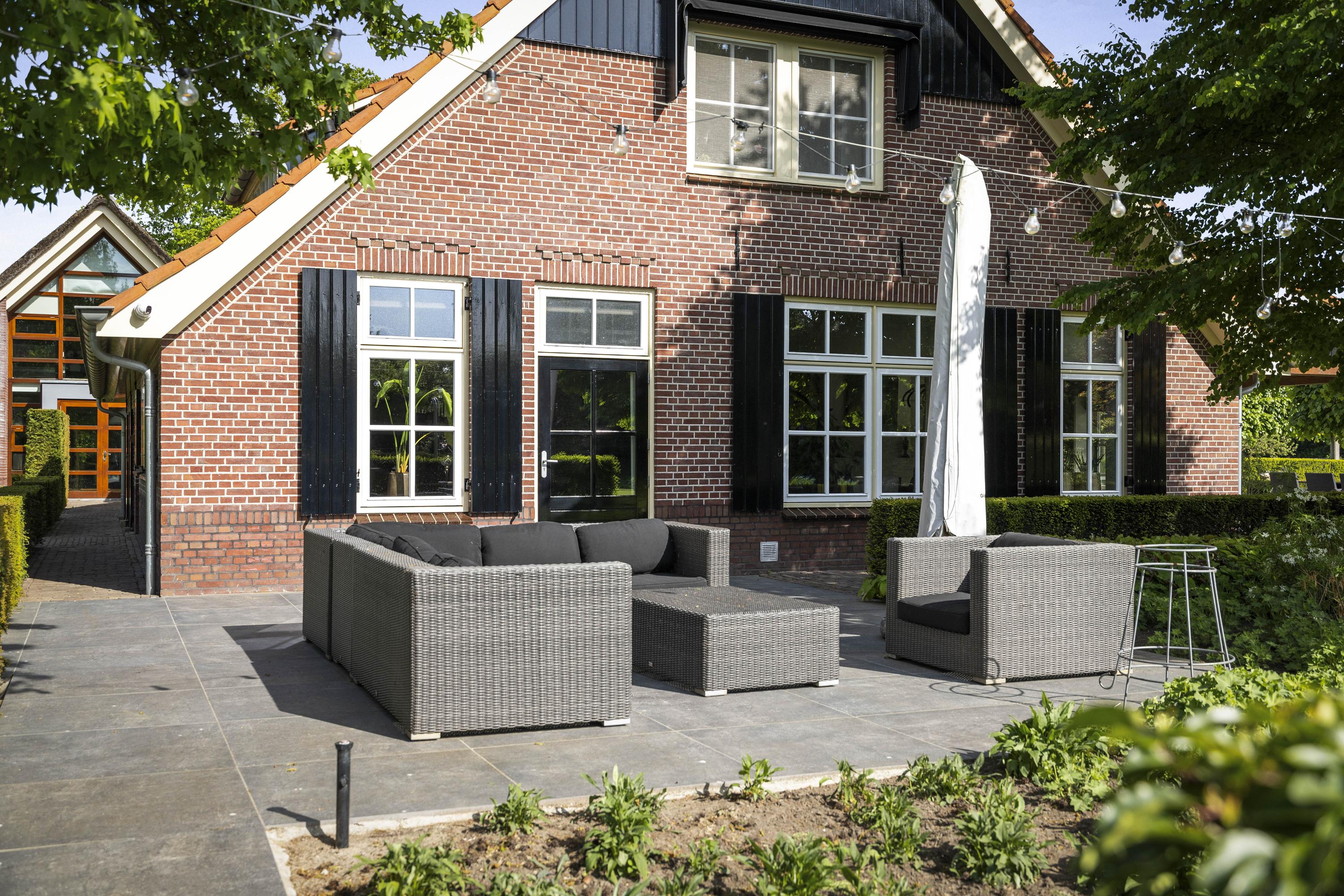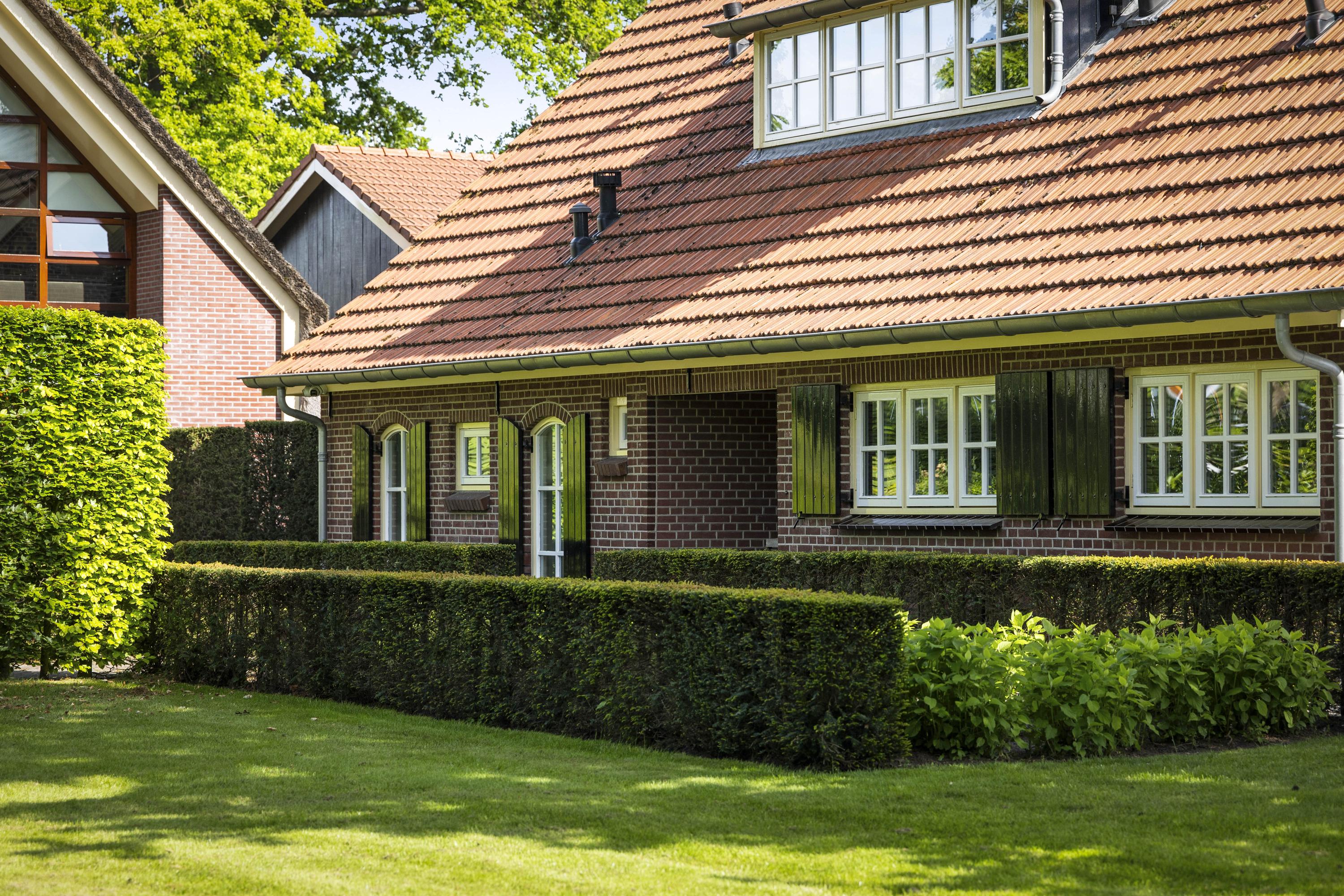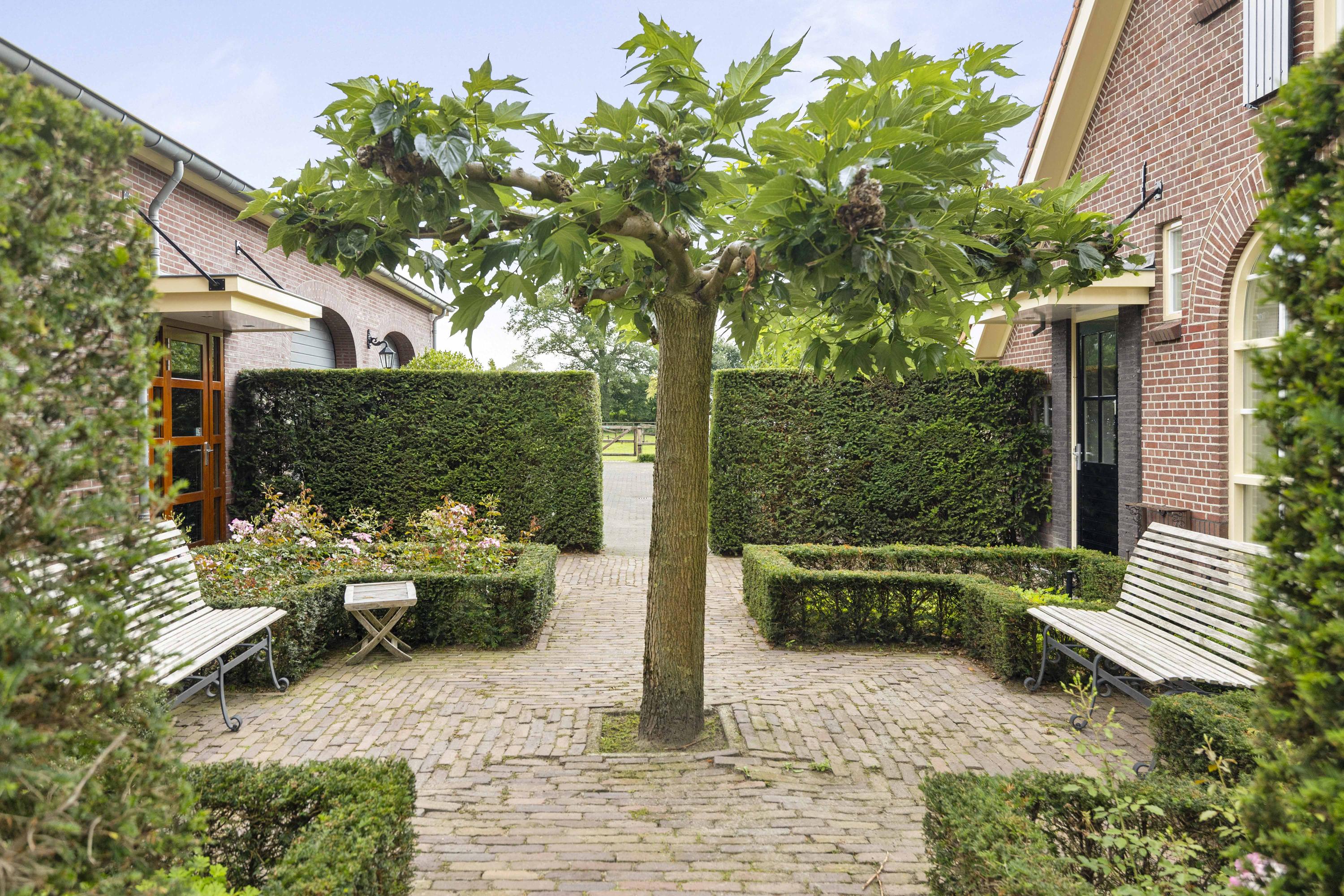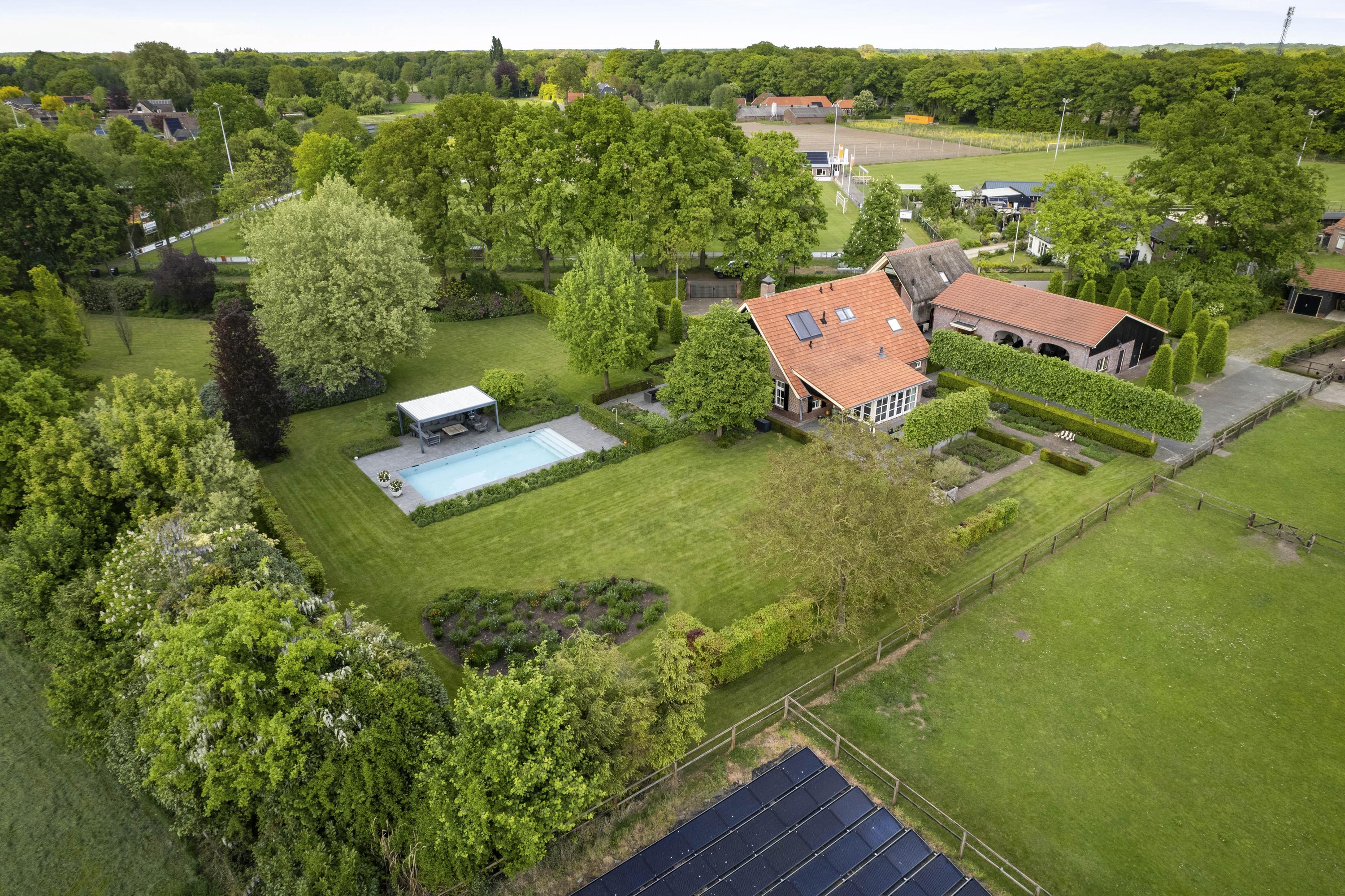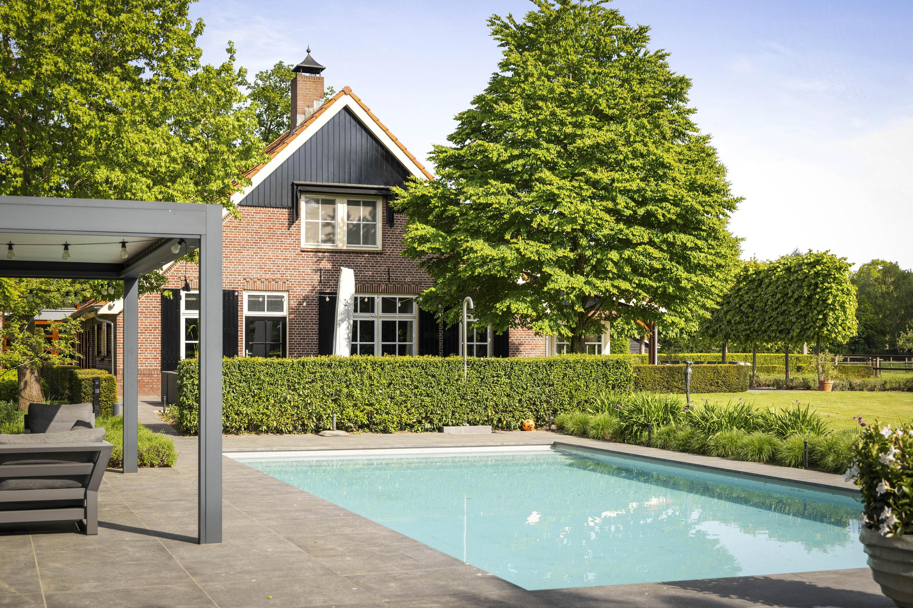 La vie extérieure est préservée par une végétation mature, des jardins d’ornement et une piscine chauffée avec terrasse ensoleillée. L’accès est confidentiel par deux voies distinctes et la sécurité, tout comme le confort, sont garantis par un système d’alarme, une ventilation mécanique et équilibrée, la climatisation et la fibre optique. Cette propriété offre un équilibre subtil entre histoire et confort pour les amateurs de vie à la campagne, à deux pas du cœur de Geesteren.