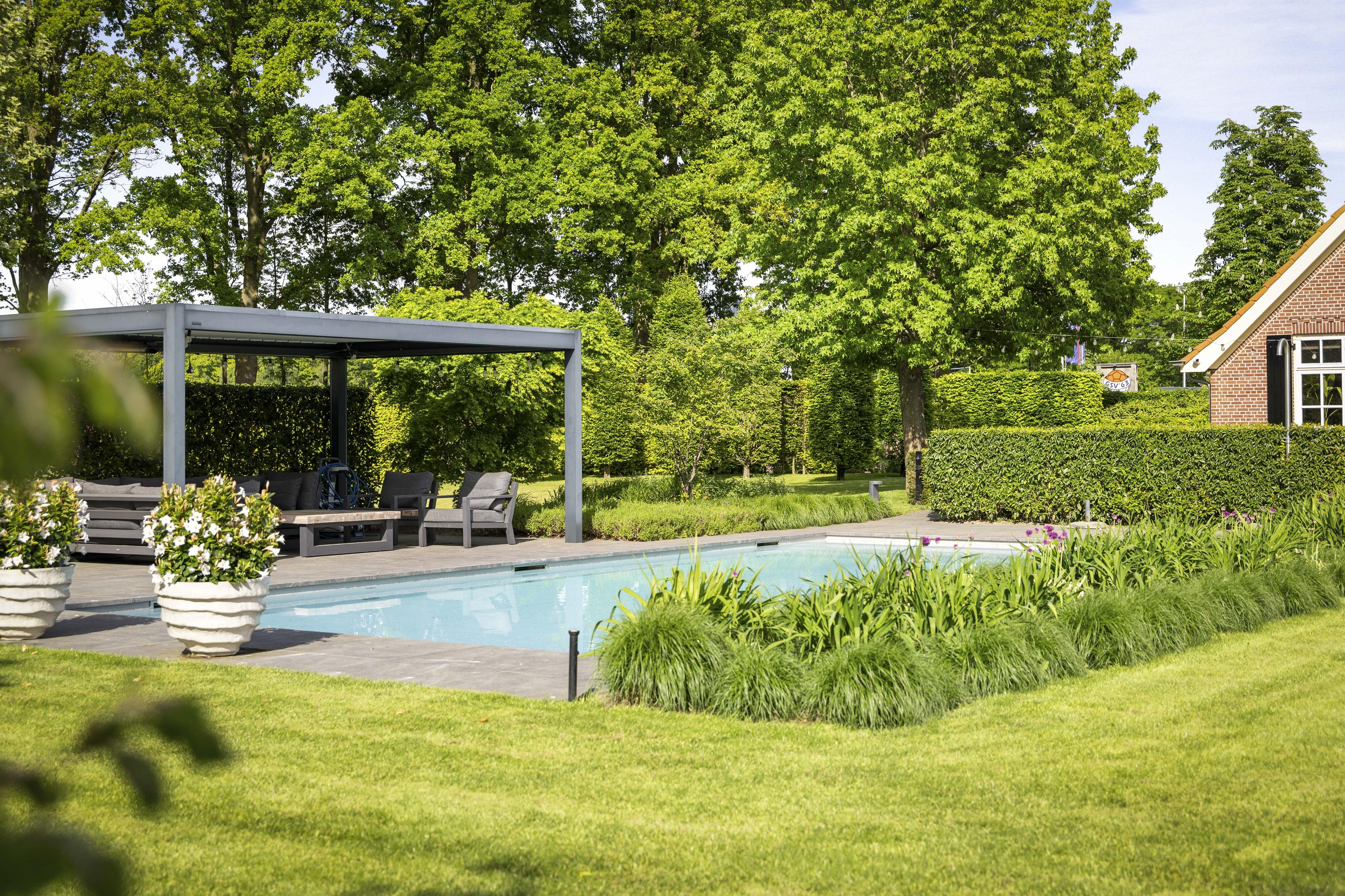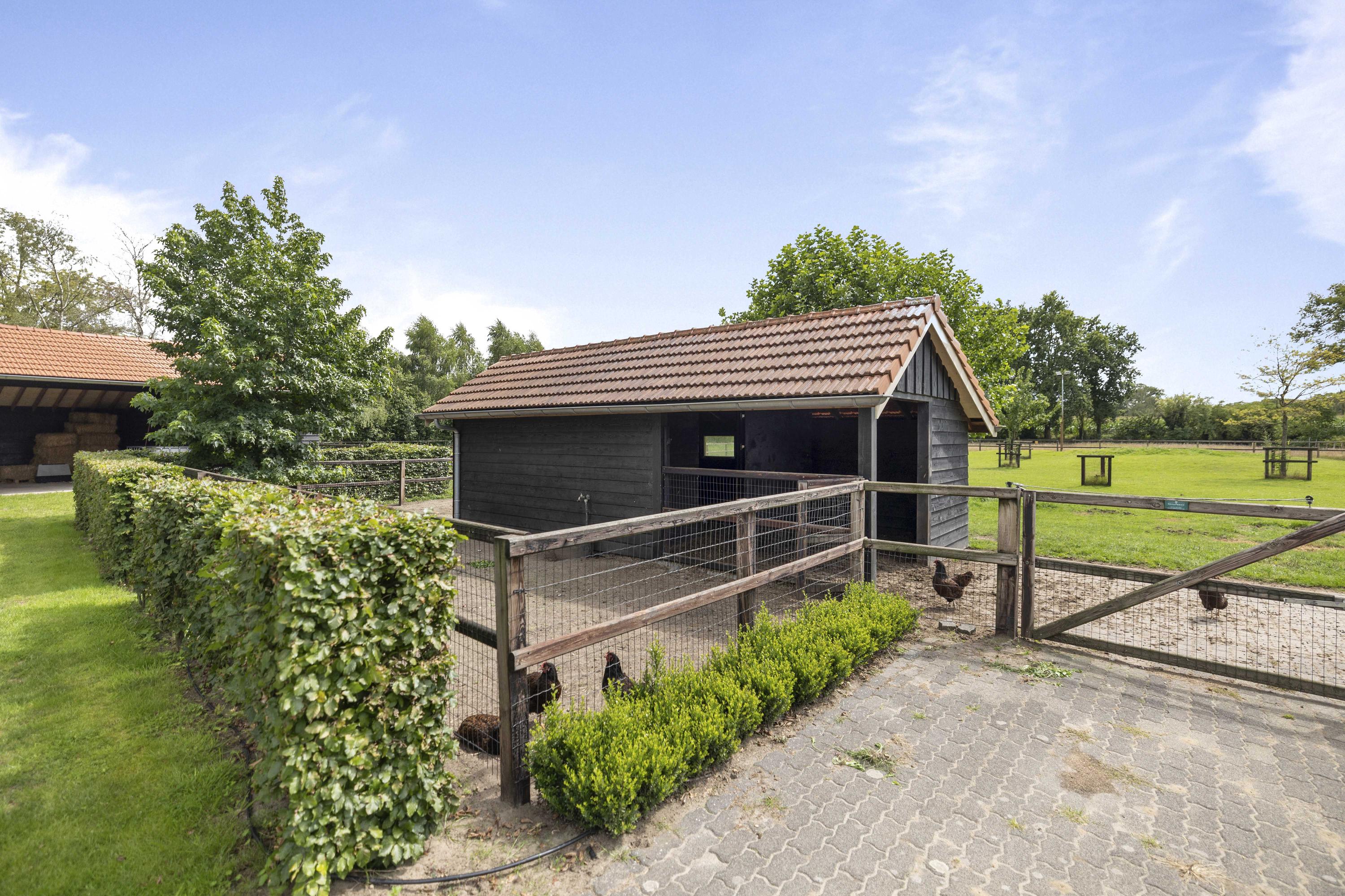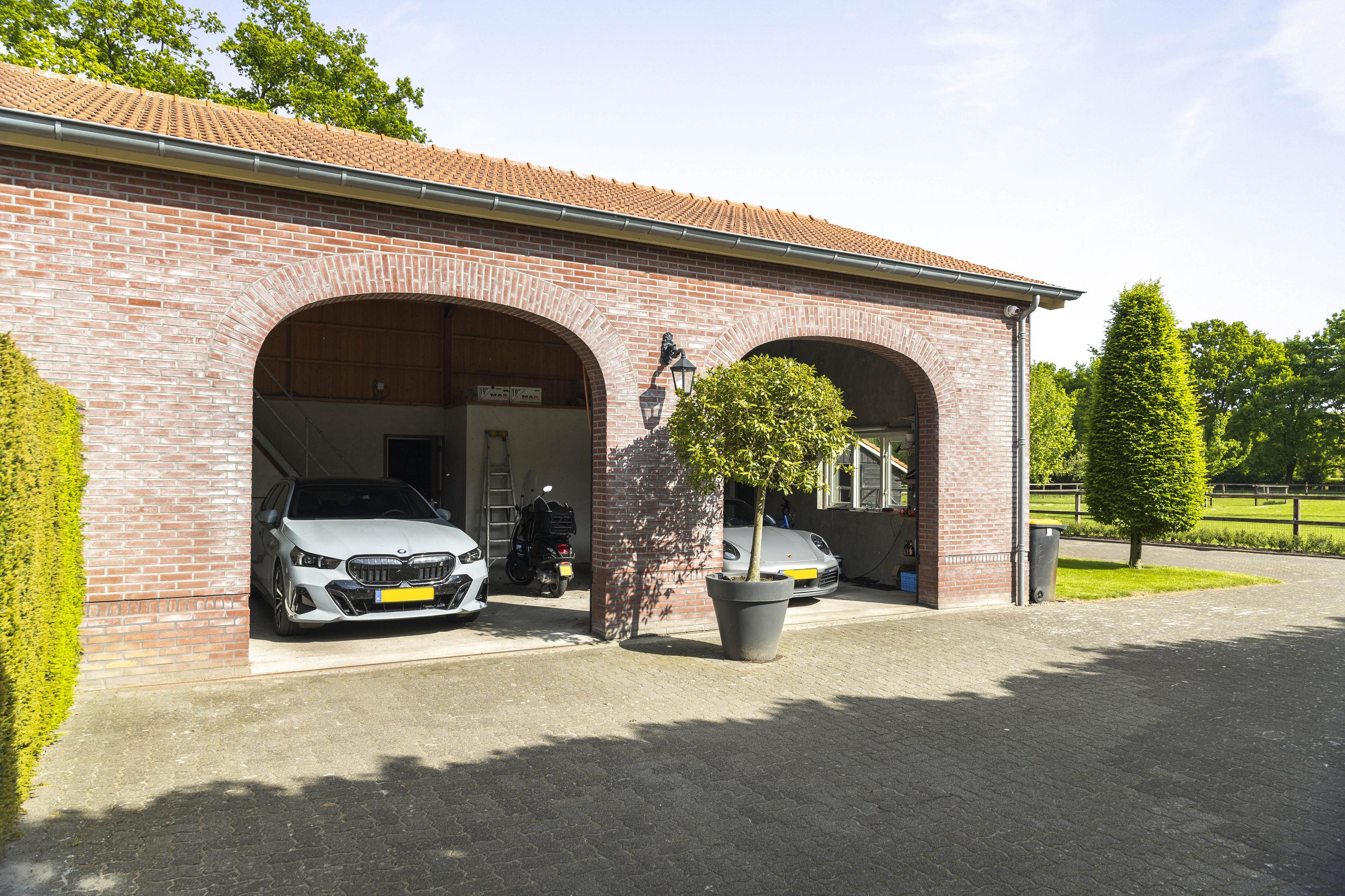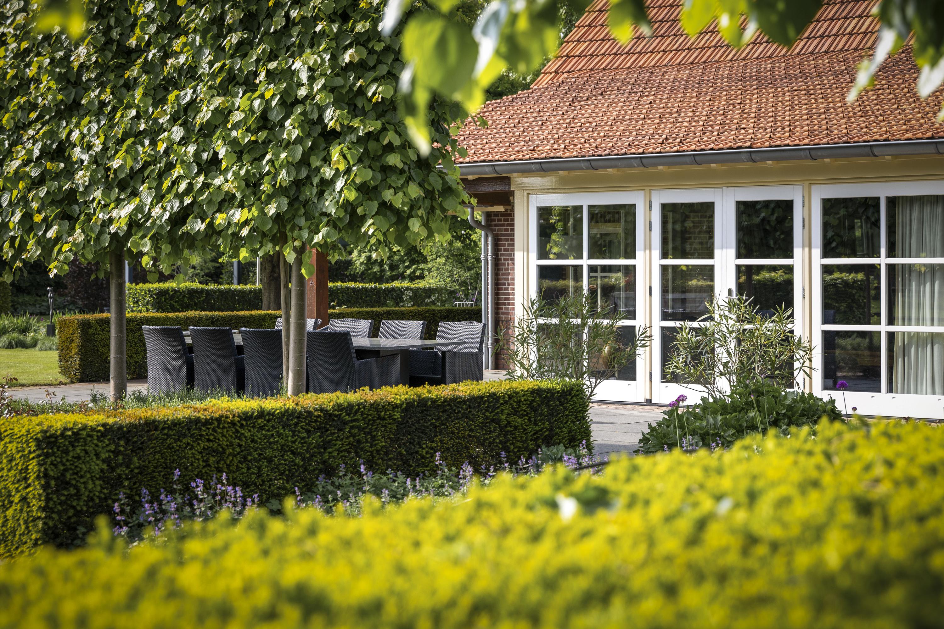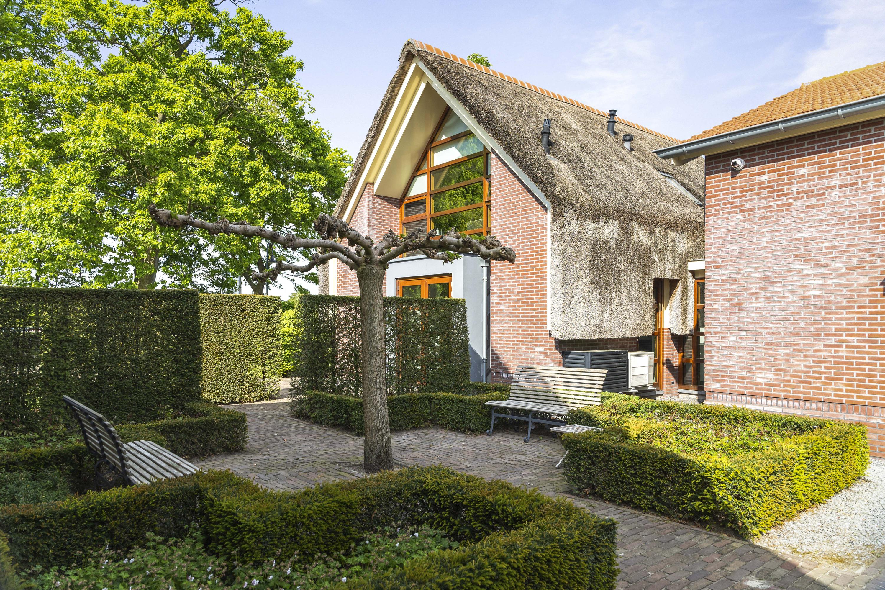 La vie extérieure est préservée par une végétation mature, des jardins d’ornement et une piscine chauffée avec terrasse ensoleillée. L’accès est confidentiel par deux voies distinctes et la sécurité, tout comme le confort, sont garantis par un système d’alarme, une ventilation mécanique et équilibrée, la climatisation et la fibre optique. Cette propriété offre un équilibre subtil entre histoire et confort pour les amateurs de vie à la campagne, à deux pas du cœur de Geesteren.