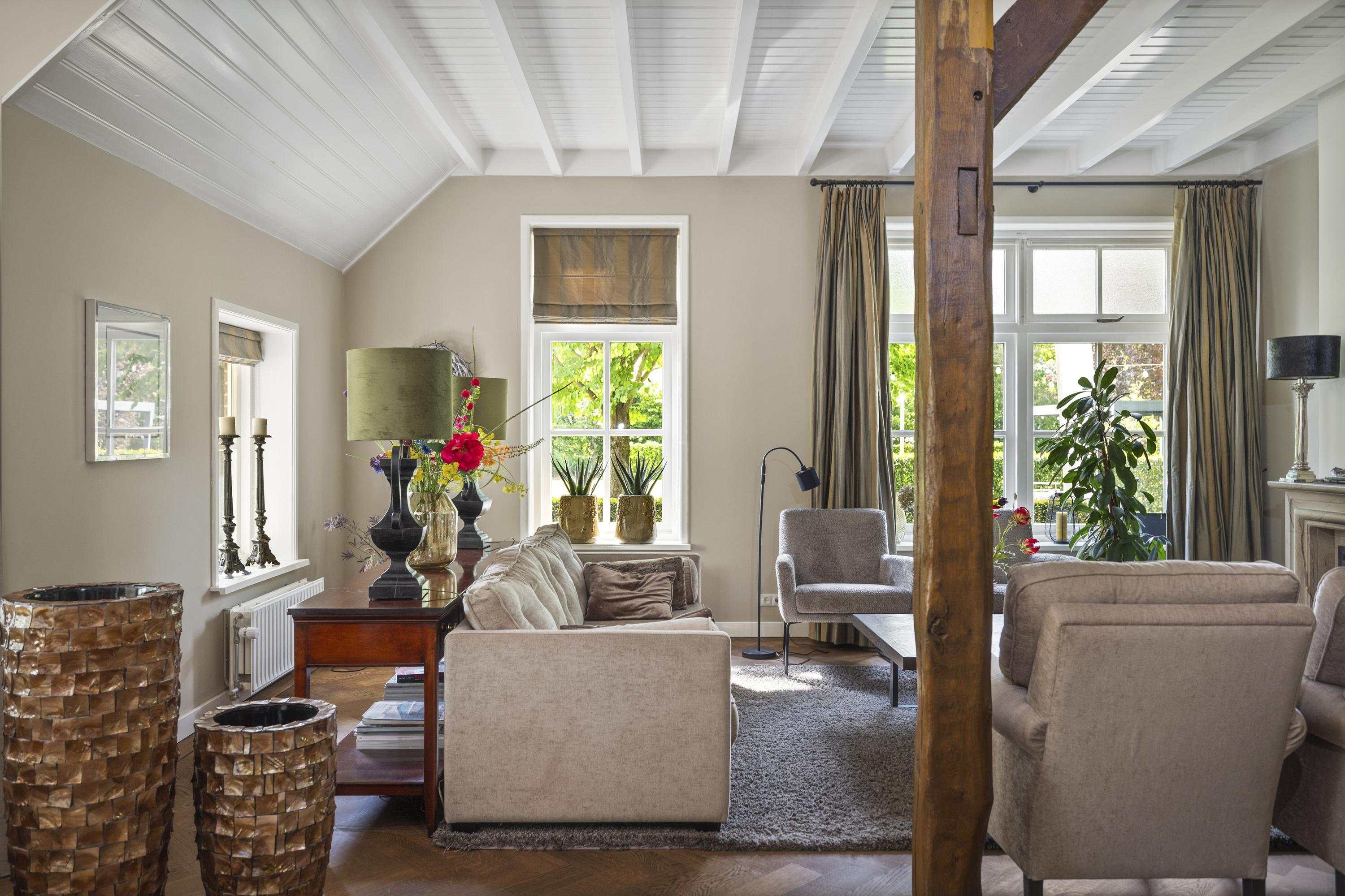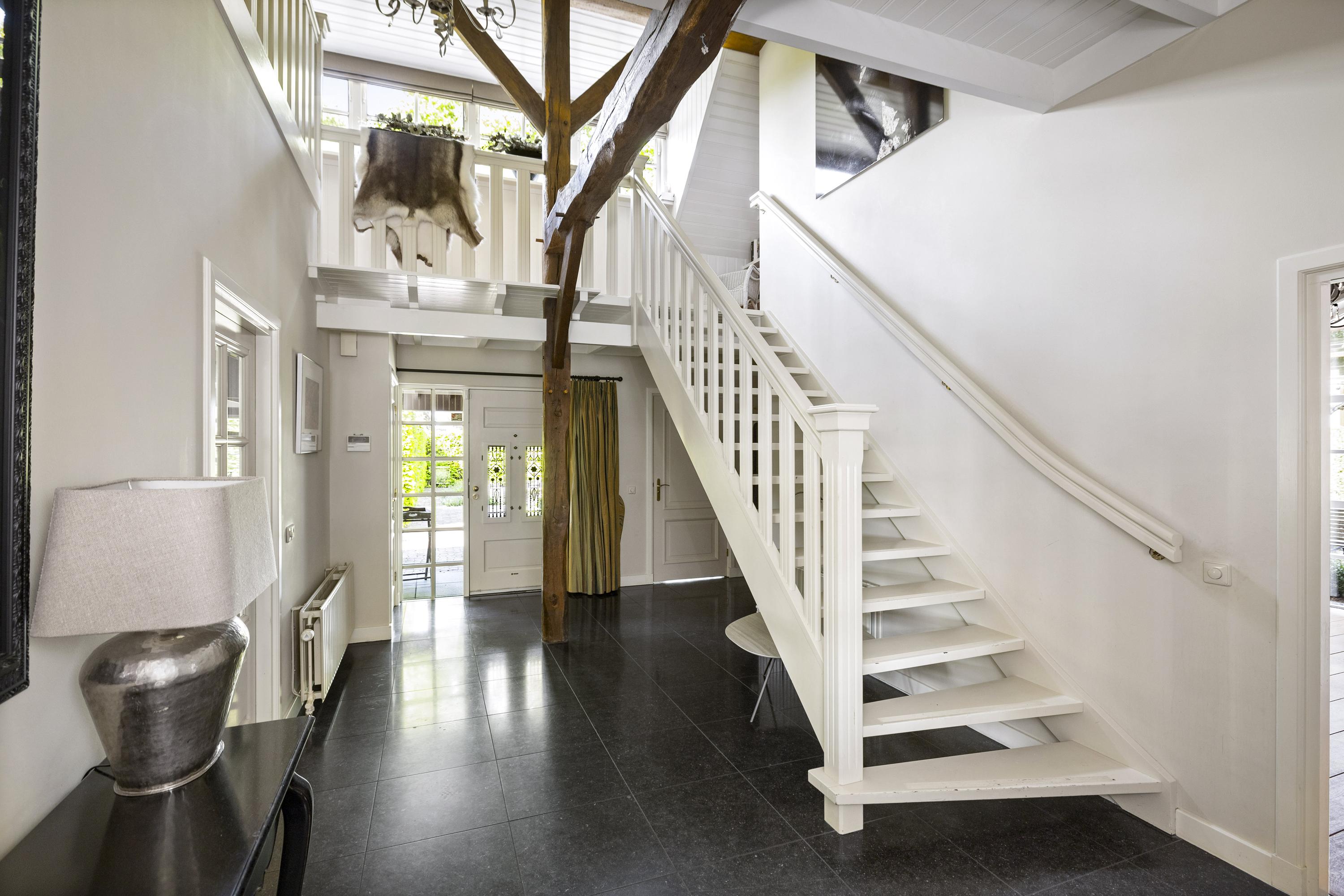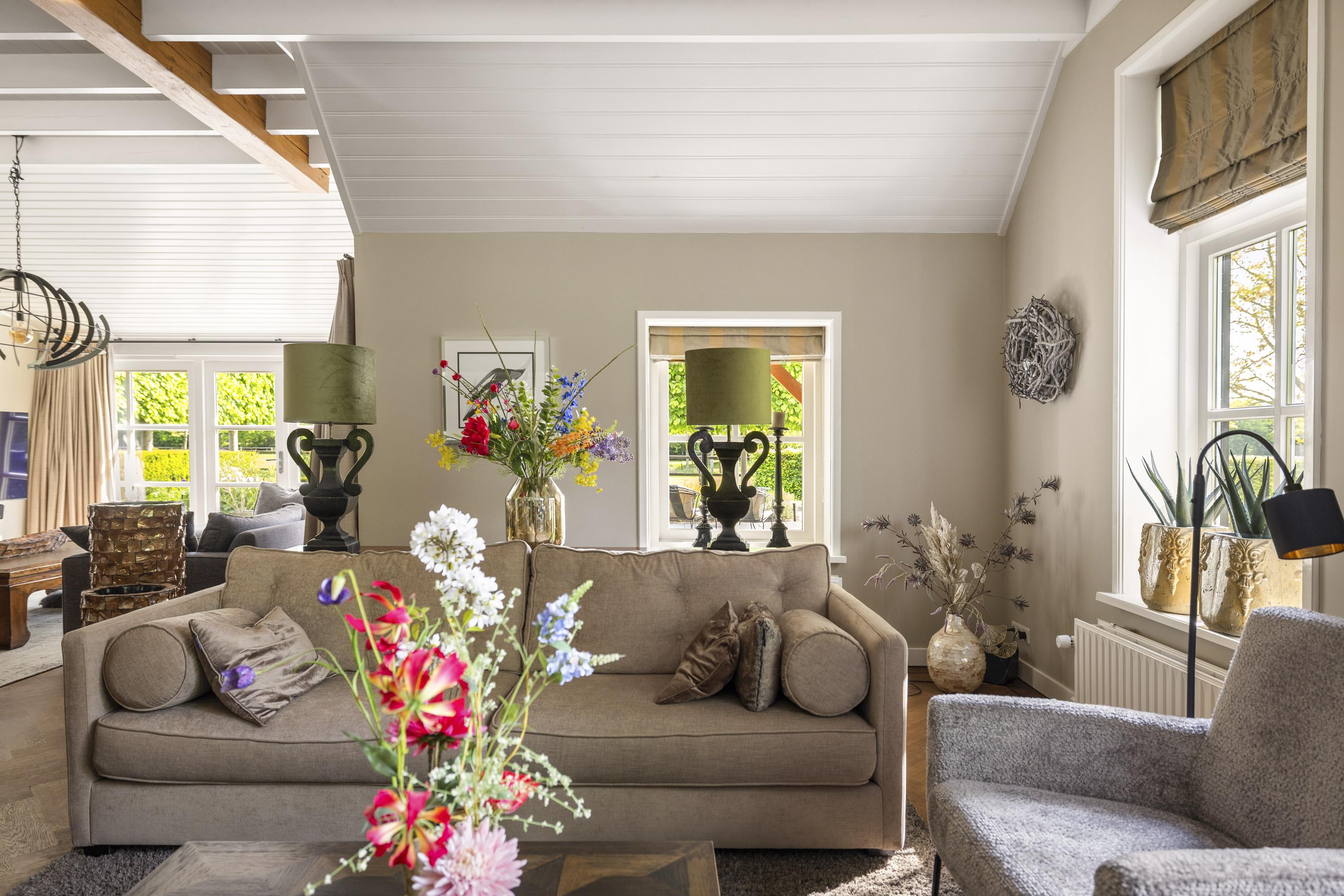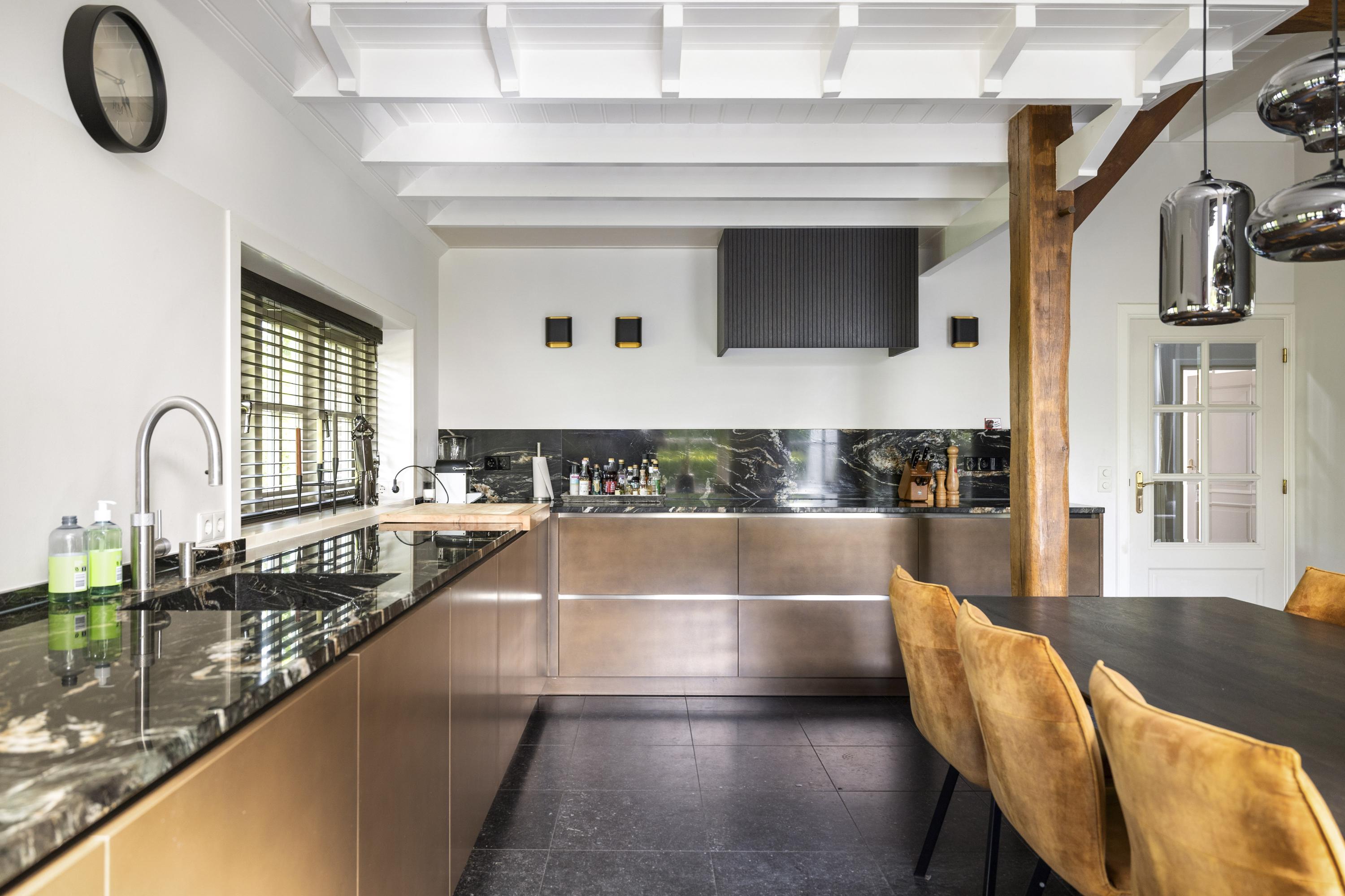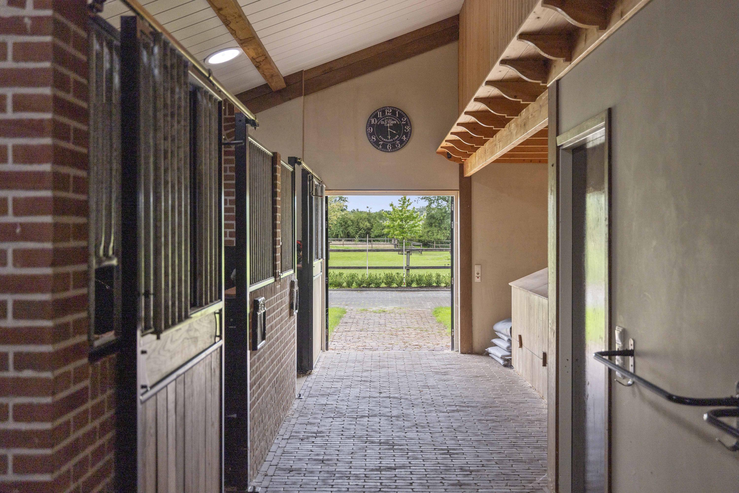La résidence principale, érigée initialement en 1935 puis repensée avec rigueur ces dernières années, offre désormais 258 m² d’espaces de vie. La pierre naturelle et le parquet en chêne à bâtons rompus confèrent un rythme doux et accueillant. Quatre chambres, deux salles de bains et un vaste hall central baigné de lumière s’articulent dans des intérieurs d’une élégance artisanale discrète. La cuisine Lodder Keukens, adaptée aux rituels quotidiens comme aux réceptions conviviales, séduit par ses façades cuivrées et ses plans de travail en marbre. Les espaces à vivre proposent deux cheminées et des vues sur jardins soignés, écuries et vergers.
