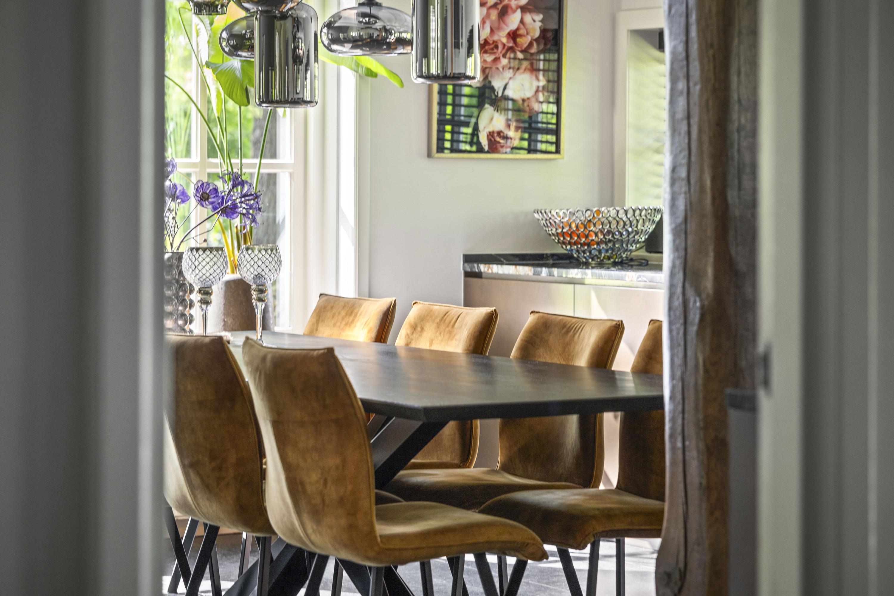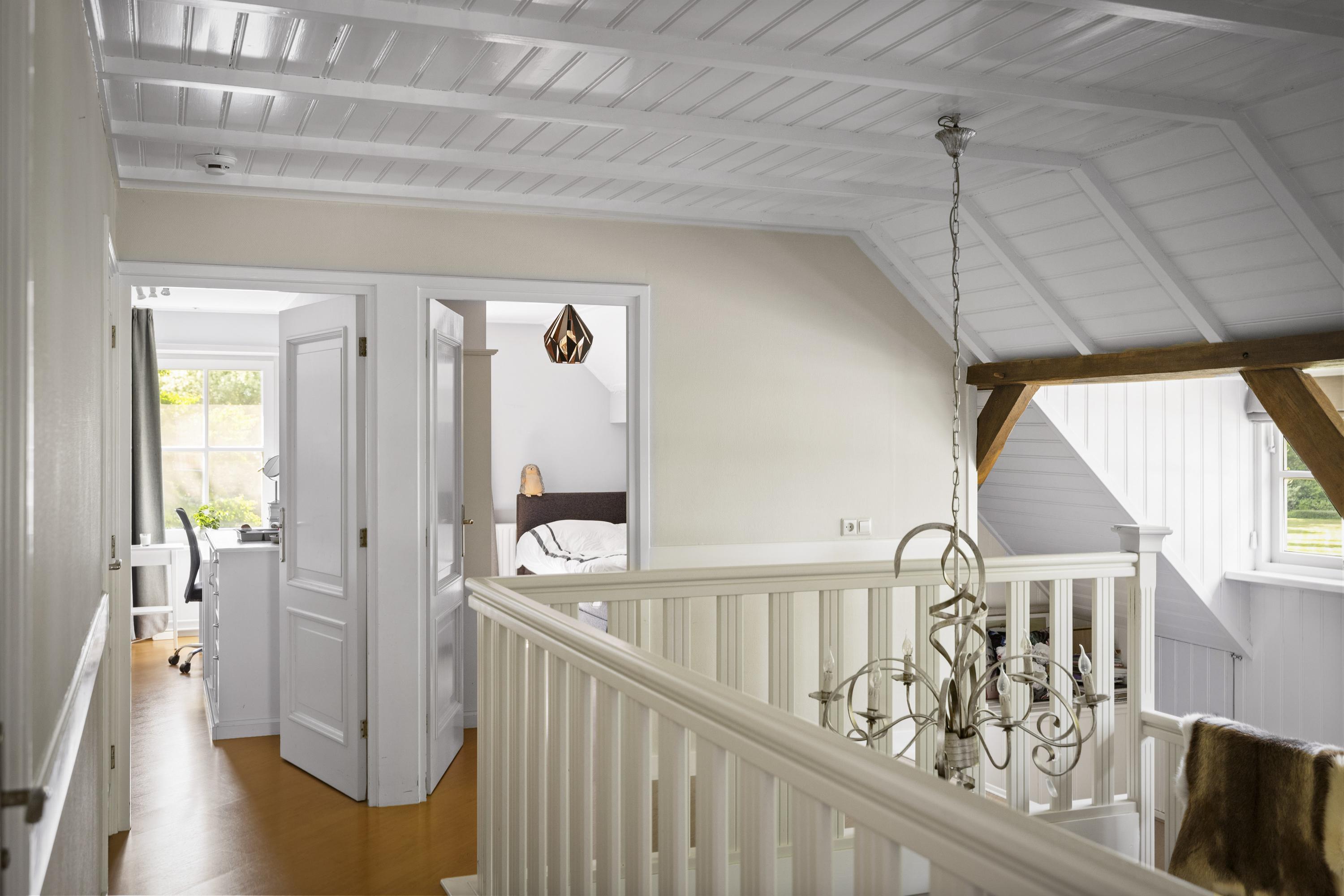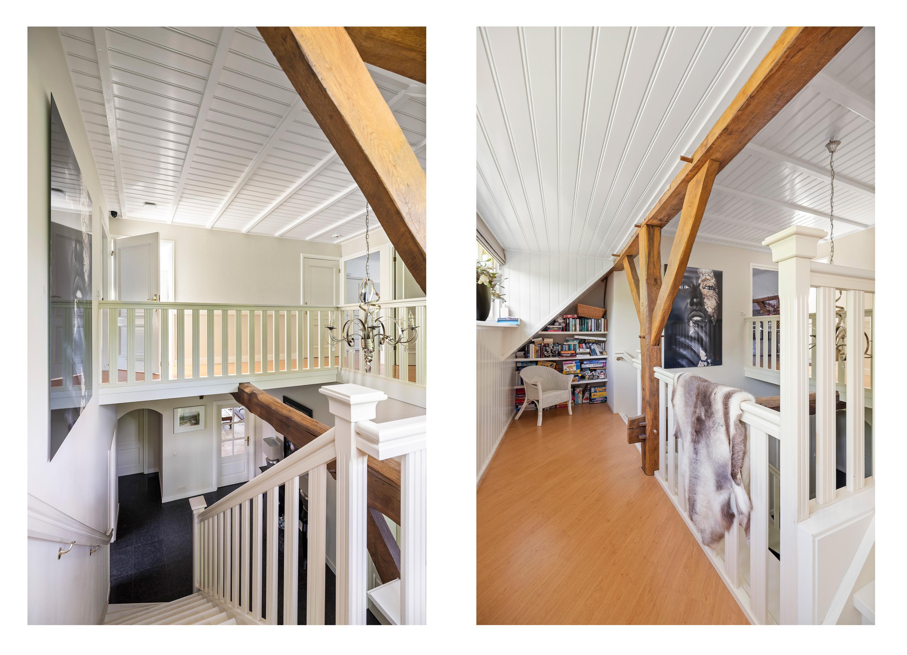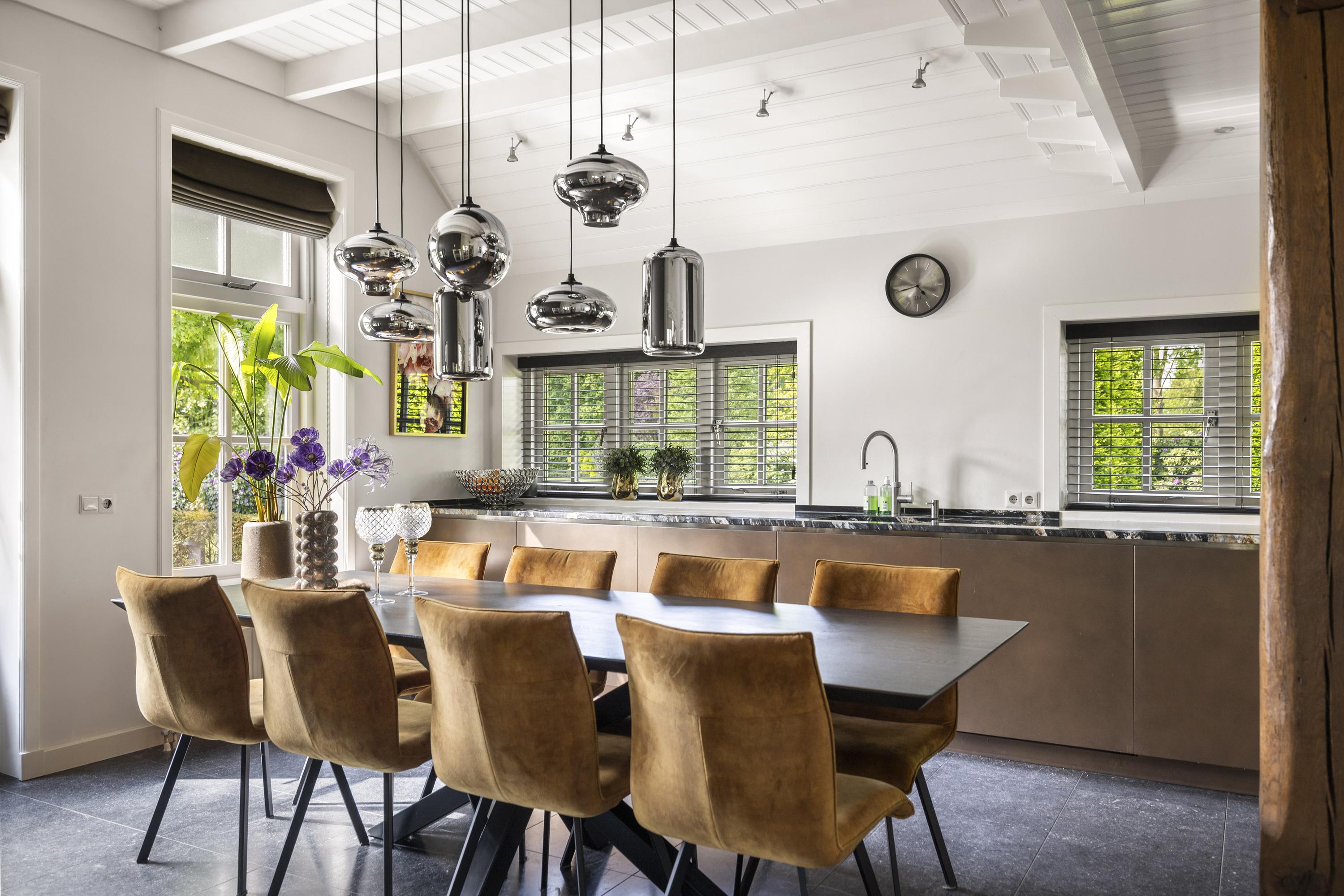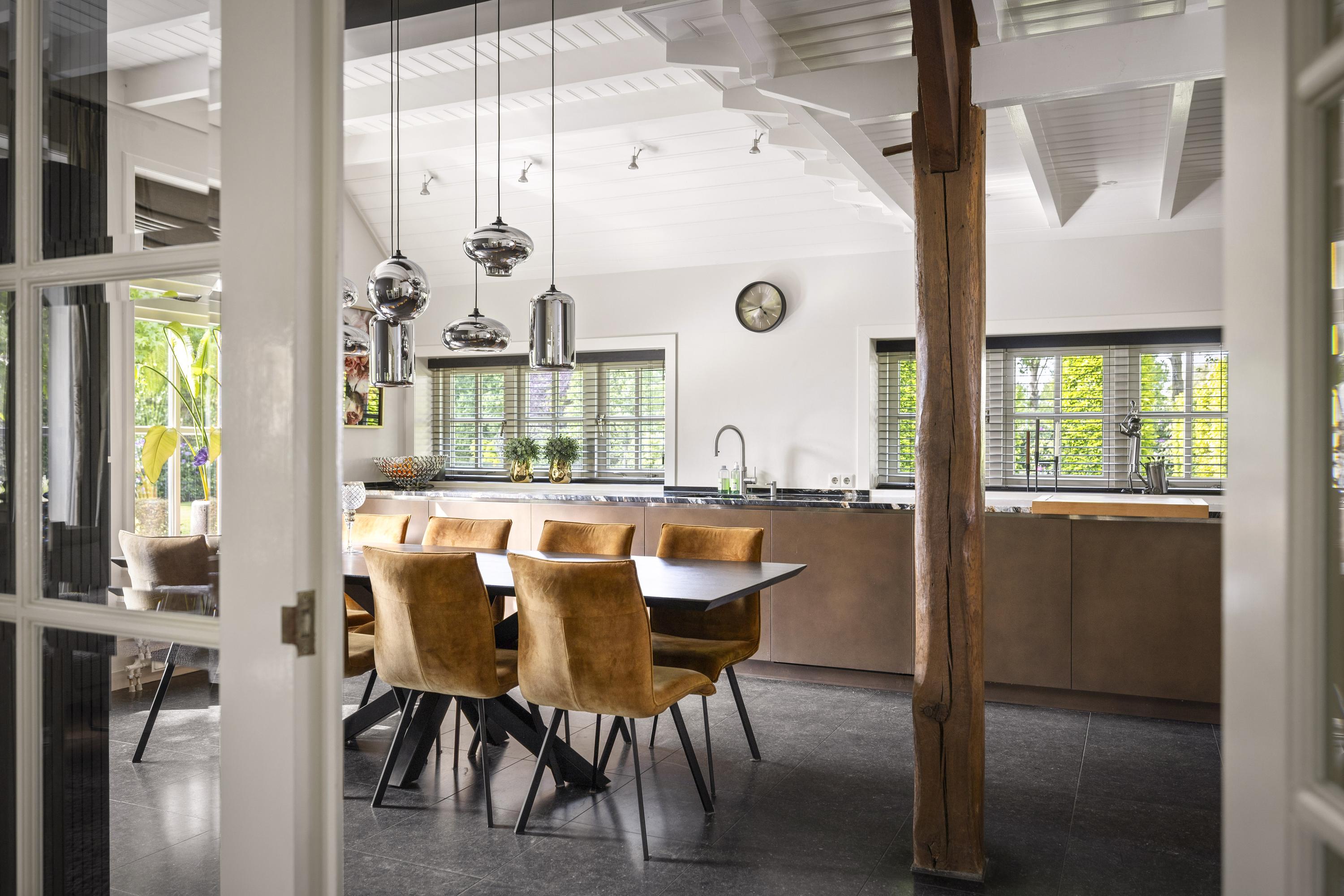 La résidence principale, érigée initialement en 1935 puis repensée avec rigueur ces dernières années, offre désormais 258 m² d’espaces de vie. La pierre naturelle et le parquet en chêne à bâtons rompus confèrent un rythme doux et accueillant. Quatre chambres, deux salles de bains et un vaste hall central baigné de lumière s’articulent dans des intérieurs d’une élégance artisanale discrète. La cuisine Lodder Keukens, adaptée aux rituels quotidiens comme aux réceptions conviviales, séduit par ses façades cuivrées et ses plans de travail en marbre. Les espaces à vivre proposent deux cheminées et des vues sur jardins soignés, écuries et vergers.