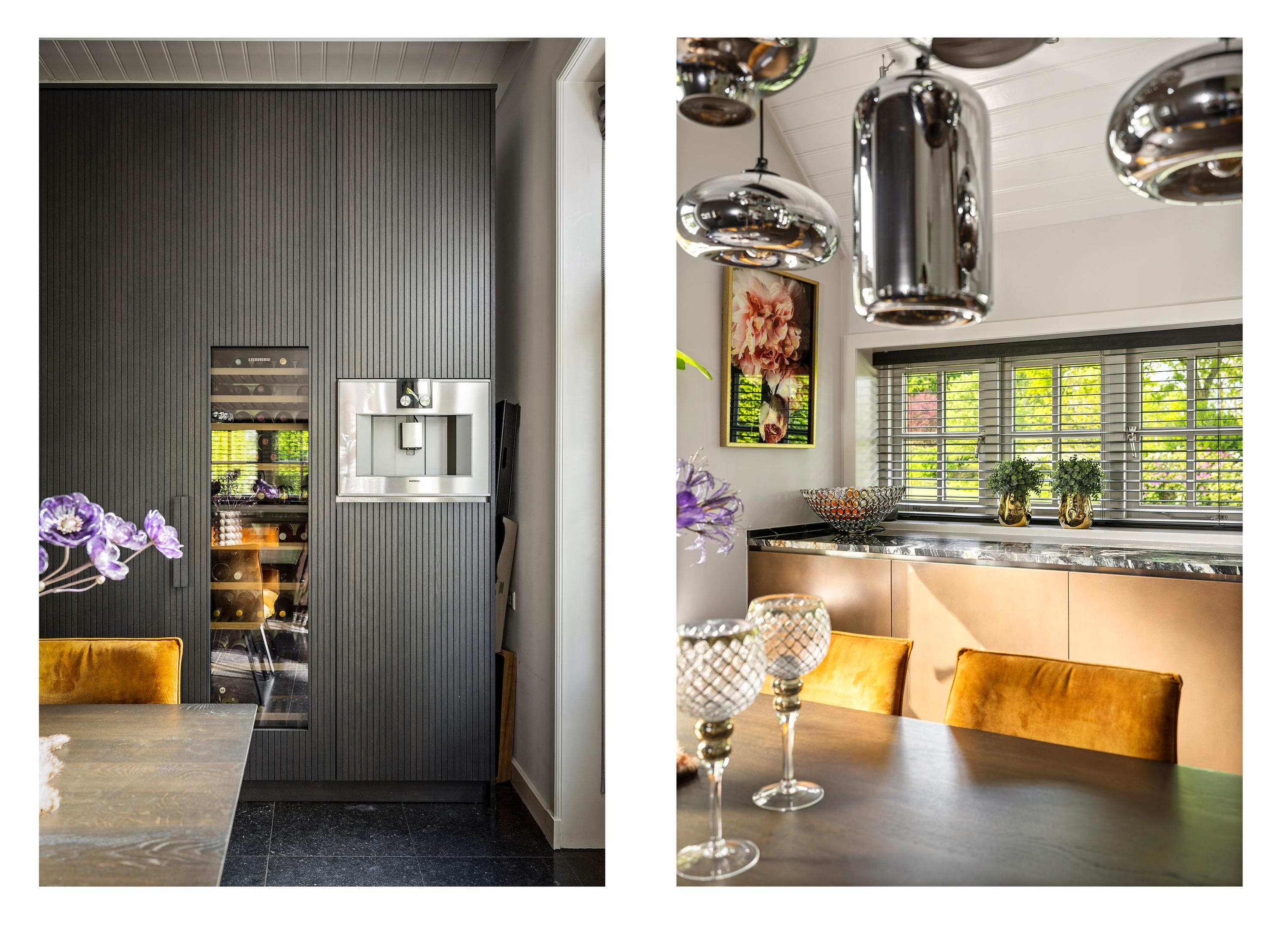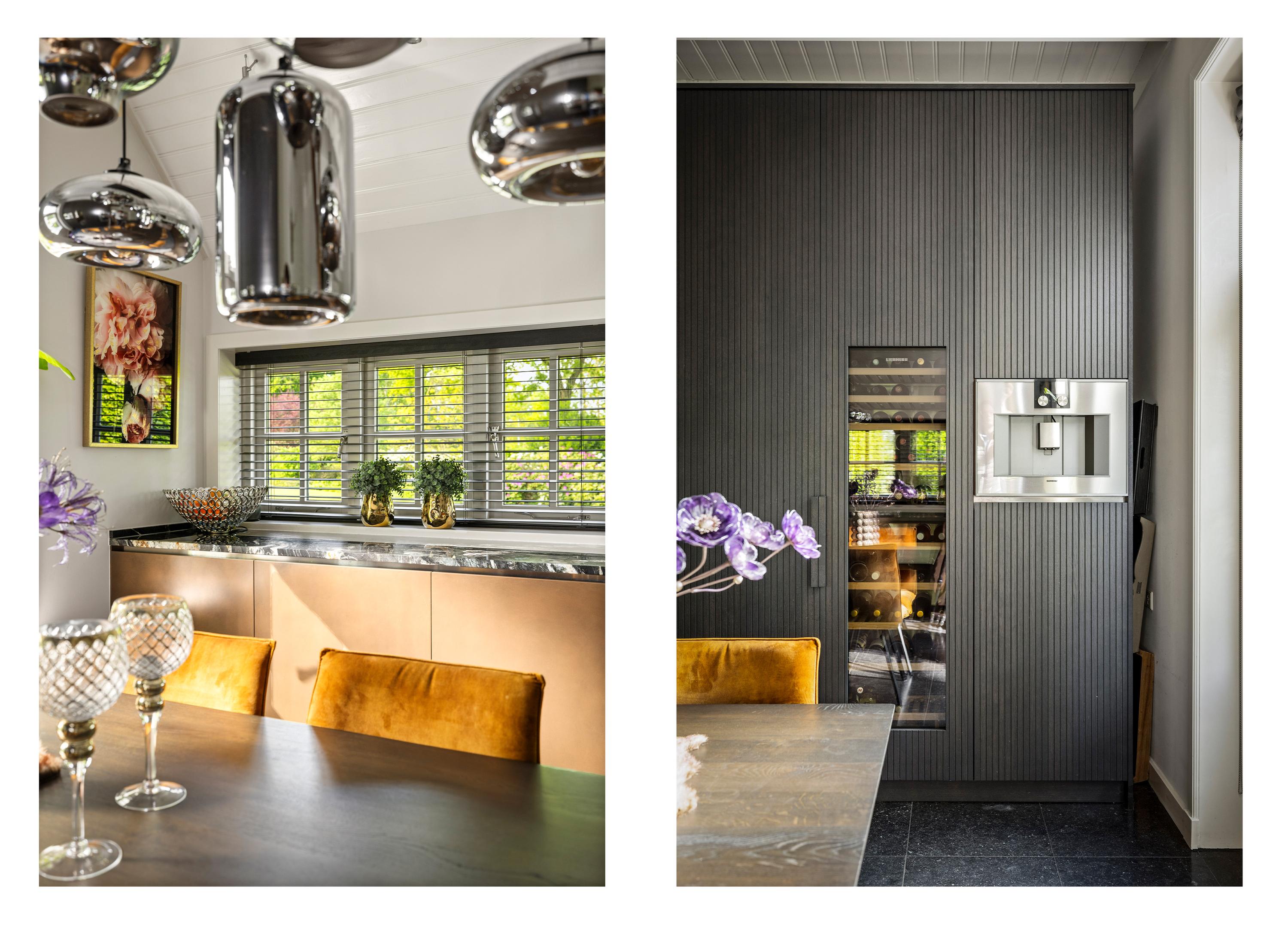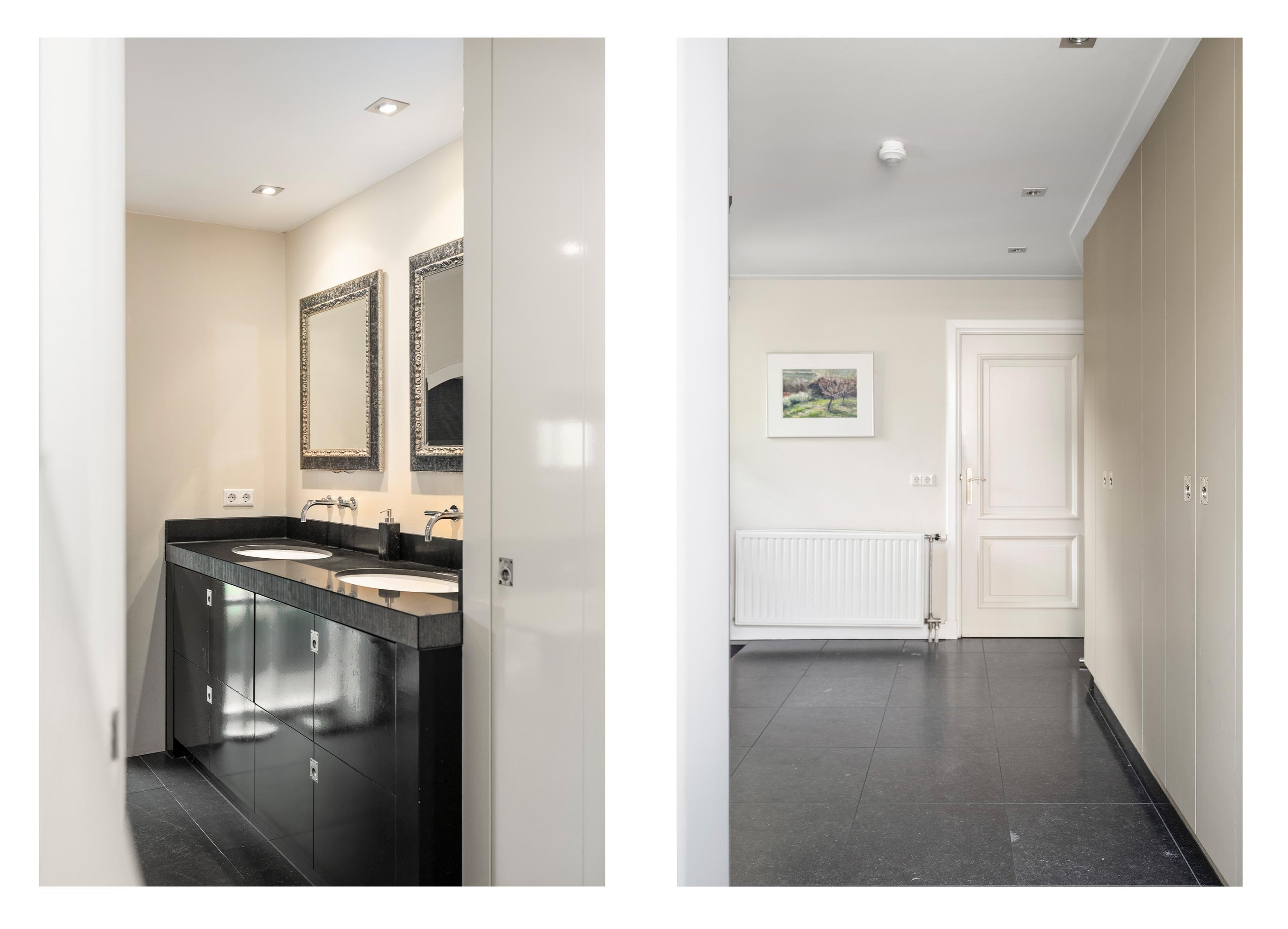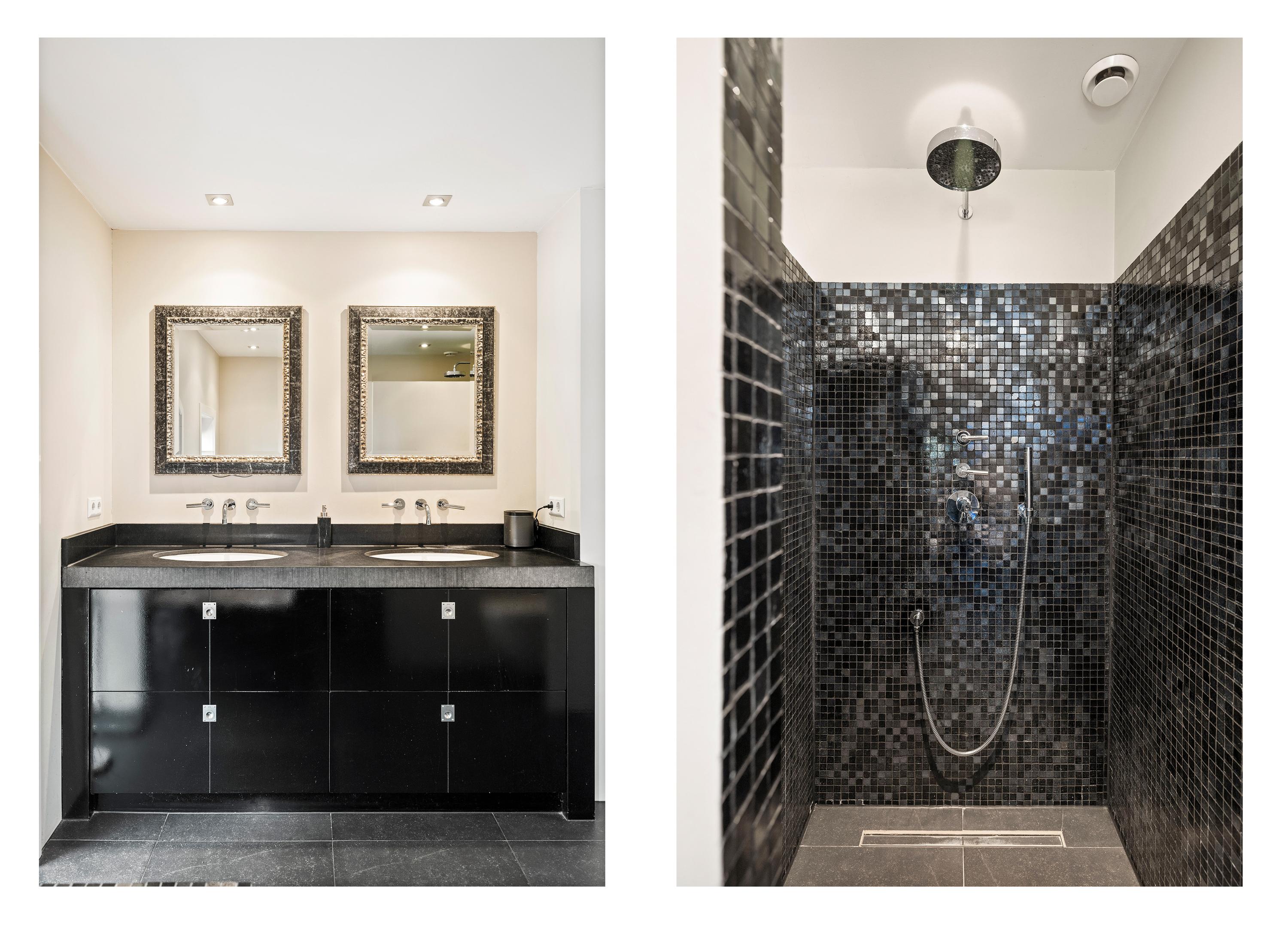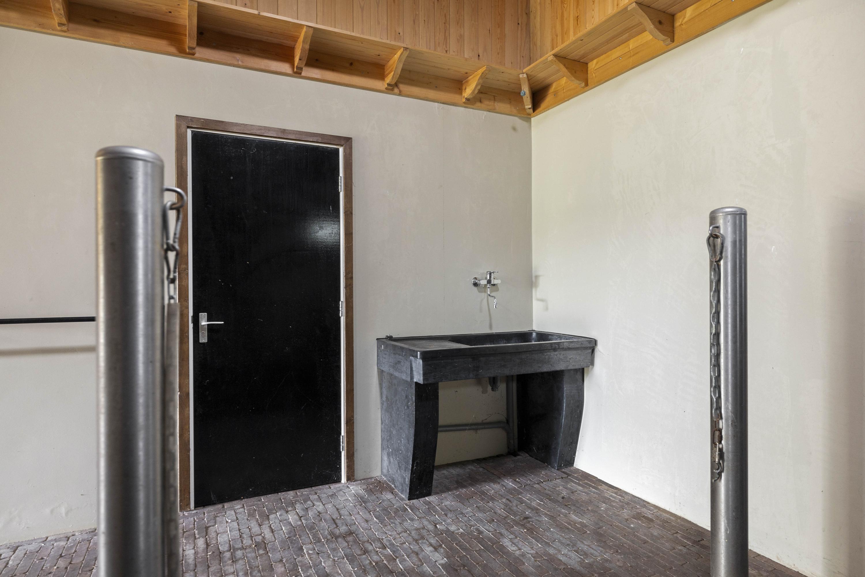 La résidence principale, érigée initialement en 1935 puis repensée avec rigueur ces dernières années, offre désormais 258 m² d’espaces de vie. La pierre naturelle et le parquet en chêne à bâtons rompus confèrent un rythme doux et accueillant. Quatre chambres, deux salles de bains et un vaste hall central baigné de lumière s’articulent dans des intérieurs d’une élégance artisanale discrète. La cuisine Lodder Keukens, adaptée aux rituels quotidiens comme aux réceptions conviviales, séduit par ses façades cuivrées et ses plans de travail en marbre. Les espaces à vivre proposent deux cheminées et des vues sur jardins soignés, écuries et vergers.