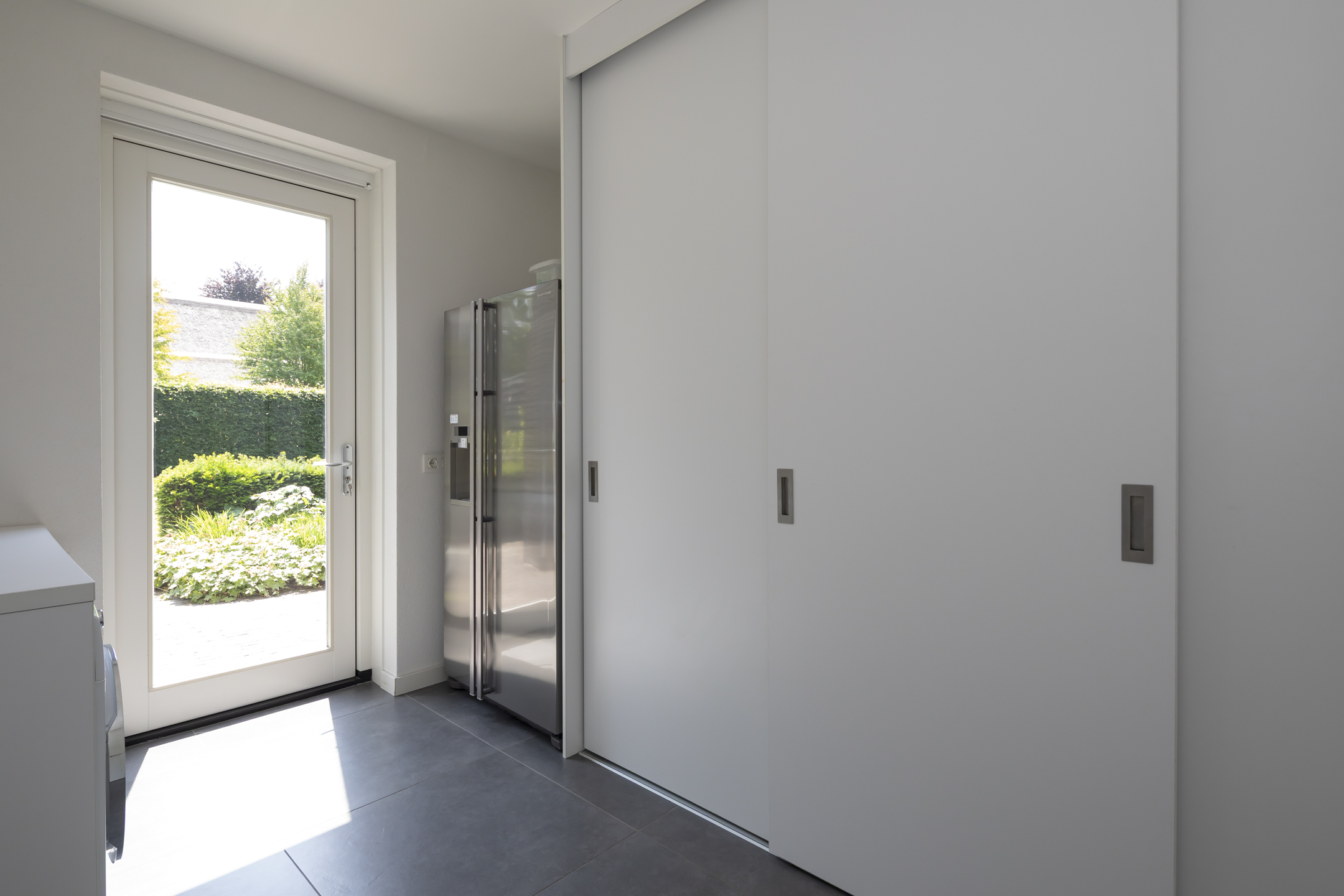 Cette maison familiale à Haaren conjugue à merveille intimité et grands espaces, sur un terrain généreux de 918 m² en lisière du village. Offrant 184 m² habitables, la propriété propose quatre chambres de plain-pied, idéales pour une vie de famille harmonieuse. Le soin apporté au design se révèle dans la fluidité entre un salon baigné de lumière, encadré de larges baies vitrées et d’une cheminée centrale, et une cuisine ouverte moderne en blanc laqué avec plan de travail en composite, robinet Quooker et deux fours. Une grande buanderie relie le garage et le jardin, renforçant la praticité au quotidien.