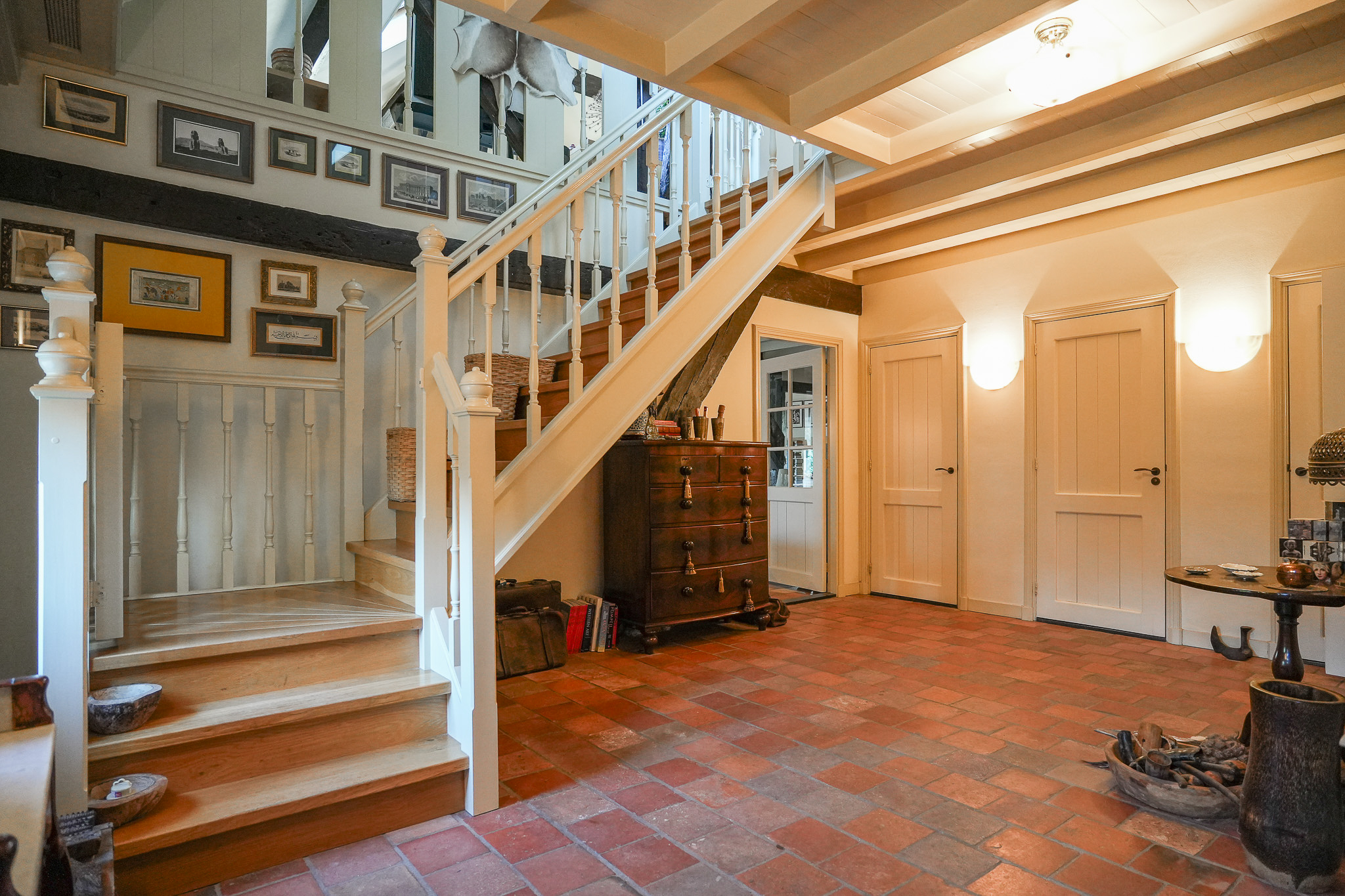 La ferme Hellouw incarne une présence discrète et raffinée à la lisière du village de Betuwe; son caractère de 1917 façonne chaque détail soigneusement pensé. Posée sur un terrain de 4 910 m², la propriété offre 403 m² d’espace de vie, cinq chambres et deux salles de bains. Volumes généreux et éléments d’époque rythment les intérieurs, où cheminées en grès et poutres en bois confèrent impérissable chaleur et gravité aux pièces à vivre. Le rez-de-chaussée accueille un vaste salon ouvert sur le jardin, dans l’ancienne grange, une cuisine champêtre aux carreaux anciens, une cave à vin, et un ensemble de pièces de plain-pied : chambre avec cheminée, dressing et bureau donnant tous sur les jardins privés.