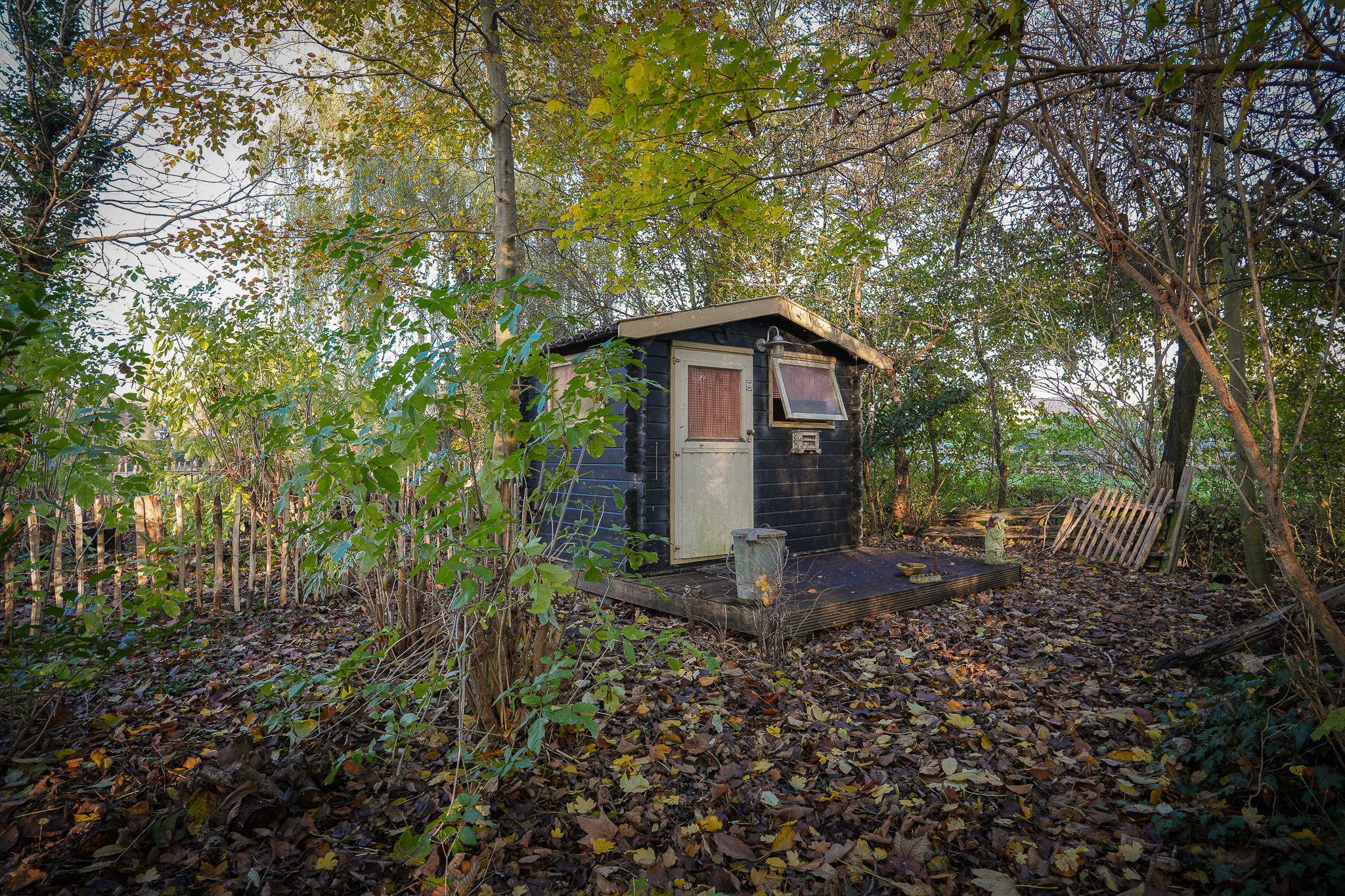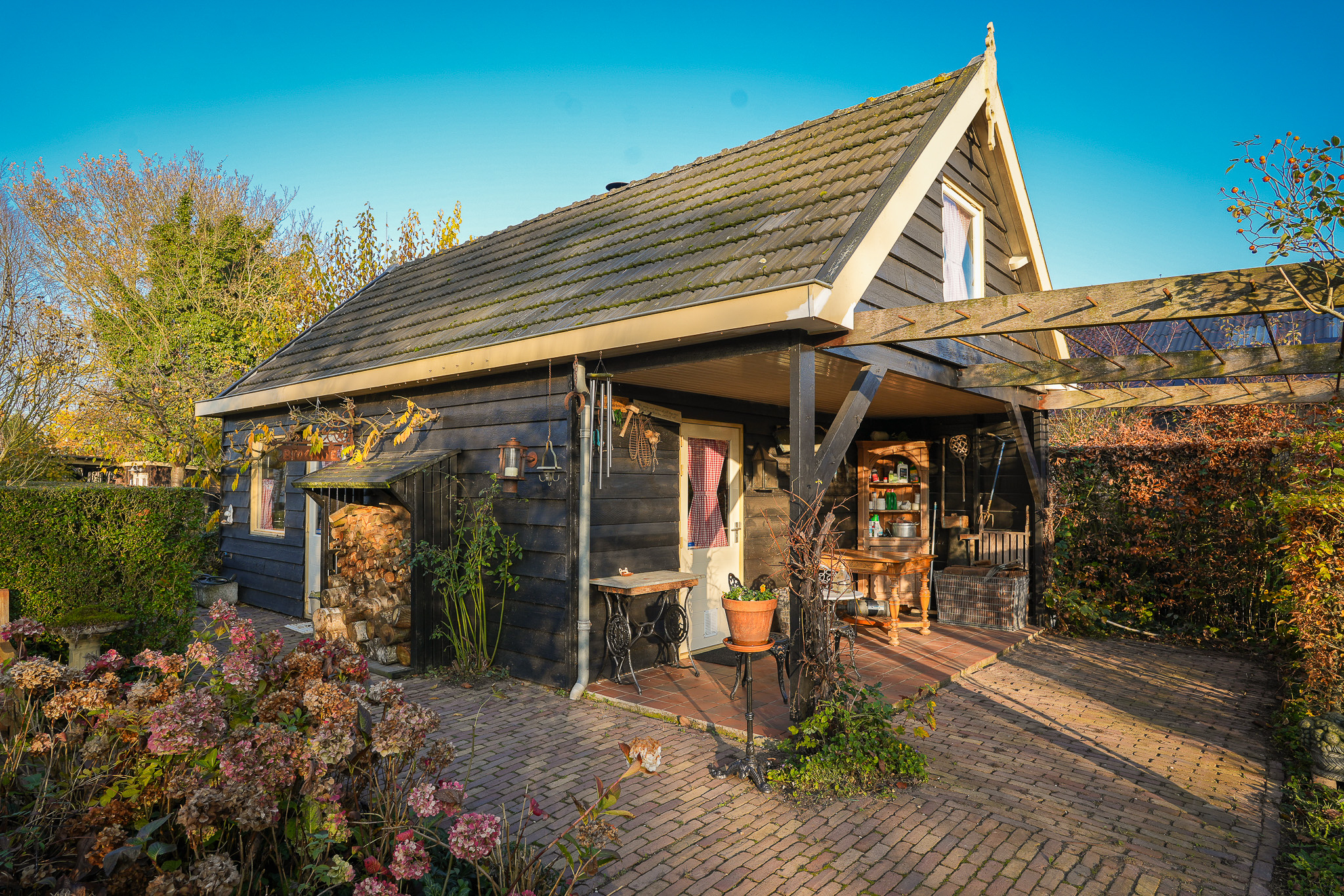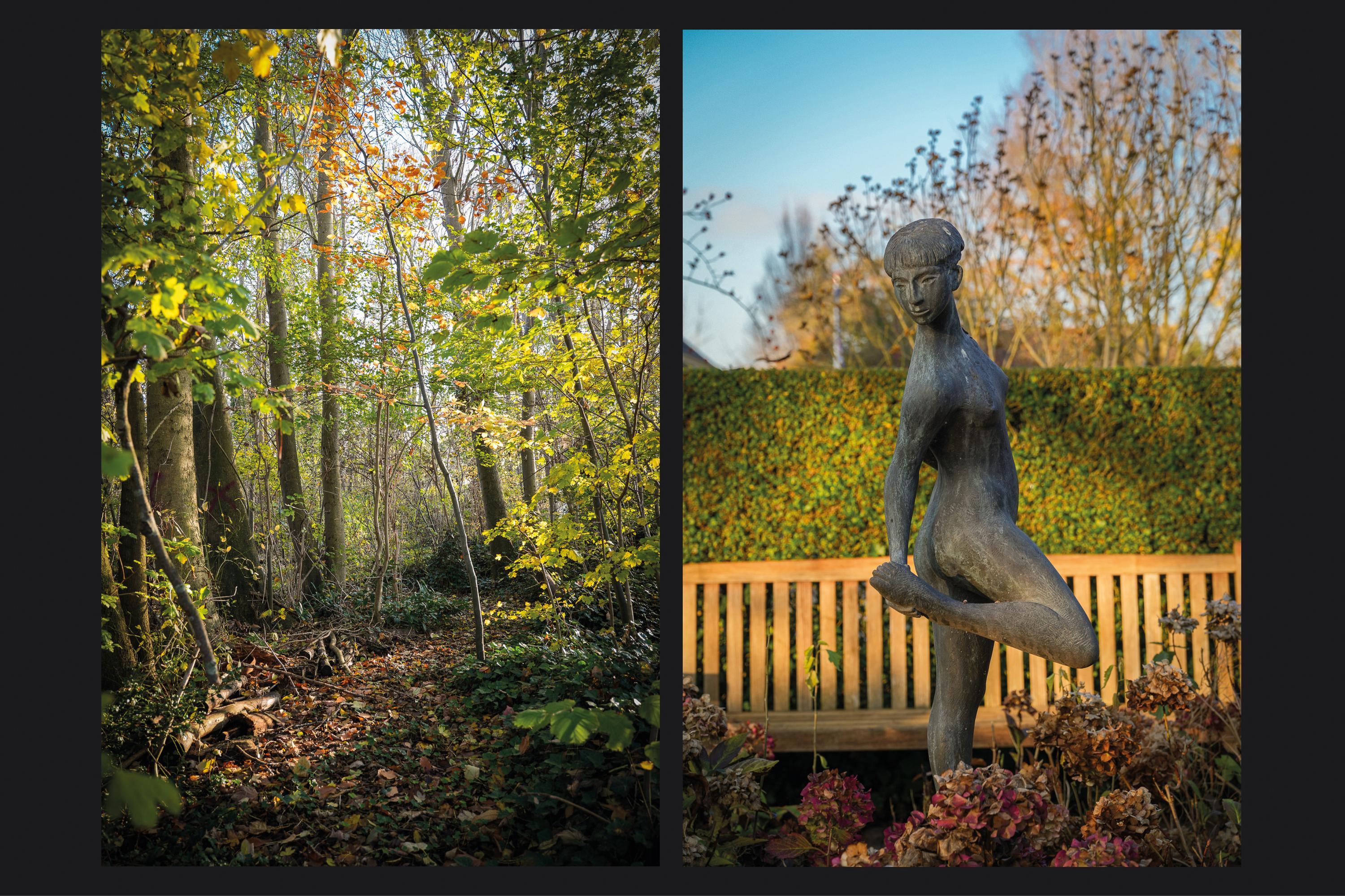 Au-delà de la maison, le cadre a été cultivé dans un esprit d’intimité et d’écologie : jardins fleuris, saules matures, verger d’arbres fruitiers – pommes, poires, prunes, coings – et mare boisée créent une retraite digne d’un parc, prisée de la faune locale. La dépendance isolée, équipée d’un poêle à bois et de portes-fenêtres, ouvre de nouveaux horizons, que ce soit comme atelier, logement pour invités ou bureau paisible.