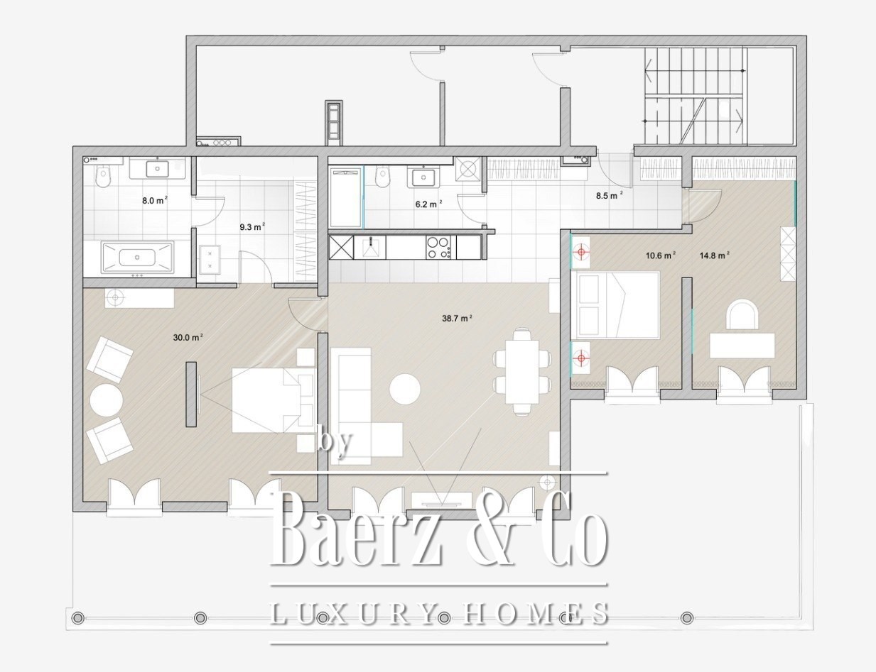 L’appartement Herceg Novi bénéficie d’un emplacement paisible au deuxième étage d’un complexe exclusif composé de cinq bâtiments élégants, en surplomb du littoral monténégrin. Ce bien, d’une surface totale de 179 m² dont une terrasse panoramique de 54 m², offre une continuité harmonieuse entre le confort intérieur et la lumière méditerranéenne. La composition de l’espace instaure un rythme raffiné : un hall d’entrée accueillant, trois chambres, un séjour spacieux avec cuisine ouverte et coin repas, ainsi que deux salles de bains, le tout orienté pour magnifier la clarté de l’environnement naturel.
