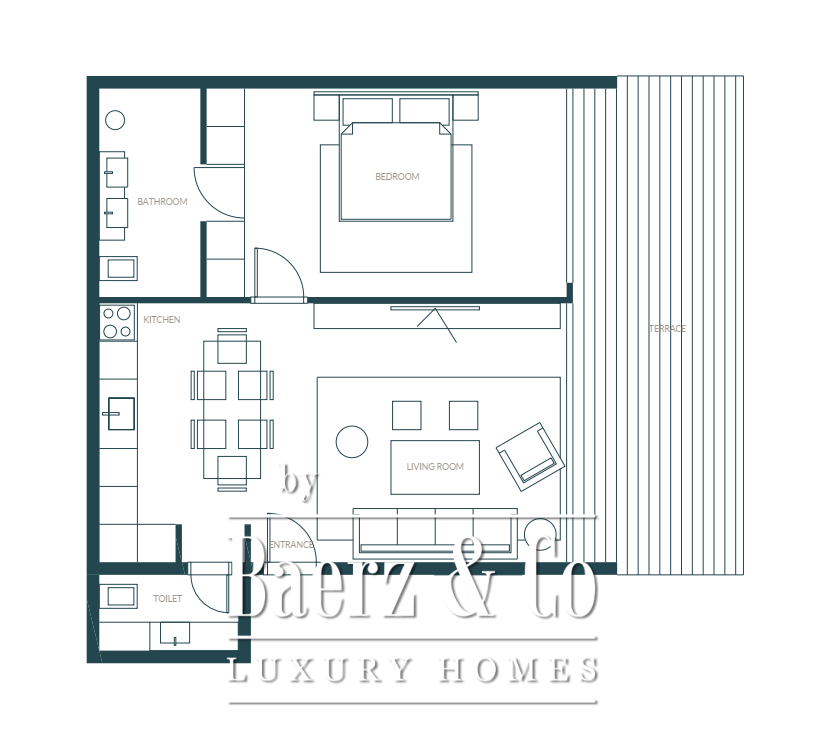 L’agencement intérieur offre un équilibre entre fluidité et ouverture : le séjour se prolonge naturellement vers une cuisine avec espace repas, puis vers une chambre, une salle de bains, ainsi qu’un cabinet de toilettes réservé aux invités. La terrasse encadre des panoramas apaisants sur la mer et la montagne. Les sols et carrelages seront achevés, la salle de bains entièrement équipée et la climatisation installée, garantissant ainsi un pied-à-terre ou un investissement prêt à vivre. L’Appartement Herceg Novi s’insère au cœur des restaurants, commerces et activités de loisirs, offrant la commodité alliée à la douceur de vivre du littoral monténégrin.