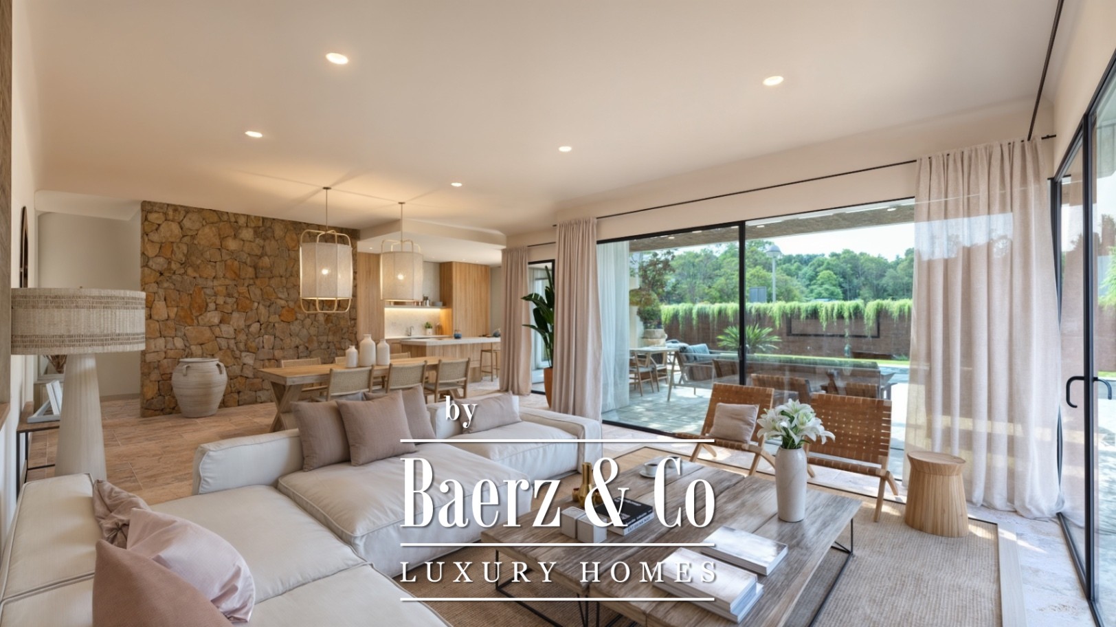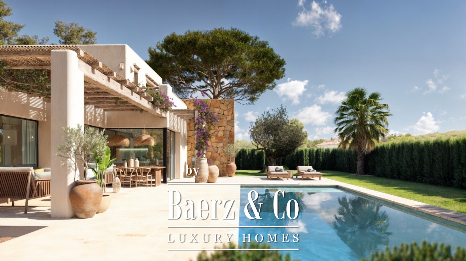 La conception soignée privilégie les volumes ouverts : cuisine aérée, séjour baigné de lumière et larges baies vitrées pour une transition naturelle entre intérieur et extérieur. Les trois chambres doubles disposent chacune de leur propre salle de bains et d’un espace dressing, complétées par des toilettes pour invités afin d’ajouter au confort. Une piscine privée de 36 m², des terrasses inondées de soleil et une pergola de 33 m² invitent à la détente, le matin comme en soirée, illustrant le plaisir de l’intimité et de la vie en plein air.