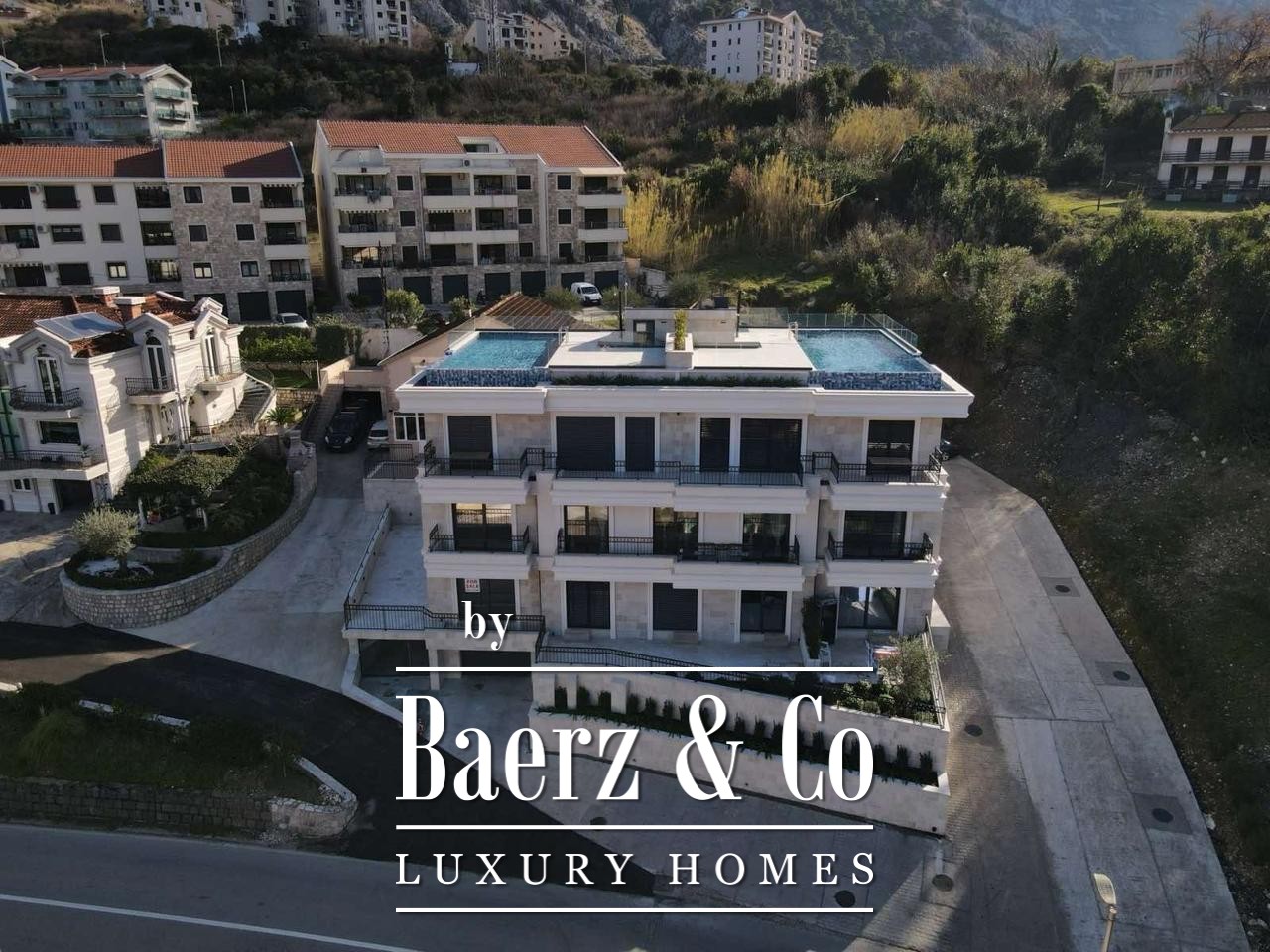 Situé à seulement 2 kilomètres du centre-ville, l'appartement Kotor sublime le point de rencontre entre la lumière adriatique et l’héritage intemporel du Monténégro. Cette résidence neuve occupe le troisième et dernier étage d’un immeuble, offrant une piscine privée sur le toit et une terrasse végétalisée, toutes deux ouvertes sur des vues panoramiques sur la mer et les montagnes. À seulement 80 mètres, la côte et la plage s’offrent à vous, tandis que restaurants et marchés locaux jalonnent la vie quotidienne, entre quiétude et aisance.