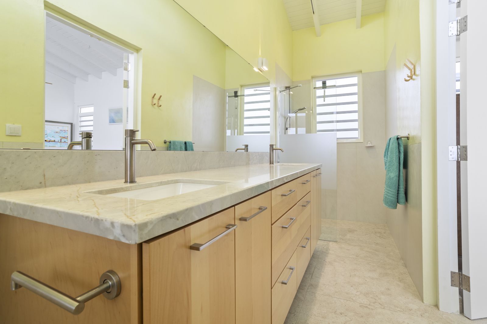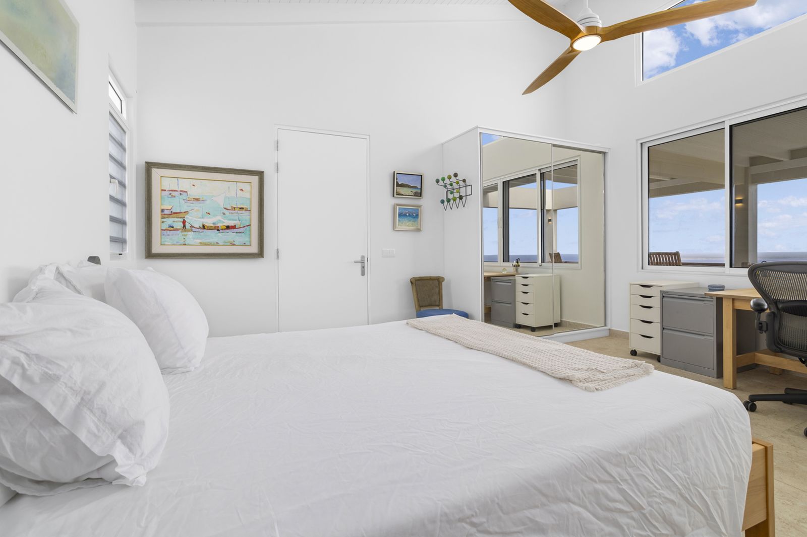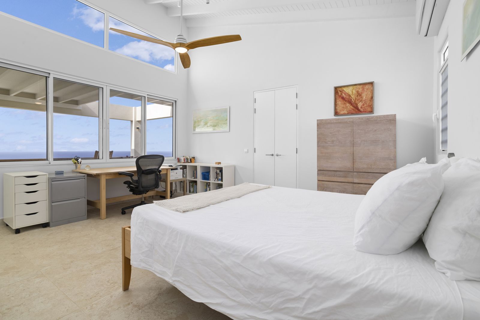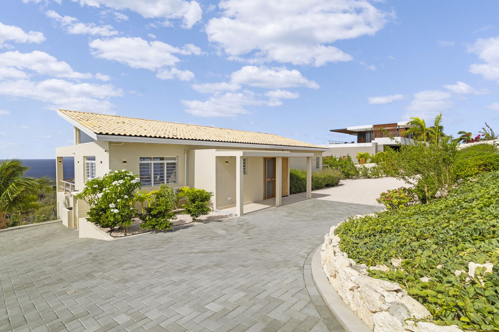 Implantée sur une généreuse parcelle de 2 127 m² au sein de l’exclusif quartier Sabadeco Crown West, la villa offre intimité et espace dans l’un des secteurs les plus prisés de l’île. Le salon, équipé de la climatisation et de ventilateurs de plafond, appelle au confort tout au long de l’année. La chambre, dotée de grandes fenêtres, s’ouvre sur l’océan et sa salle de bains intégrée dispose de deux lavabos et d’une douche à l’italienne spacieuse.