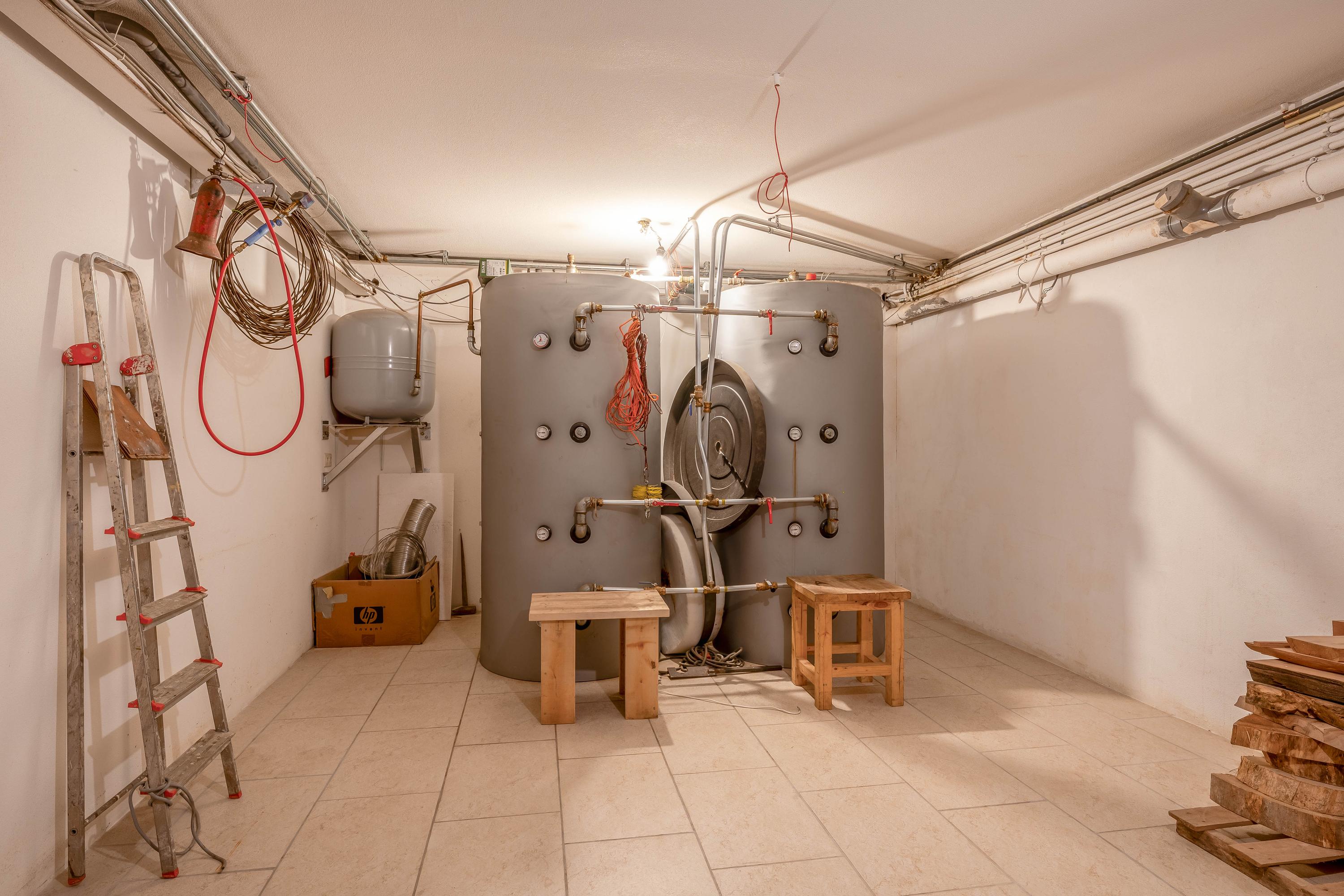 Une conception durable imprègne chaque aspect de la maison. Label énergétique A, installation à biomasse, pompe à chaleur Mitsubishi air-air performante et chauffe-eau électrique offrent à la fois confort et faibles coûts d’exploitation. Plancher chauffant partiel et panneaux photovoltaïques renforcent encore ses qualités environnementales.