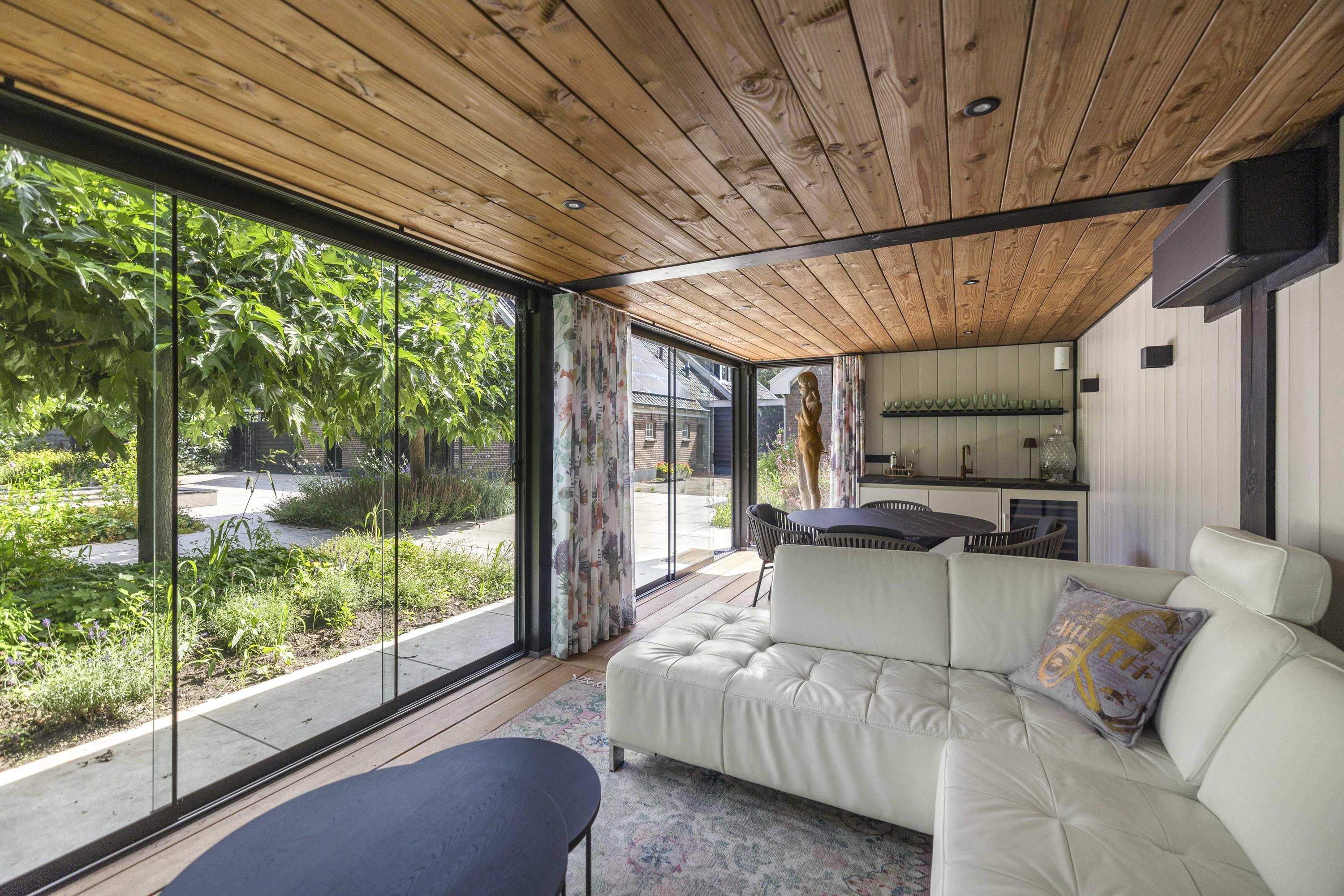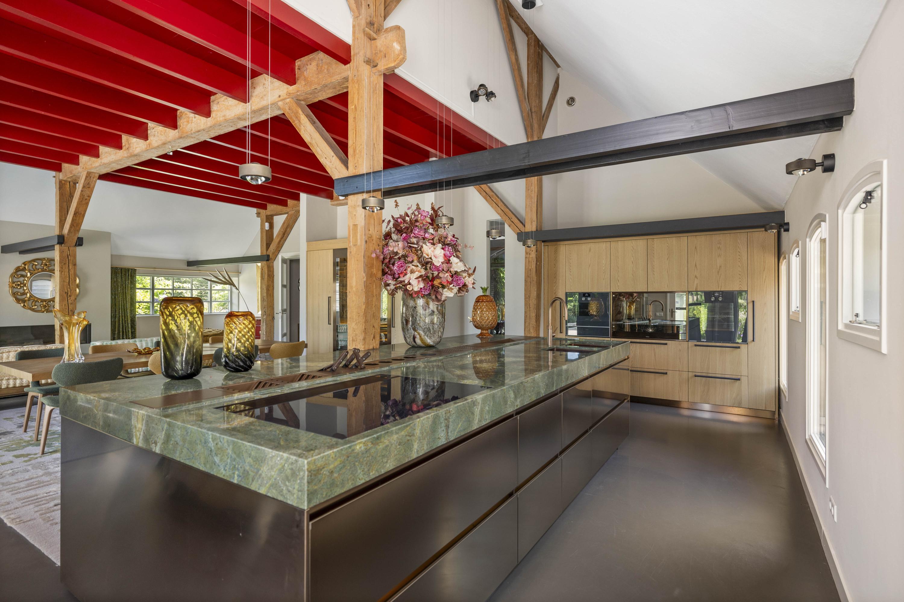 Quatre chambres comprennent un appartement indépendant dans l’annexe, idéal pour accueillir des hôtes ou s’offrir un espace privé. Les salles de bains se distinguent par des finitions haut de gamme, et la suite parentale évoque la sérénité d’un hôtel de charme. Le parc permet de profiter pleinement en toute saison, agrémenté d’un sauna, d’une douche extérieure et d’un système d’irrigation programmable. Stationnement aisé, sécurité avancée et proximité des commodités de Laren conjuguent confort moderne et intimité absolue. Cette villa de prestige à vendre à Laren incarne l’art de vivre discret à la campagne et l’élégance intemporelle.