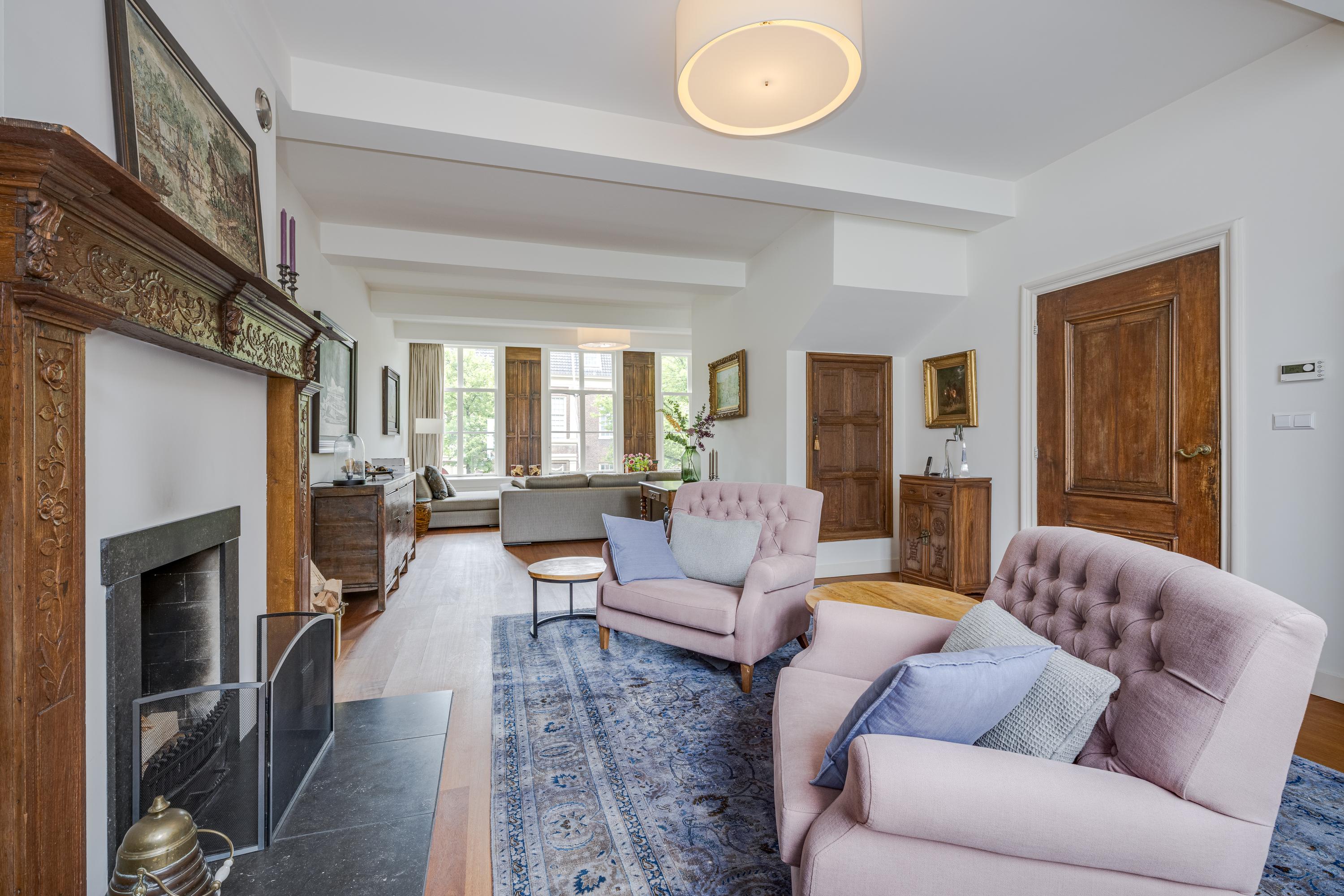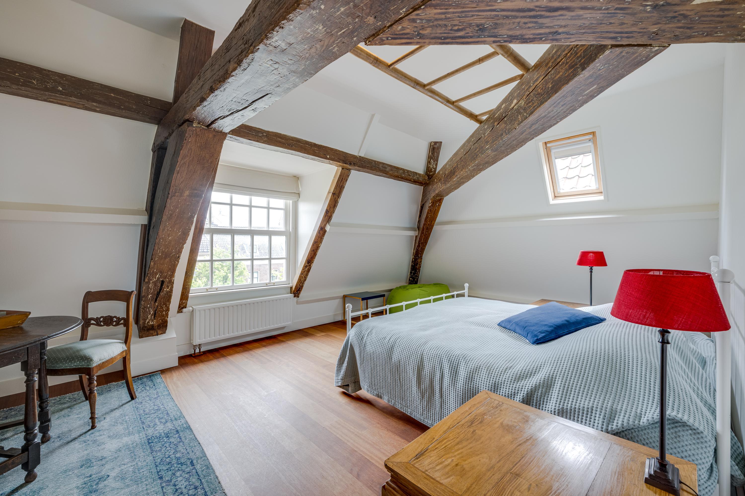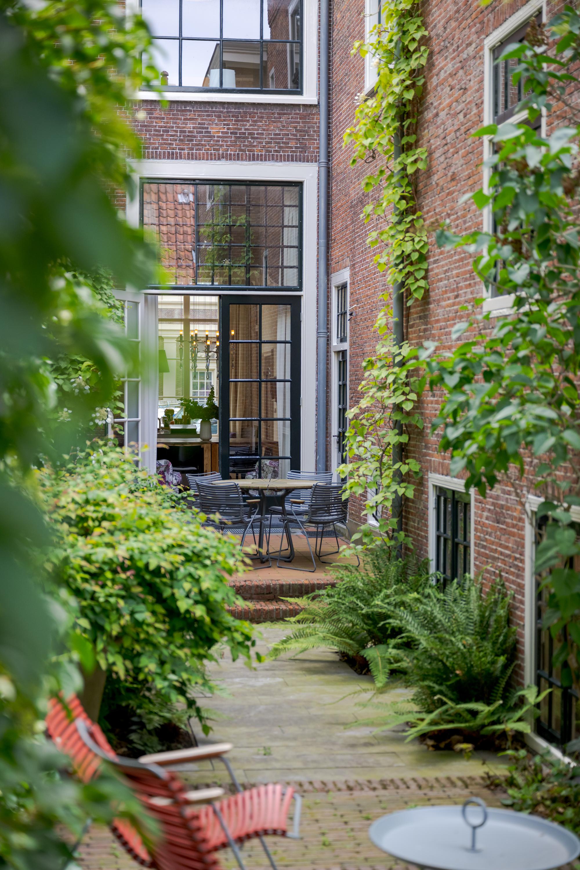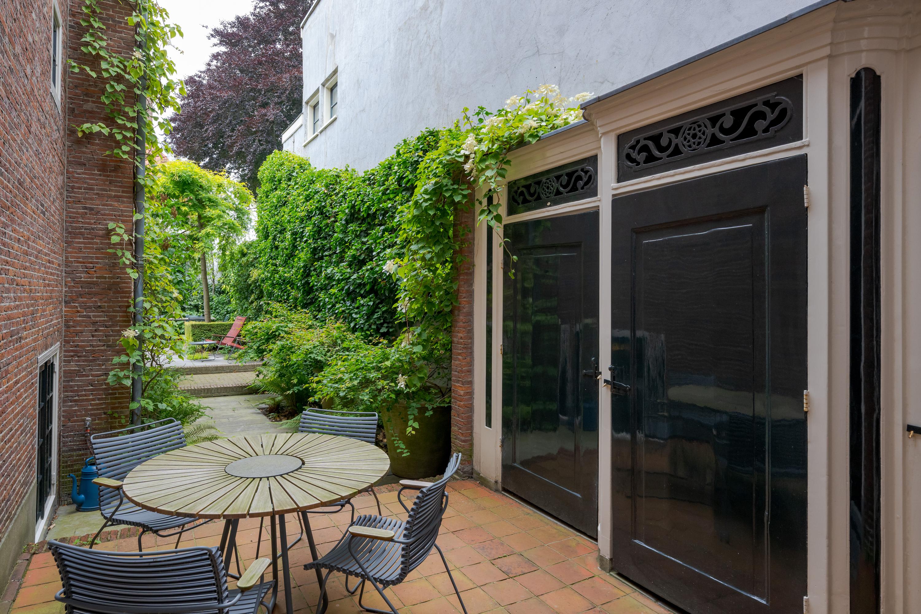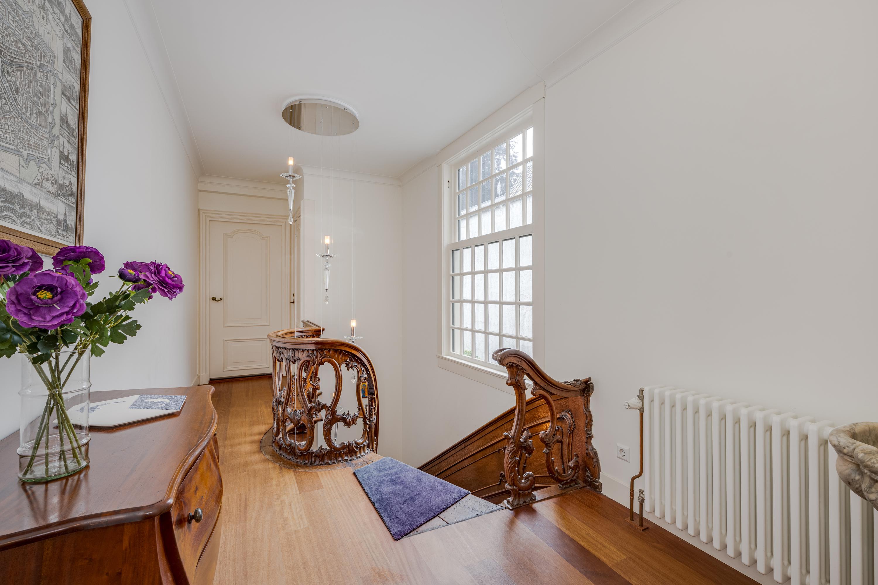 Dès l’entrée, les intérieurs spacieux et lumineux inspirent la quiétude ; plafonds à poutres apparentes, faïences Delft Blue et somptueux escalier insufflent une véritable identité architecturale. Une cuisine Bulthaup s’ouvre sur le jardin urbain exposé ouest, mature et protégé du tumulte. Les premier et étages supérieurs révèlent six pièces adaptées à la vie de famille, au travail ou à la détente, avec trois salles de bains réparties sur l’ensemble. À l’arrière, une terrasse privée relie la suite parentale au ciel, tandis que les espaces de vie offrent de belles vues sur le canal et la ville animée.
