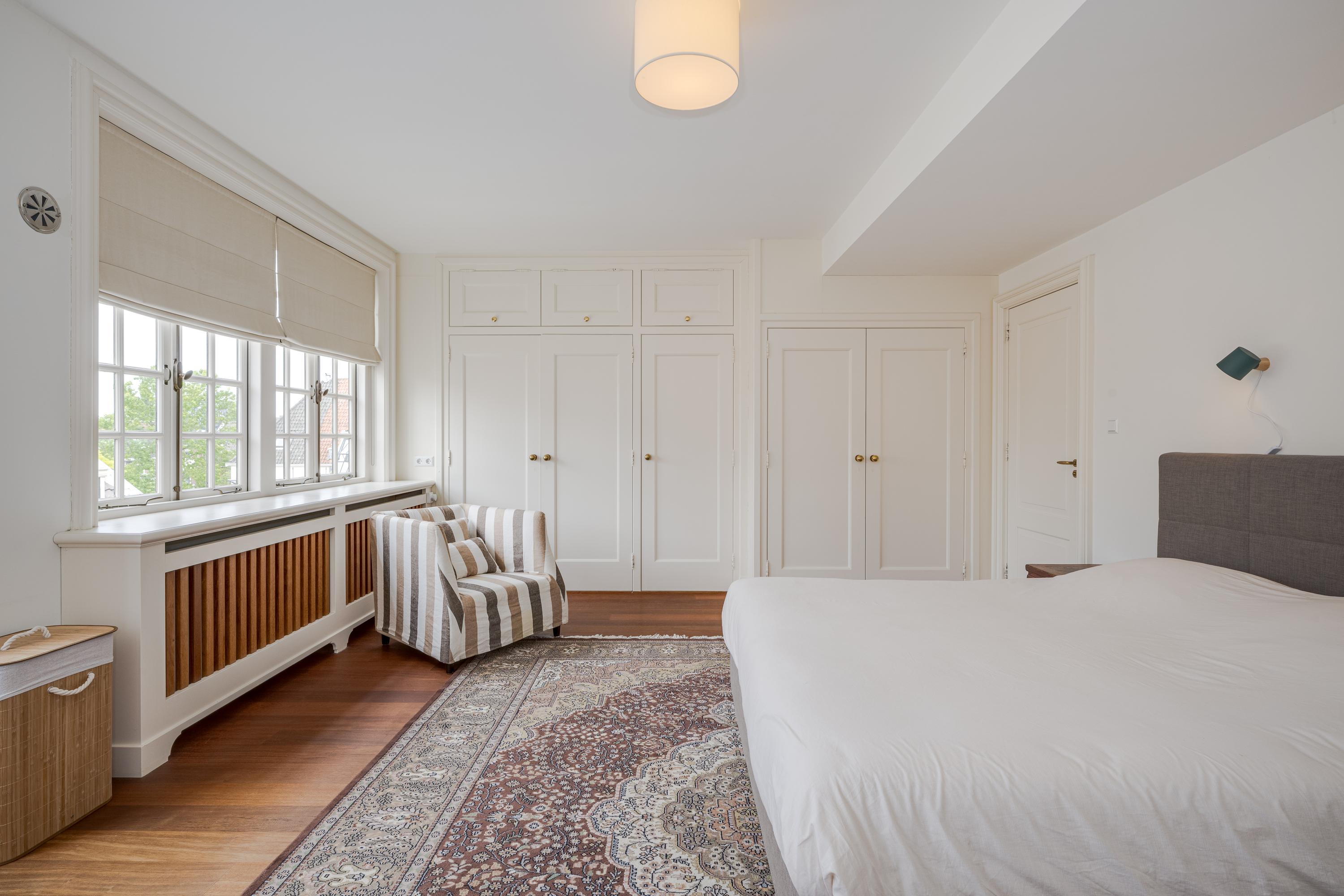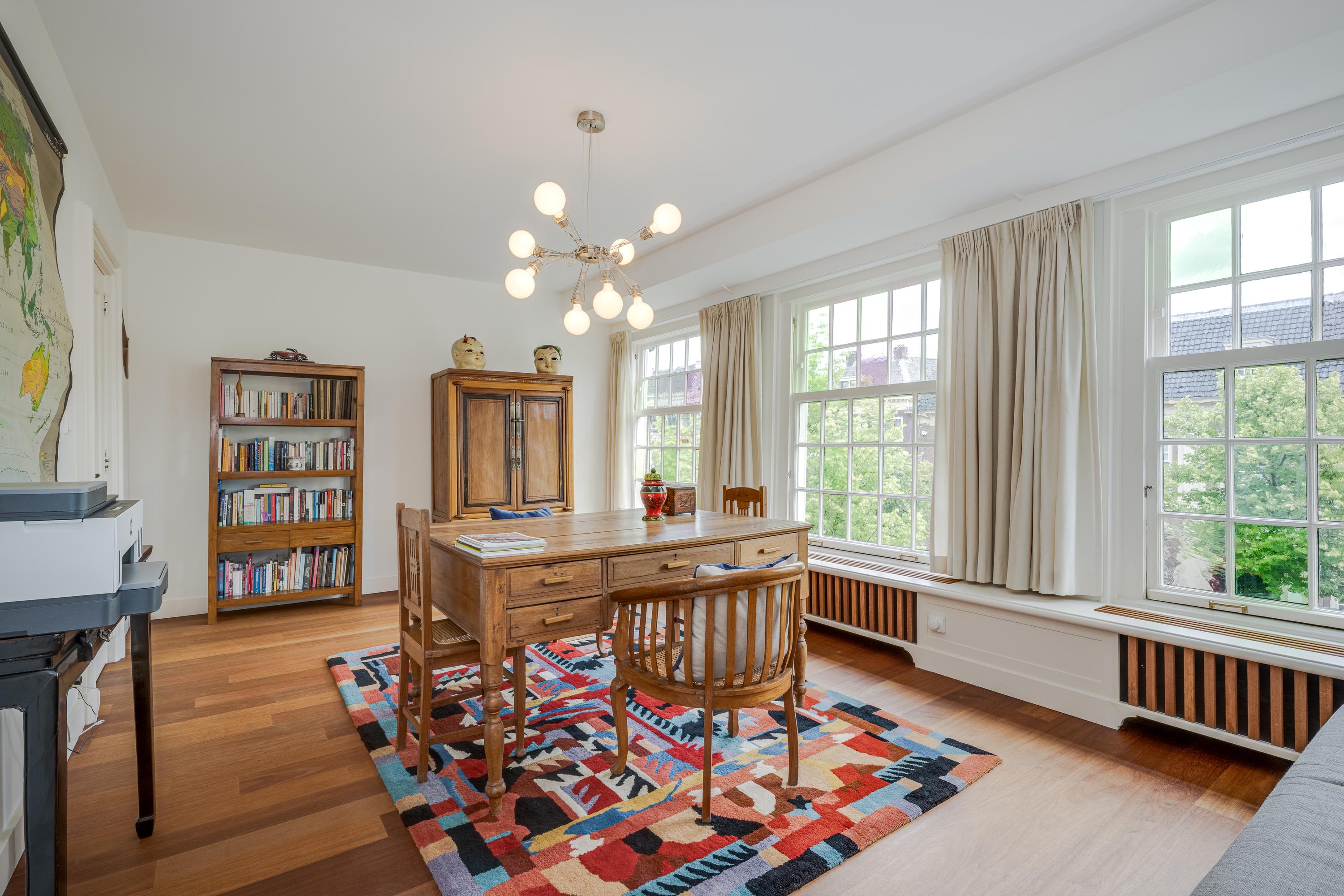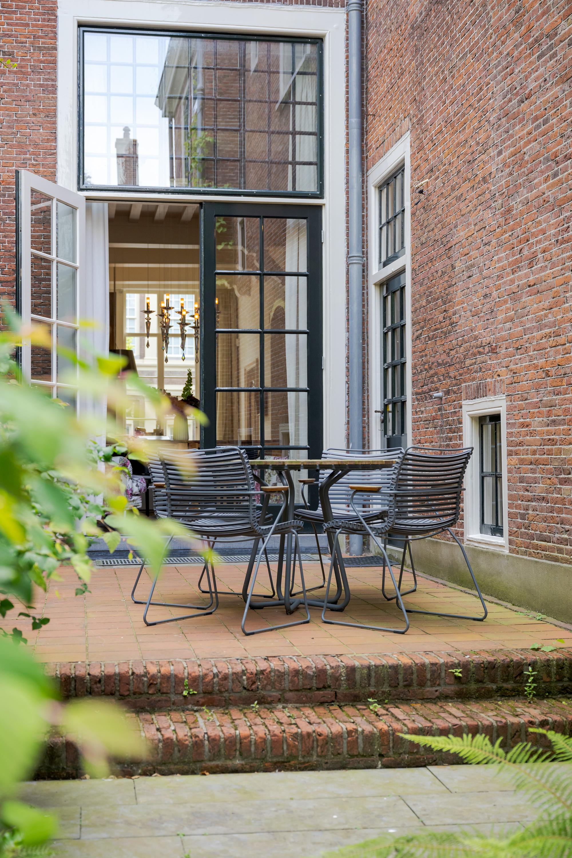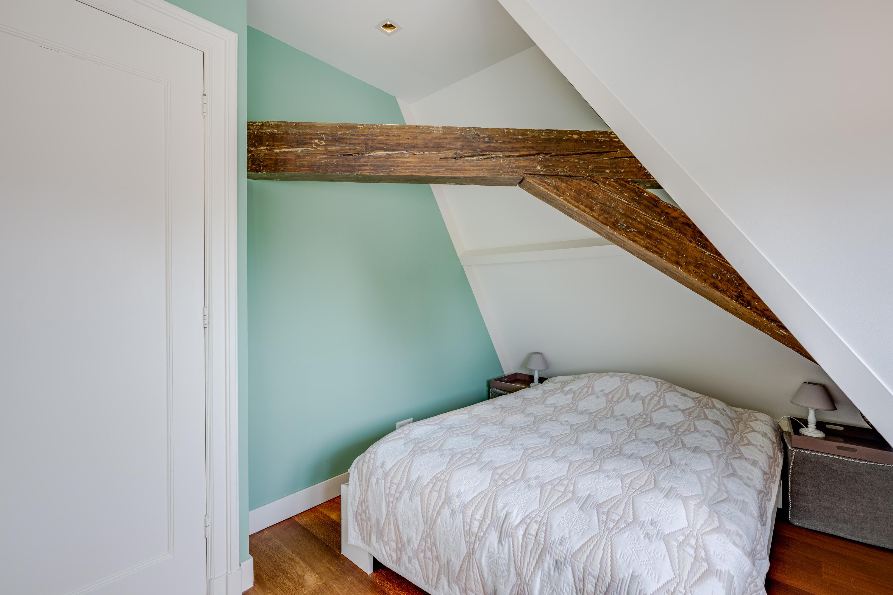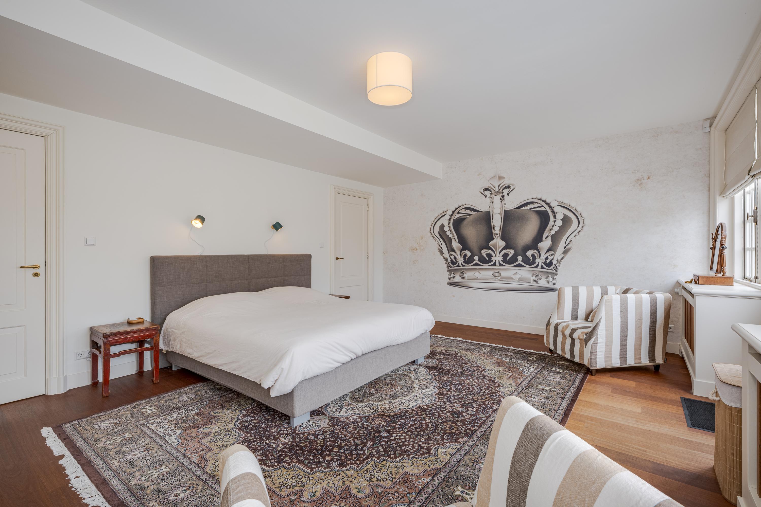 Dès l’entrée, les intérieurs spacieux et lumineux inspirent la quiétude ; plafonds à poutres apparentes, faïences Delft Blue et somptueux escalier insufflent une véritable identité architecturale. Une cuisine Bulthaup s’ouvre sur le jardin urbain exposé ouest, mature et protégé du tumulte. Les premier et étages supérieurs révèlent six pièces adaptées à la vie de famille, au travail ou à la détente, avec trois salles de bains réparties sur l’ensemble. À l’arrière, une terrasse privée relie la suite parentale au ciel, tandis que les espaces de vie offrent de belles vues sur le canal et la ville animée.