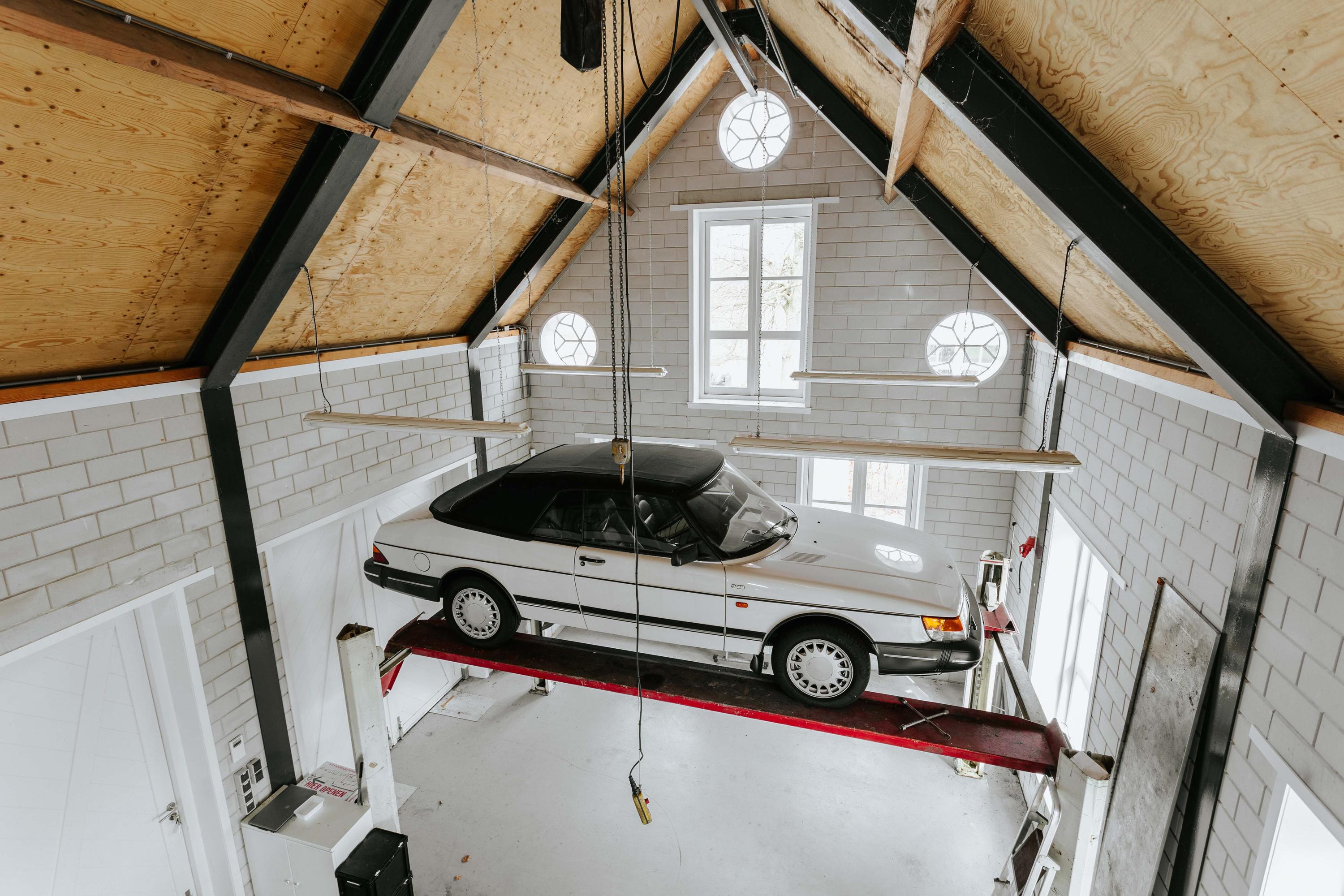 Un garage indépendant peut accueillir six véhicules avec chauffage au sol et espace de travail ; il est également modulable selon les besoins futurs. Les aménagements économes en énergie, dont une pompe à chaleur et une isolation renforcée, rythment la durabilité de la propriété.