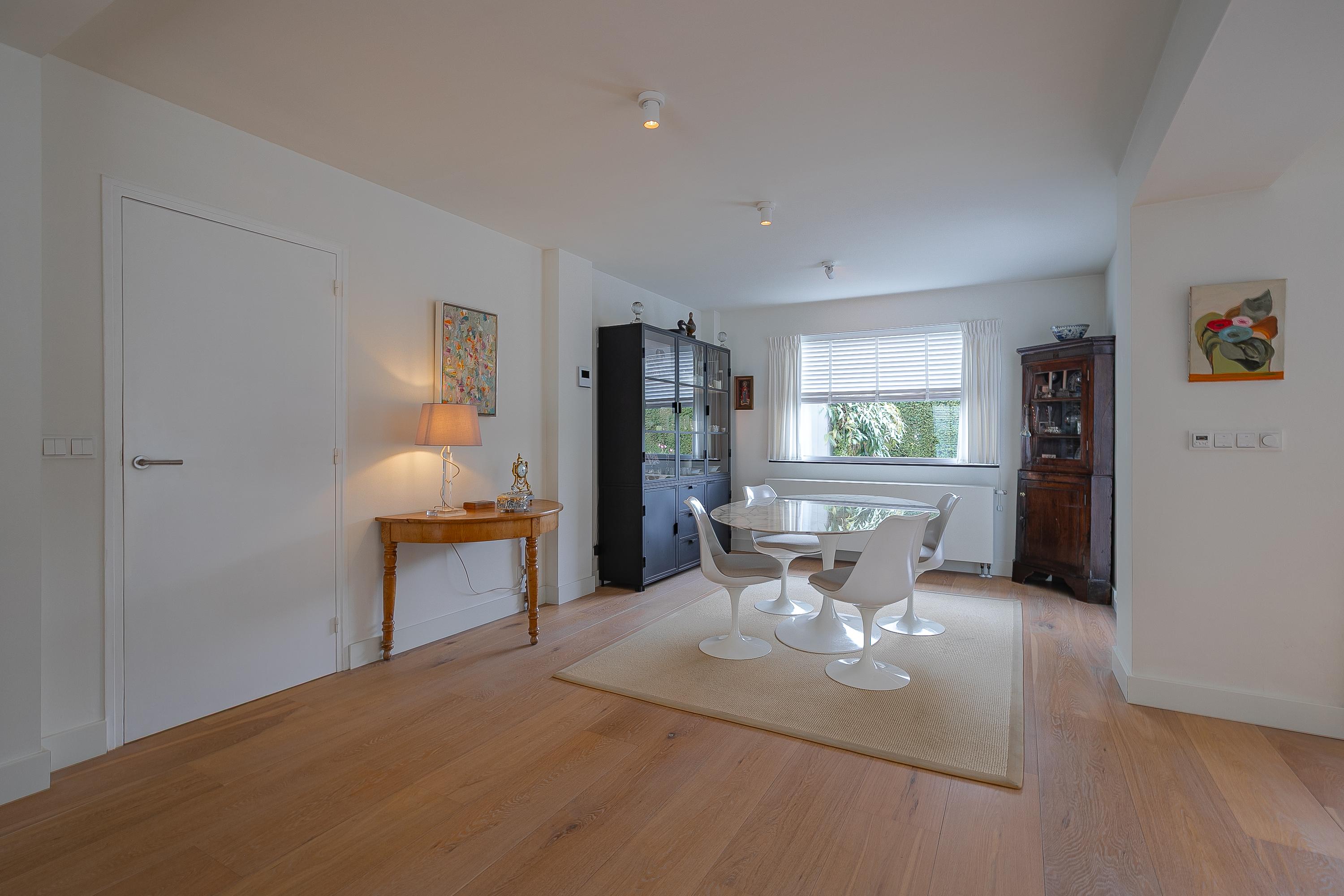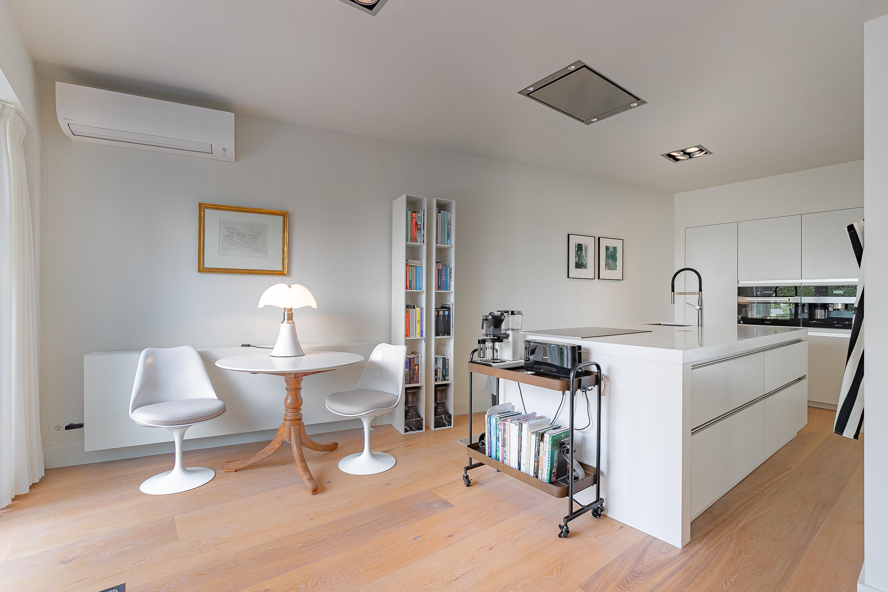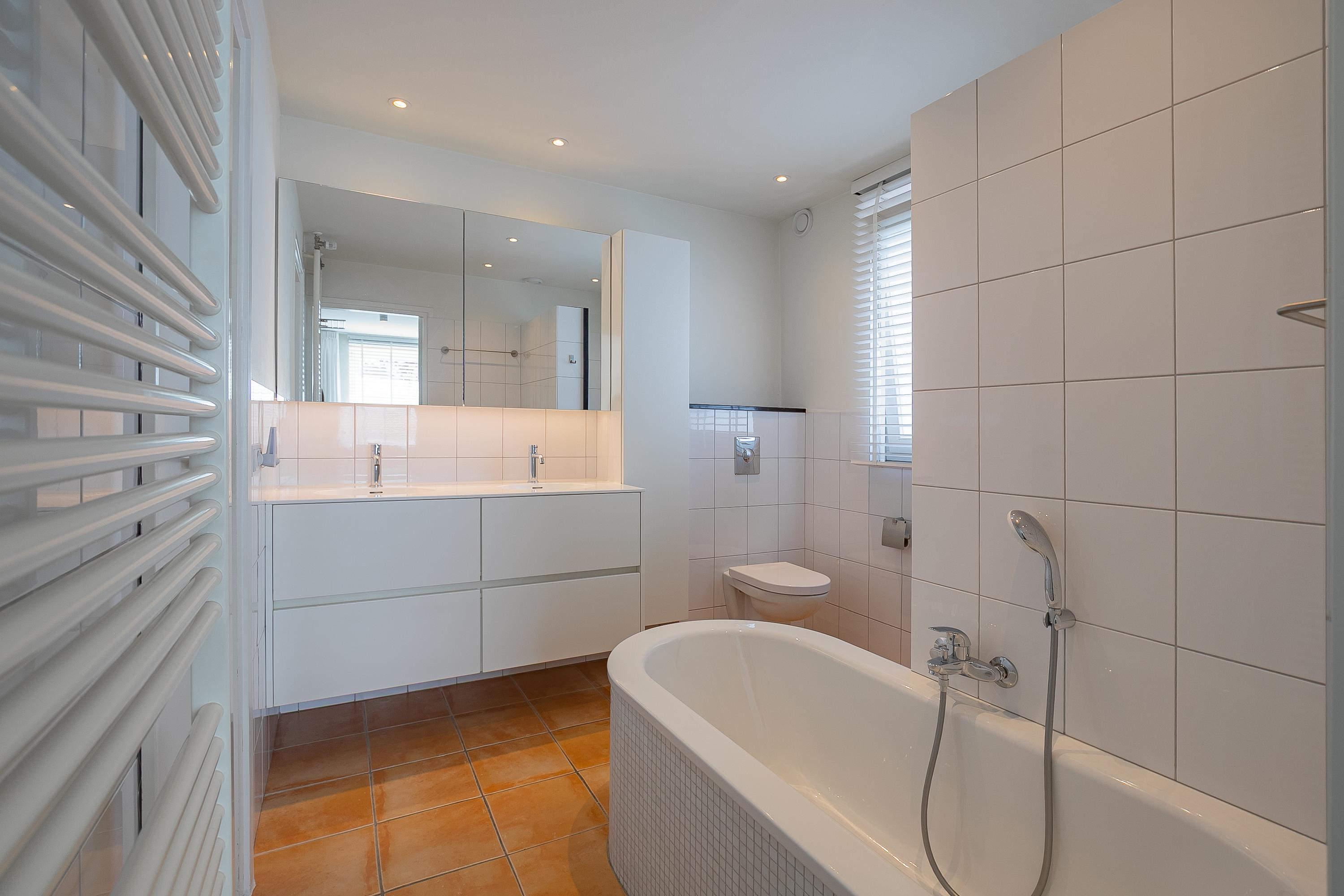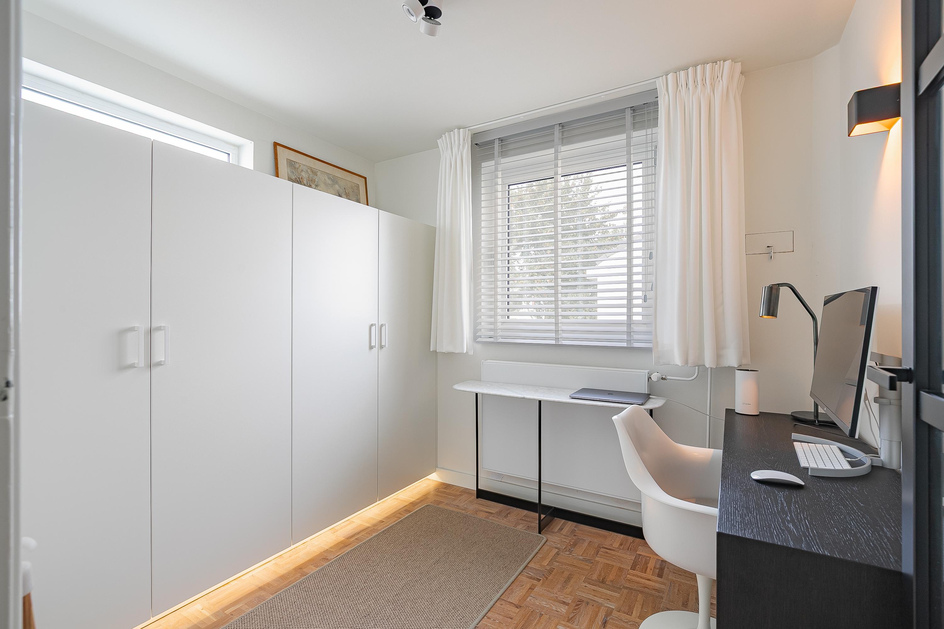 À l’étage, les quatre chambres sont complétées par des placards sur mesure de Slangen Interieurbouw et un parquet mosaïque. La salle de bains propose une douche à l’italienne, une baignoire, une ventilation mécanique et un chauffage au sol. La suite parentale bénéficie de la climatisation ; de multiples solutions de rangement sont présentes, avec un sous-sol généreux abritant un garage de 33 m² et des espaces techniques, ainsi qu’un espace de stockage sous combles.