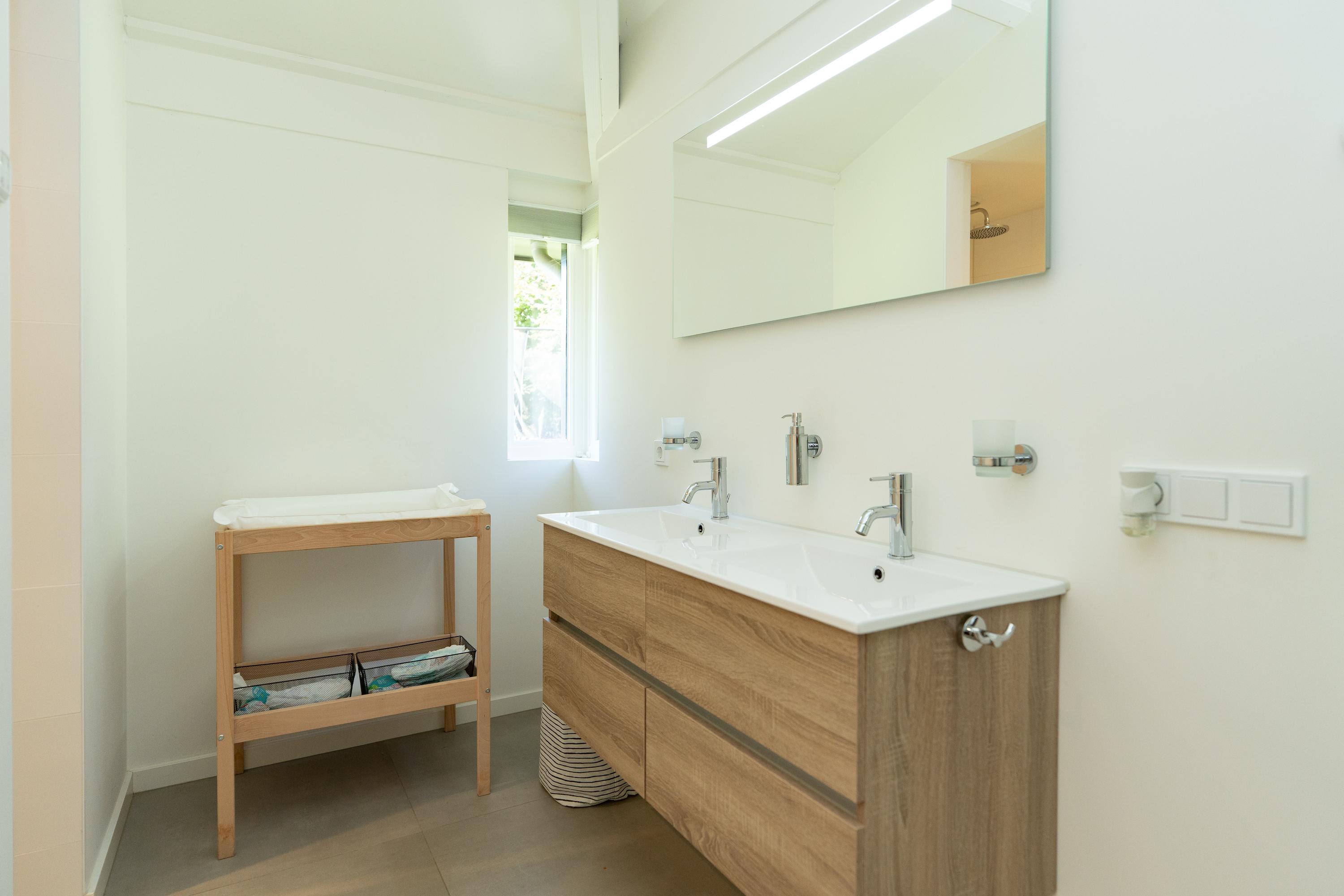 Une cuisine raffinée dotée d’un îlot central et de rangements intégrés structure la pièce de vie, complétée par une buanderie et un cellier. Les équipements techniques incluent une pompe à chaleur pour le chauffage et le rafraîchissement, 25 panneaux solaires, une ventilation double flux avec récupération de chaleur et un chauffage au sol sur l’ensemble du rez-de-chaussée. Les améliorations structurelles – toiture, isolation, menuiseries – portent le niveau du confort à celui des normes européennes.