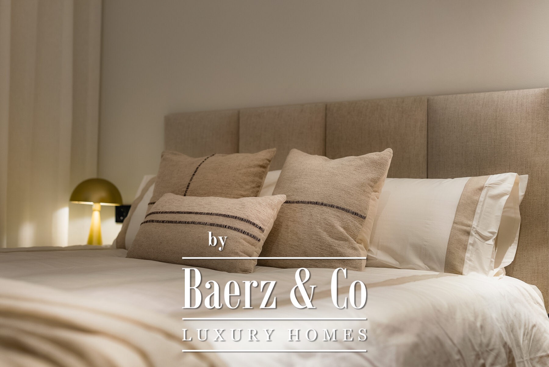 Appartement Marbella Golden Mile avec vue panoramique sur la mer, une adresse choisie par ceux qui accordent de la valeur à l’emplacement, au design et à la simplicité de vie. Ce trois-pièces offre 110 m² d’intérieurs soigneusement rénovés et une terrasse de 20 m² ouvrant sur des panoramas marins. Les espaces de vie principaux privilégient la sérénité et le confort, sublimés par un parquet à bâtons rompus BOEN, des équipements Gaggenau et Siemens, ainsi qu’une domotique de pointe. Les salles de bains sont équipées de robinetterie Dornbracht, signe d’un engagement constant pour la qualité.