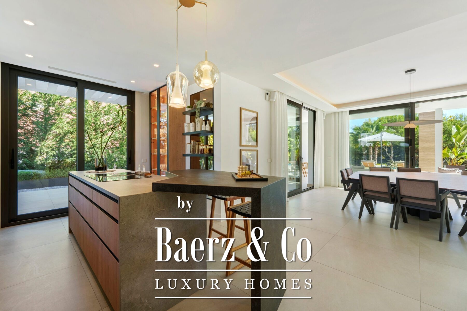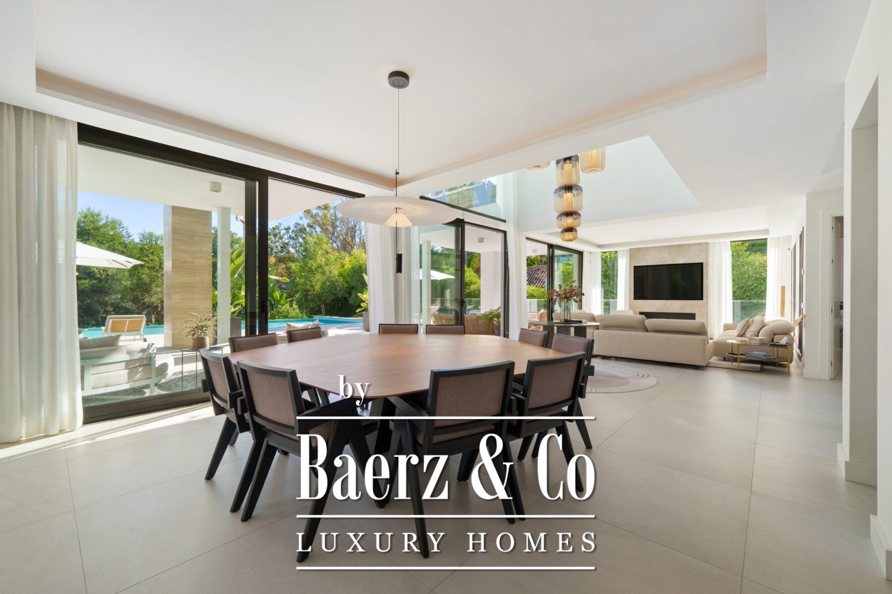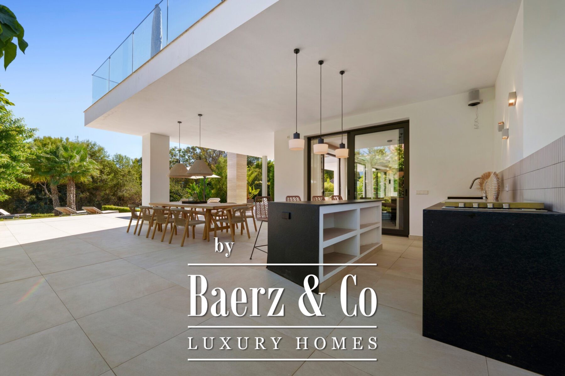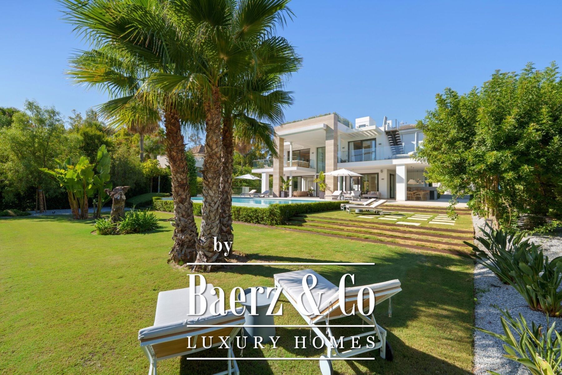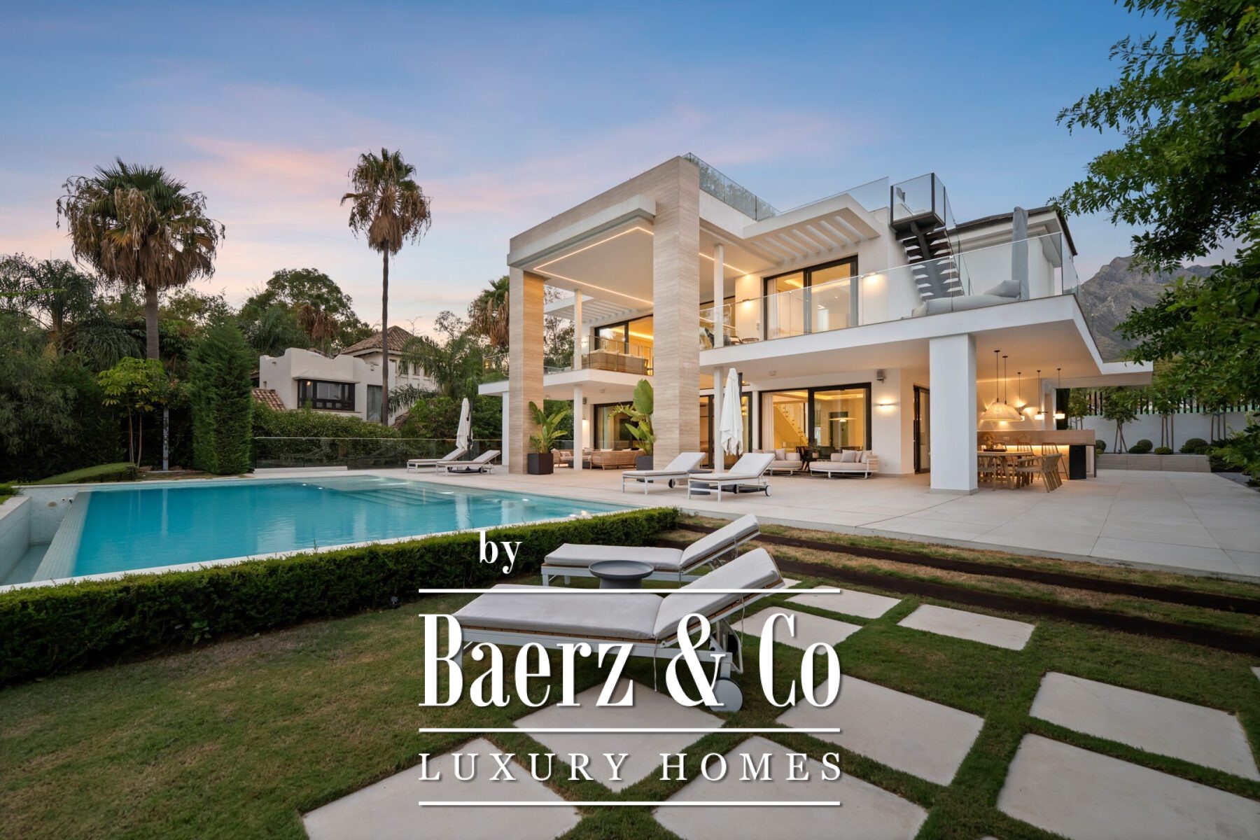 Les volumes généreux comprennent une salle à manger de réception, une cuisine de designer et un salon de divertissement raffiné, tous empreints d’une élégance discrète. Les suites, chacune avec leur propre salle de bain, constituent de véritables havres de paix, tandis que la suite parentale révèle une salle de bain inspirée d’un spa avec baignoire îlot et vues imprenables sur la montagne La Concha. La vie extérieure, à la fois privée et spectaculaire, s’organise autour de multiples terrasses, d’un lounge sur le toit avec jacuzzi et d’une piscine à débordement, le tout entouré de jardins paysagers sur une parcelle de 1 556 m².