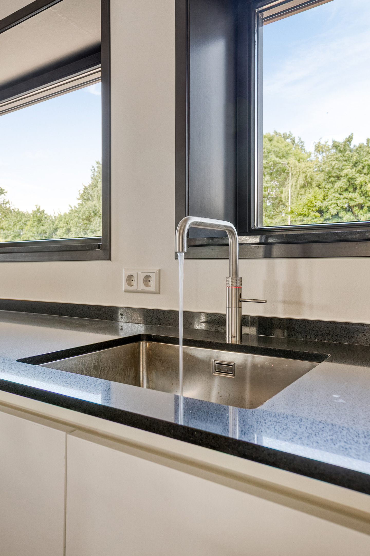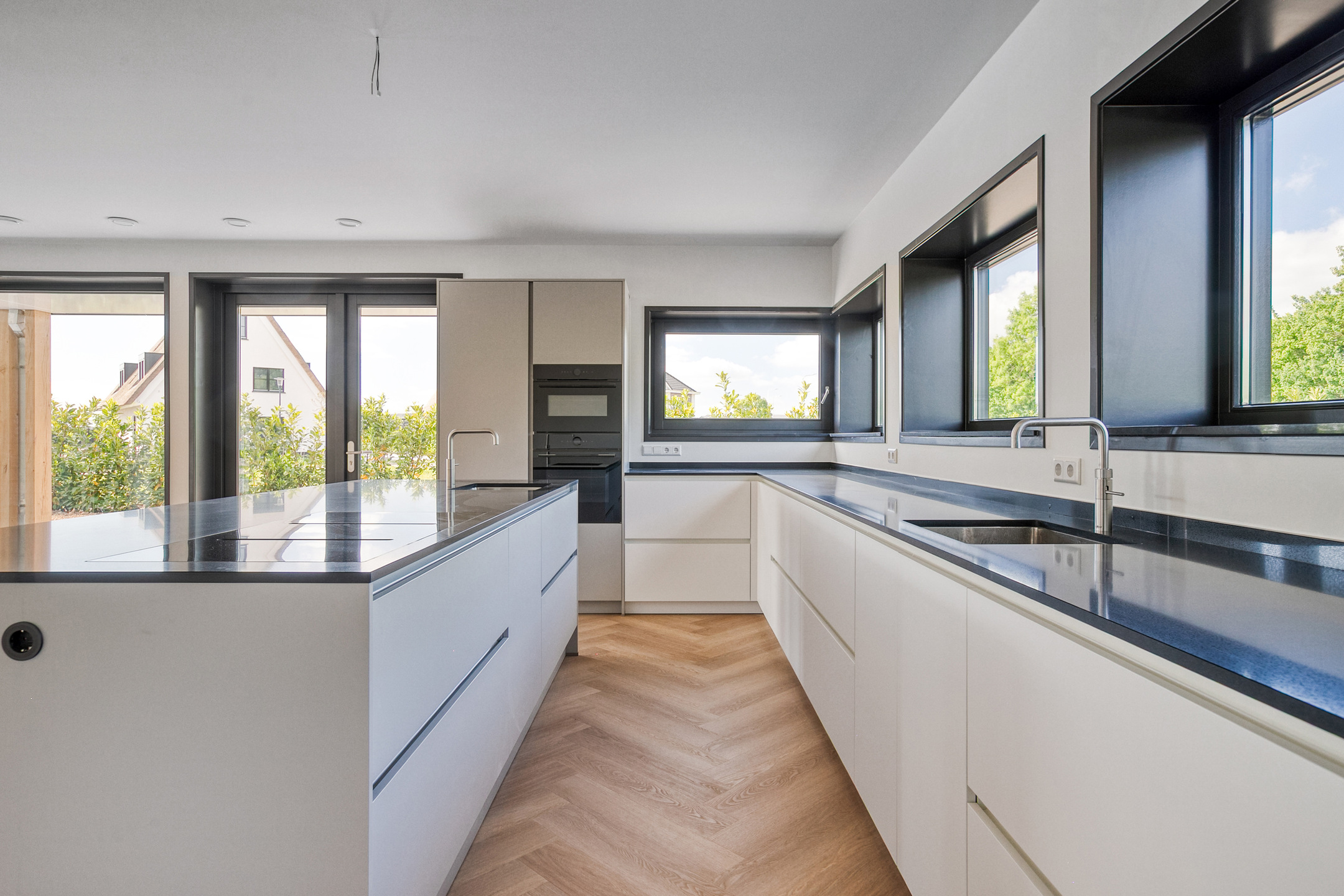 Cette villa de luxe à vendre à Meteren est livrée sans gaz, équipée de panneaux solaires, d’une pompe à chaleur géothermique, et bénéficie du label énergétique A+++. Le chauffage et la climatisation par le sol associés à une isolation haut de gamme assurent un environnement paisible et économe. Le jardin, pensé pour l’intimité et la détente, enveloppe la maison et invite à un aménagement paysager personnalisé.