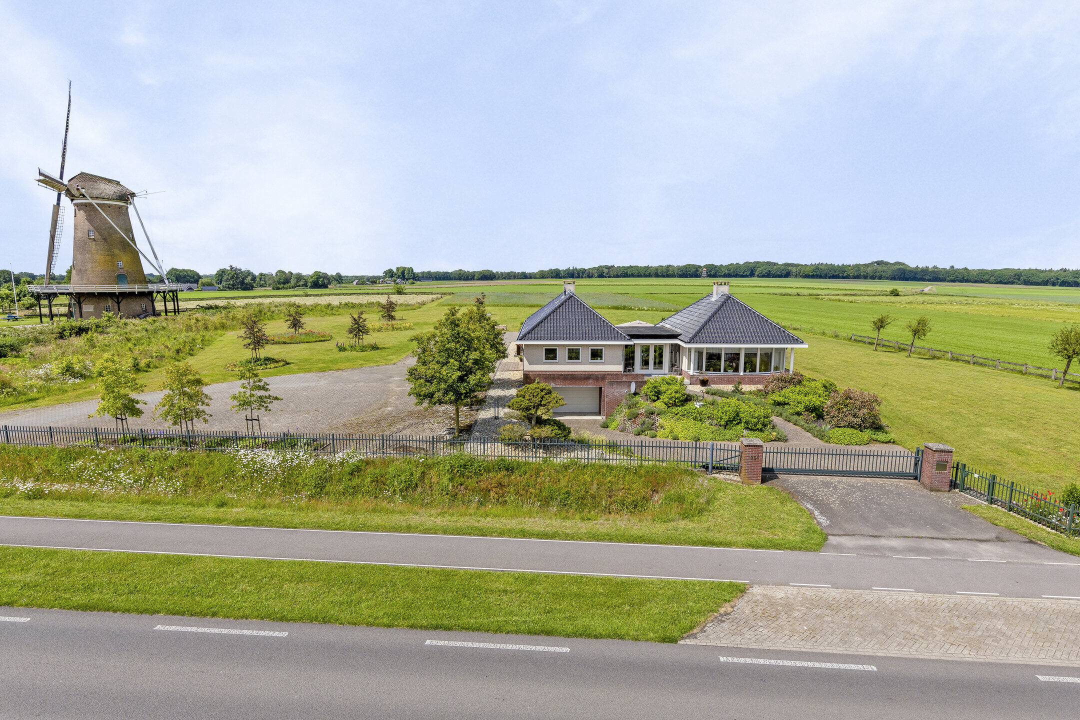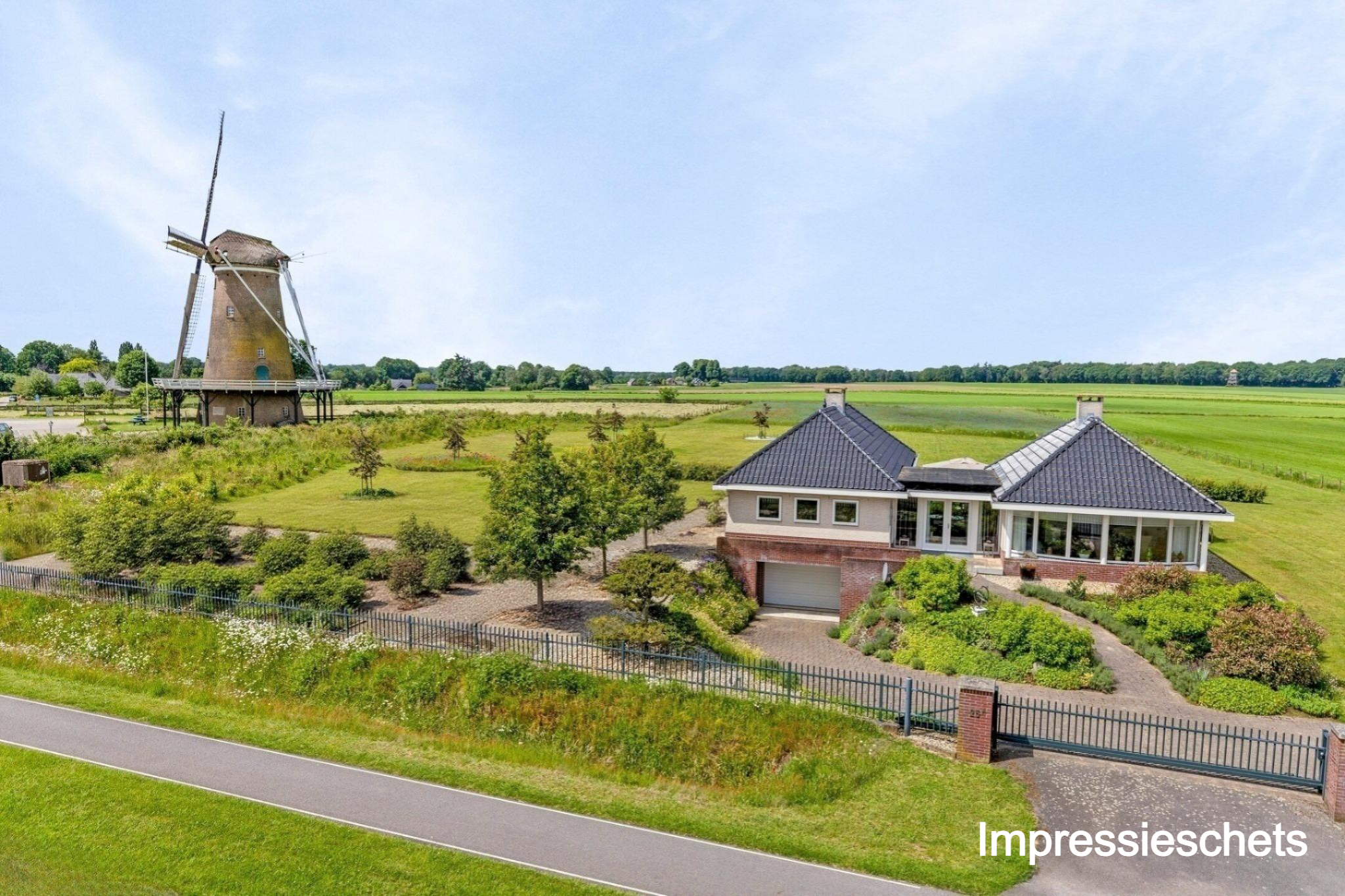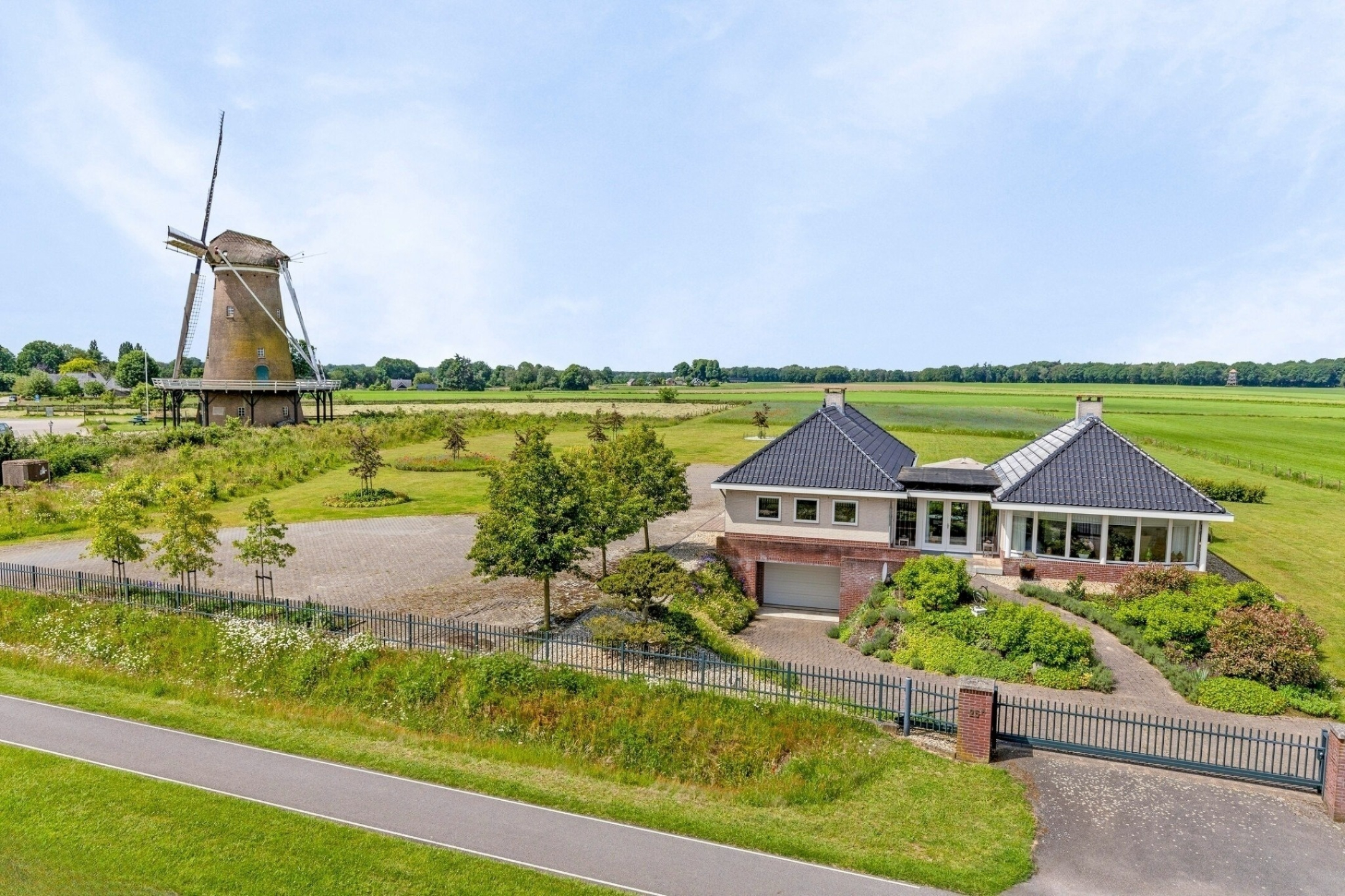Le potentiel d’adaptation future est important, avec un permis déjà délivré pour une dépendance de 150 m². L’adresse allie calme rural et commodité : le centre de Neede, le charmant Diepenheim et la culture régionale sont proches, les villes d’Enschede et Hengelo sont à vingt minutes via la N18.