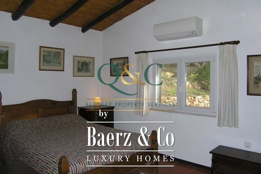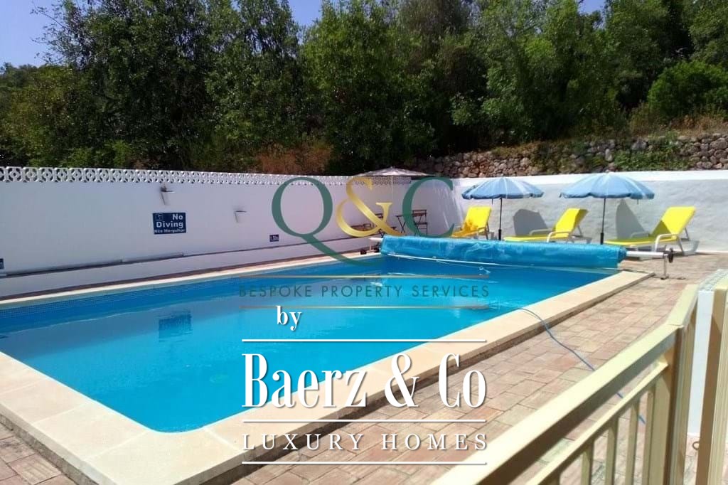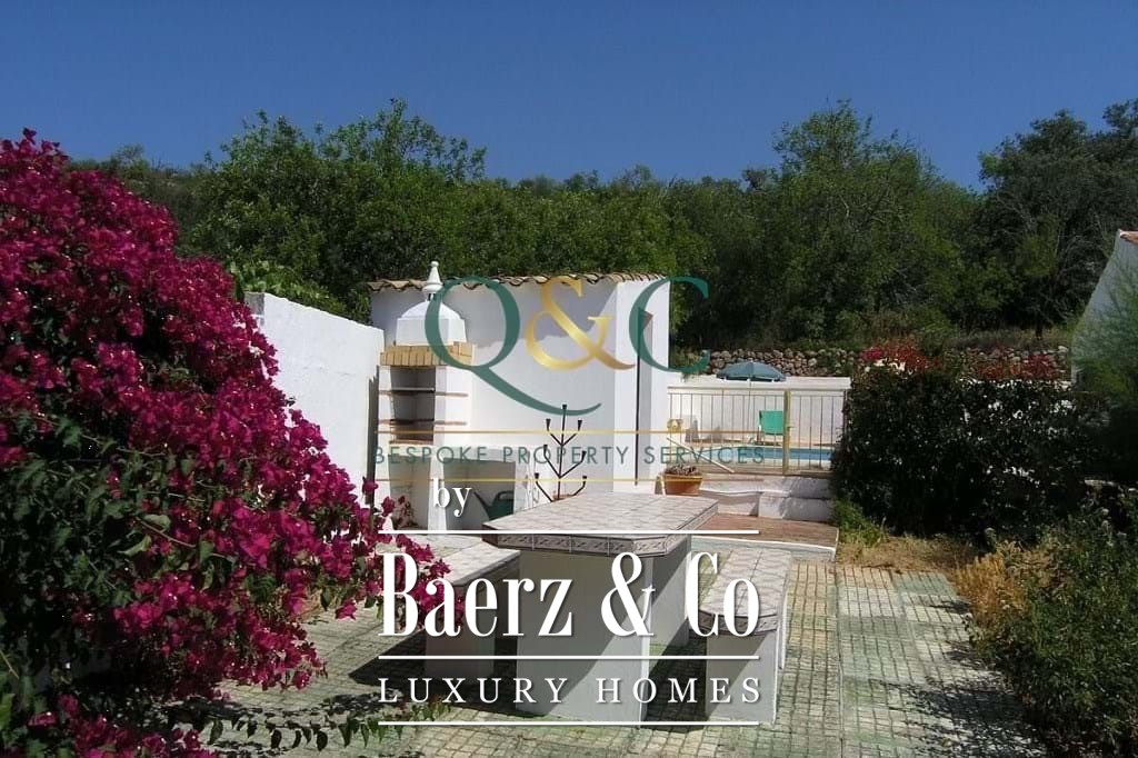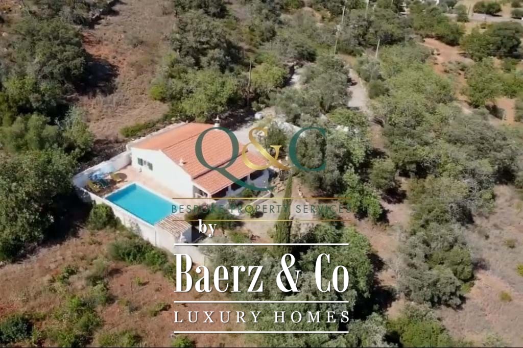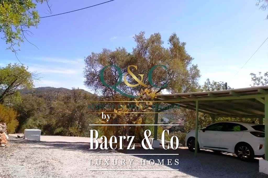 À l’extérieur, des chênes verts, oliviers et caroubiers matures bordent les terrasses paysagées en pierre, rehaussées de bougainvilliers, lauriers-roses, lantanas et citronniers. La piscine de 8 x 5 mètres, récemment rénovée, est équipée d’une couverture thermique améliorant son efficacité. Une allée privée mène à un carport avec stationnement spacieux, et un potentiel supplémentaire existe sur une terrasse inférieure. La propriété bénéficie de l’eau d’un forage, de vues sur la campagne et les montagnes, ainsi que de la proximité du golf Viceroy Ombria Algarve, de la côte et de l’aéroport de Faro, garantissant une vie paisible tout en restant connectée.
