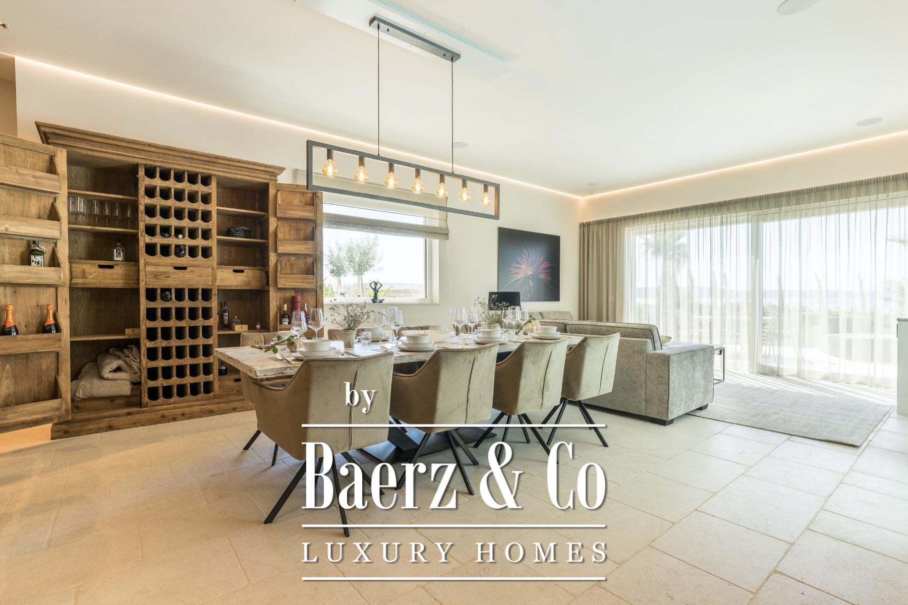 Le rez-de-chaussée se distingue par ses vastes baies vitrées qui laissent entrer la lumière naturelle et offrent des vues panoramiques sur l’Adriatique. L'espace de vie spacieux communique harmonieusement avec la salle à manger et une cuisine ouverte entièrement équipée. Une salle de fitness dédiée, accessible directement depuis la terrasse et la piscine, assure une transition fluide entre le confort intérieur et la détente en extérieur.