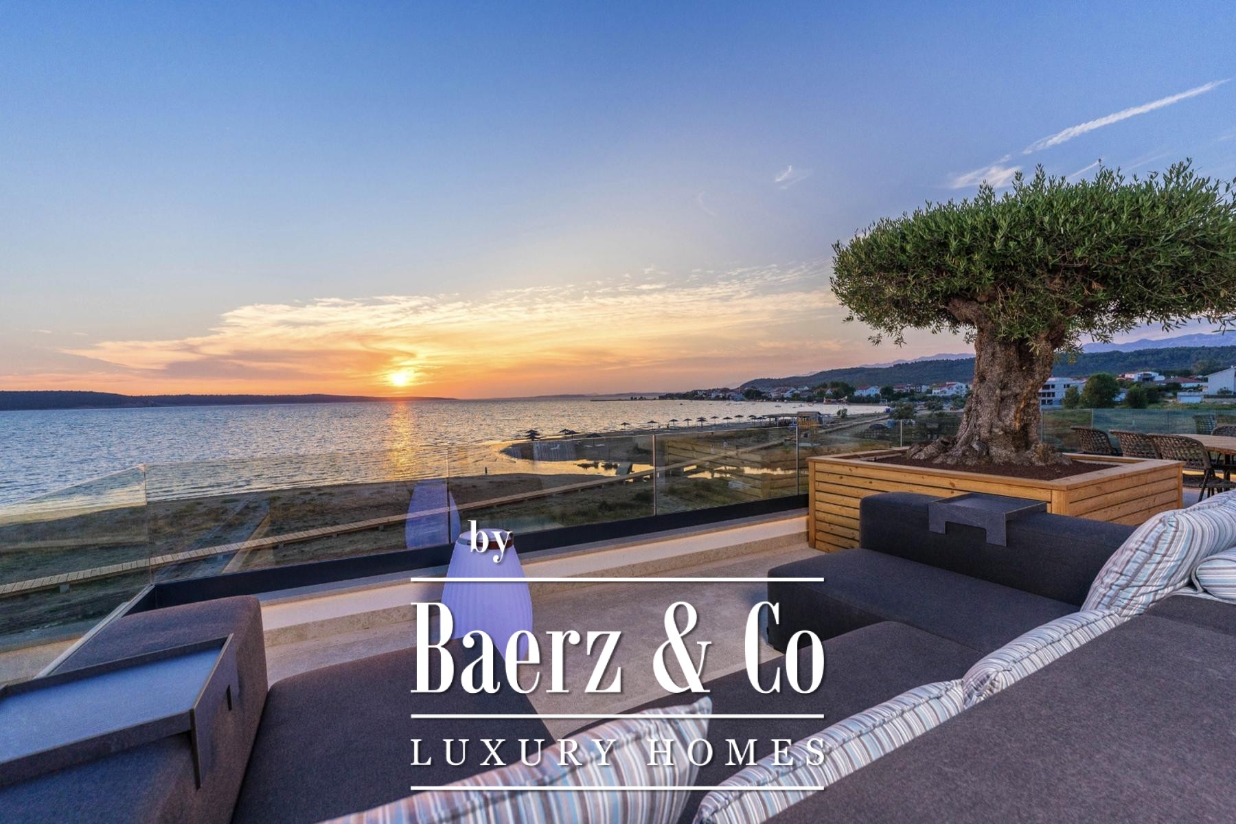 La villa moderne Ražanac est une propriété de 316 m² située en bord de mer, offrant un art de vivre contemporain et confidentiel sur la côte croate. Achevée en 2022, cette villa repose sur un terrain de 703 m², enveloppée par un aménagement paysager méditerranéen comprenant oliviers, palmiers et lavande, sélectionnés avec soin pour garantir intimité et sérénité.