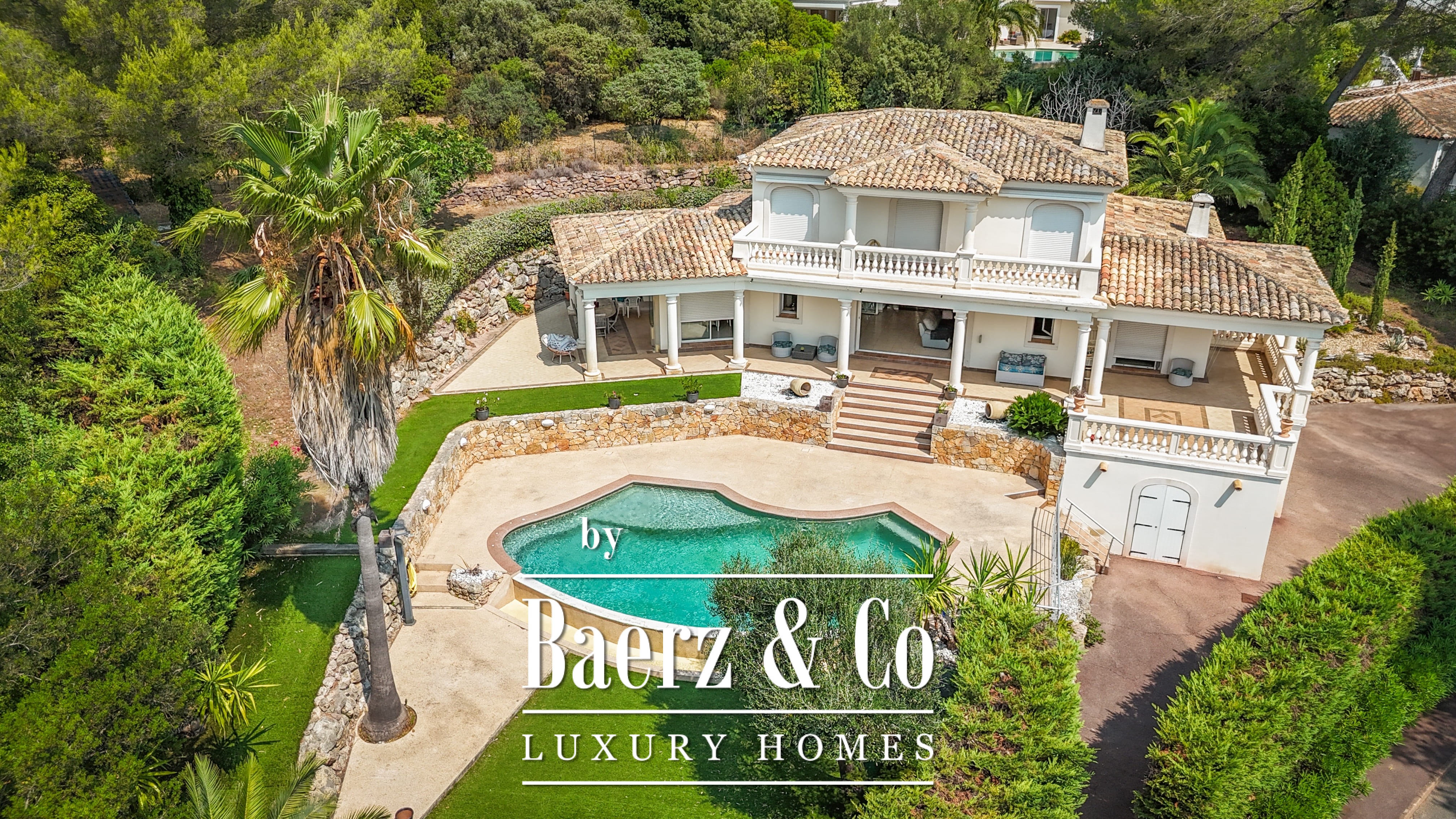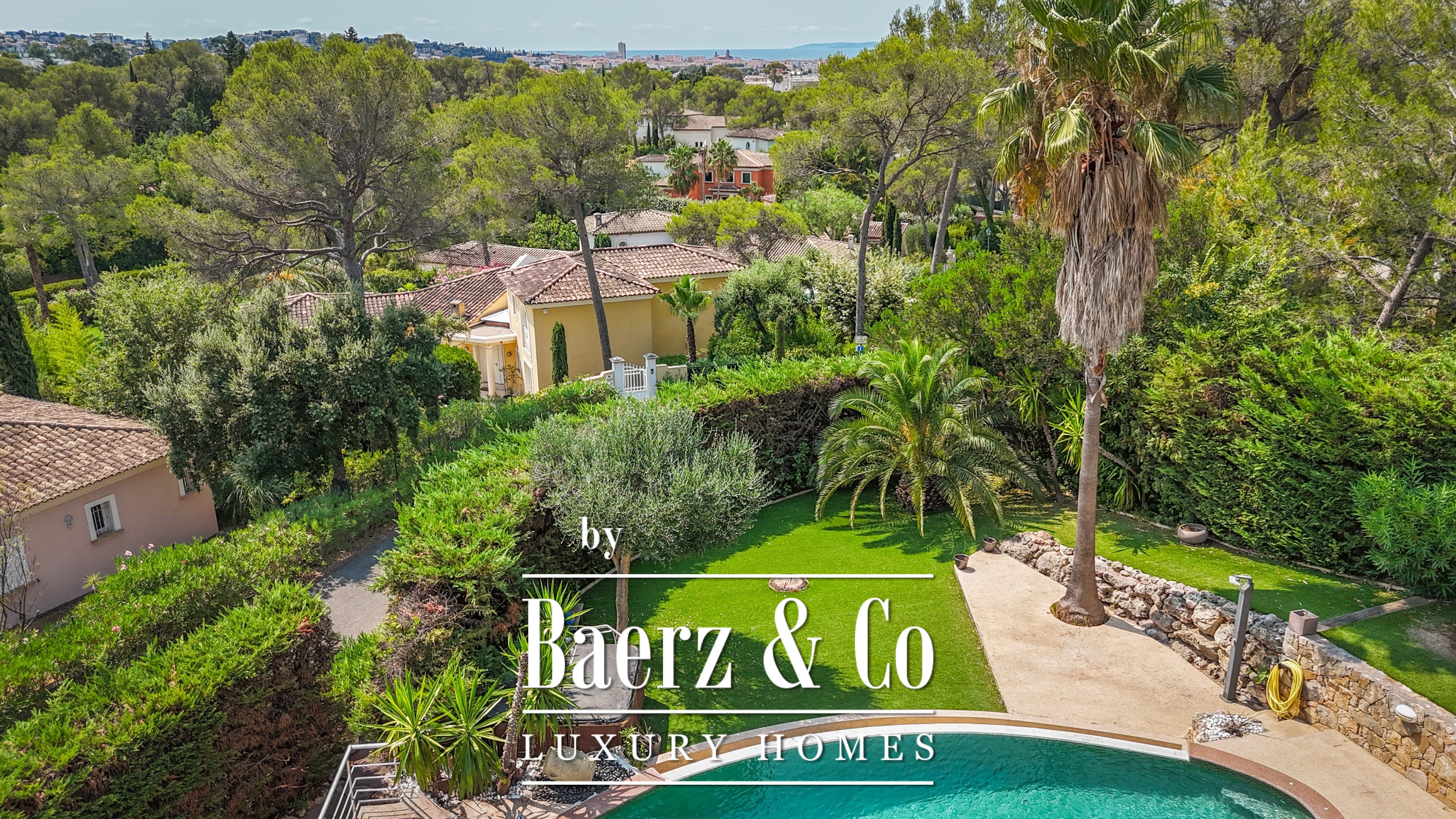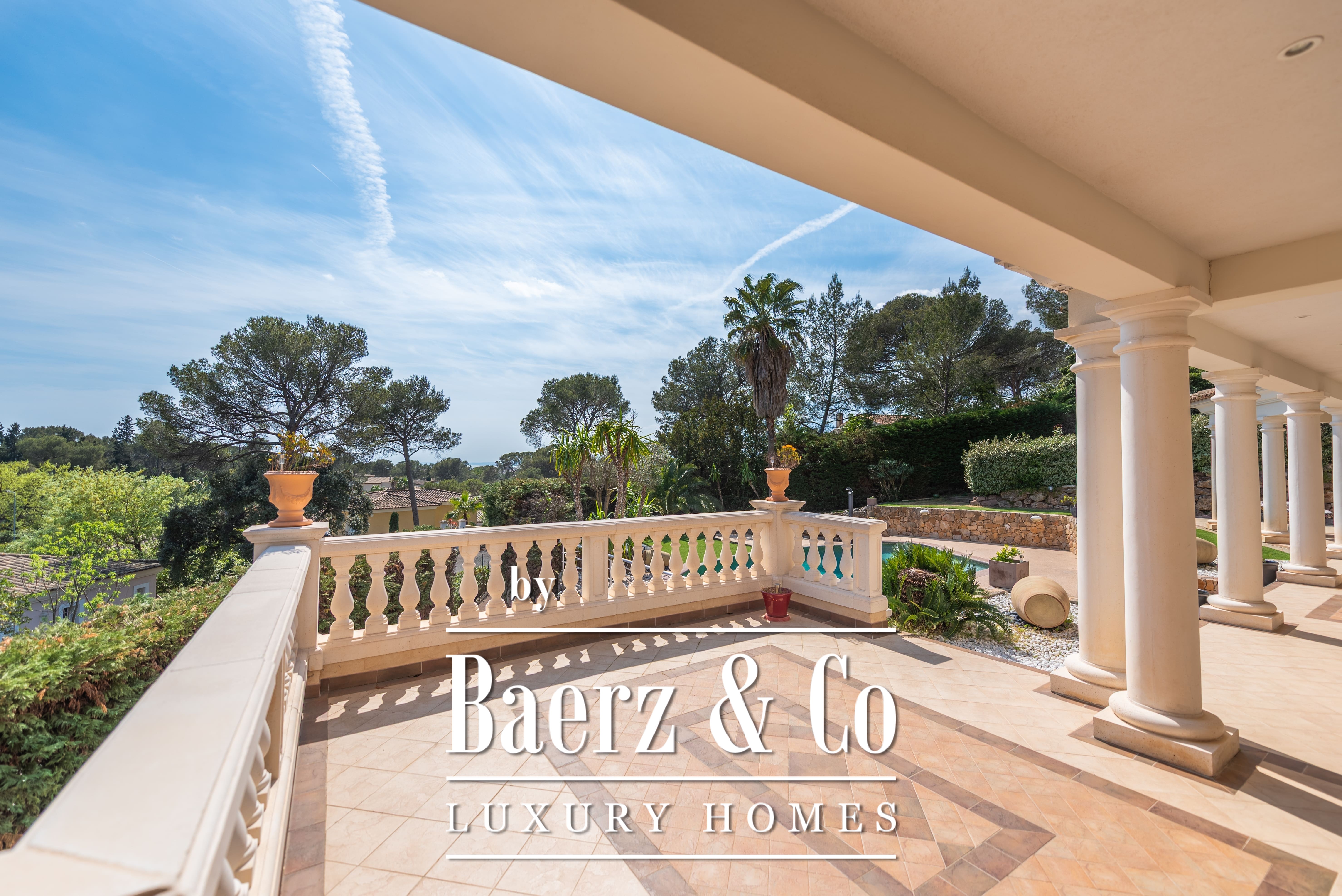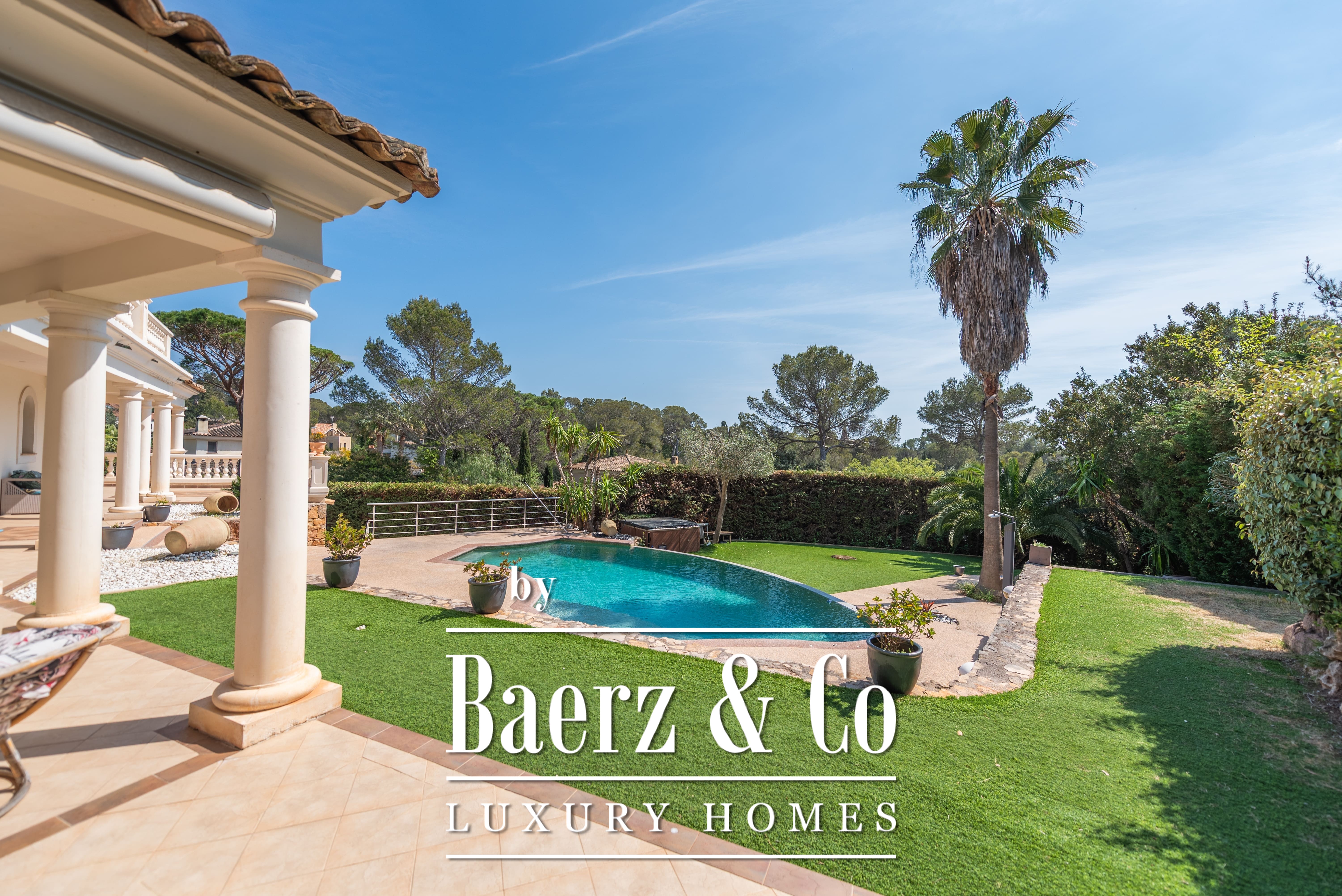 Le terrain paysager de 1 511 m² entoure la propriété de jardins matures, de multiples terrasses et d’une piscine à débordement. Au niveau inférieur, on trouve une salle de jeux, un double garage et des espaces techniques. Les équipements comprennent des huisseries aluminium, volets roulants électriques centraux, alarme, vidéosurveillance et portail électrique, pour une sécurité optimale.