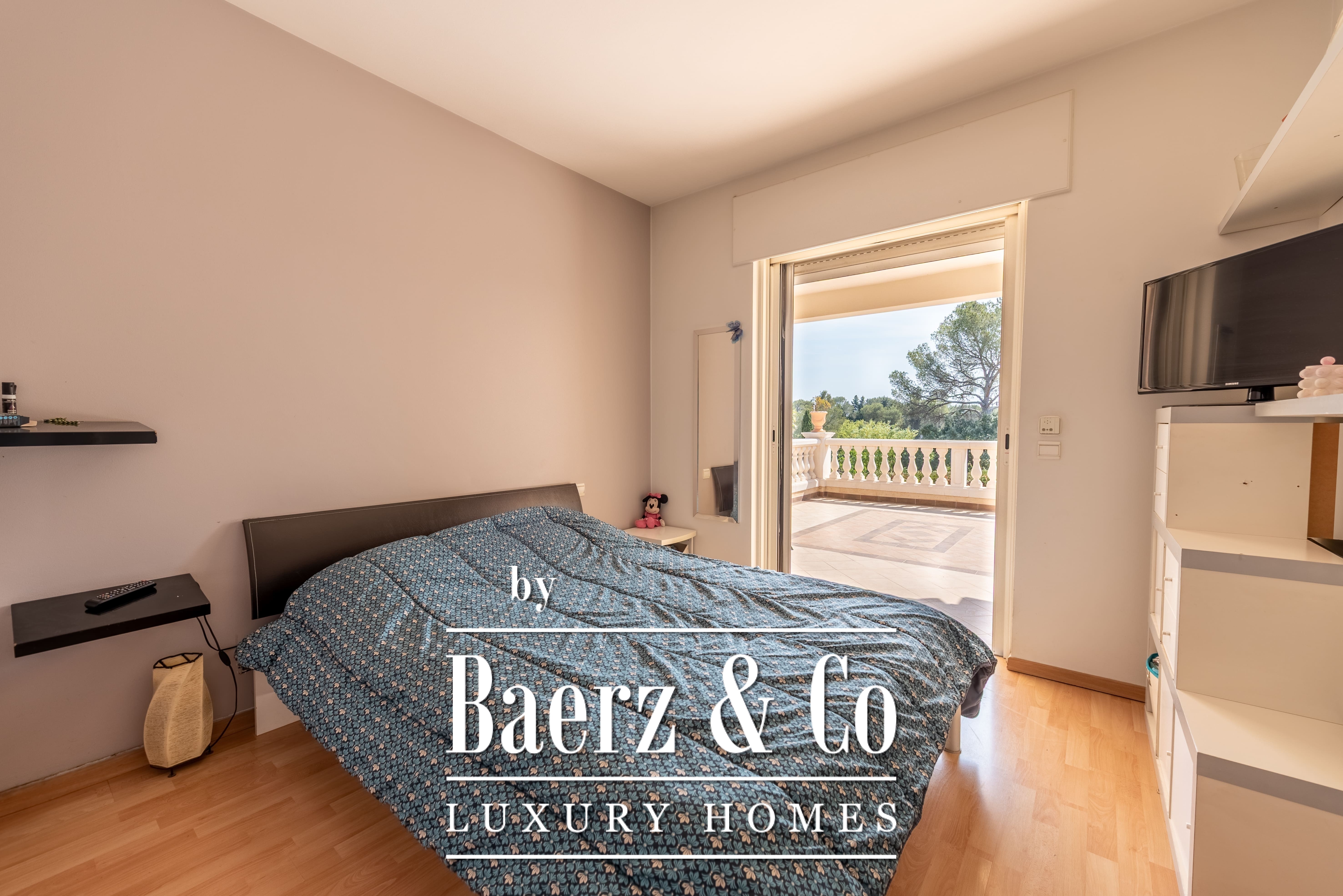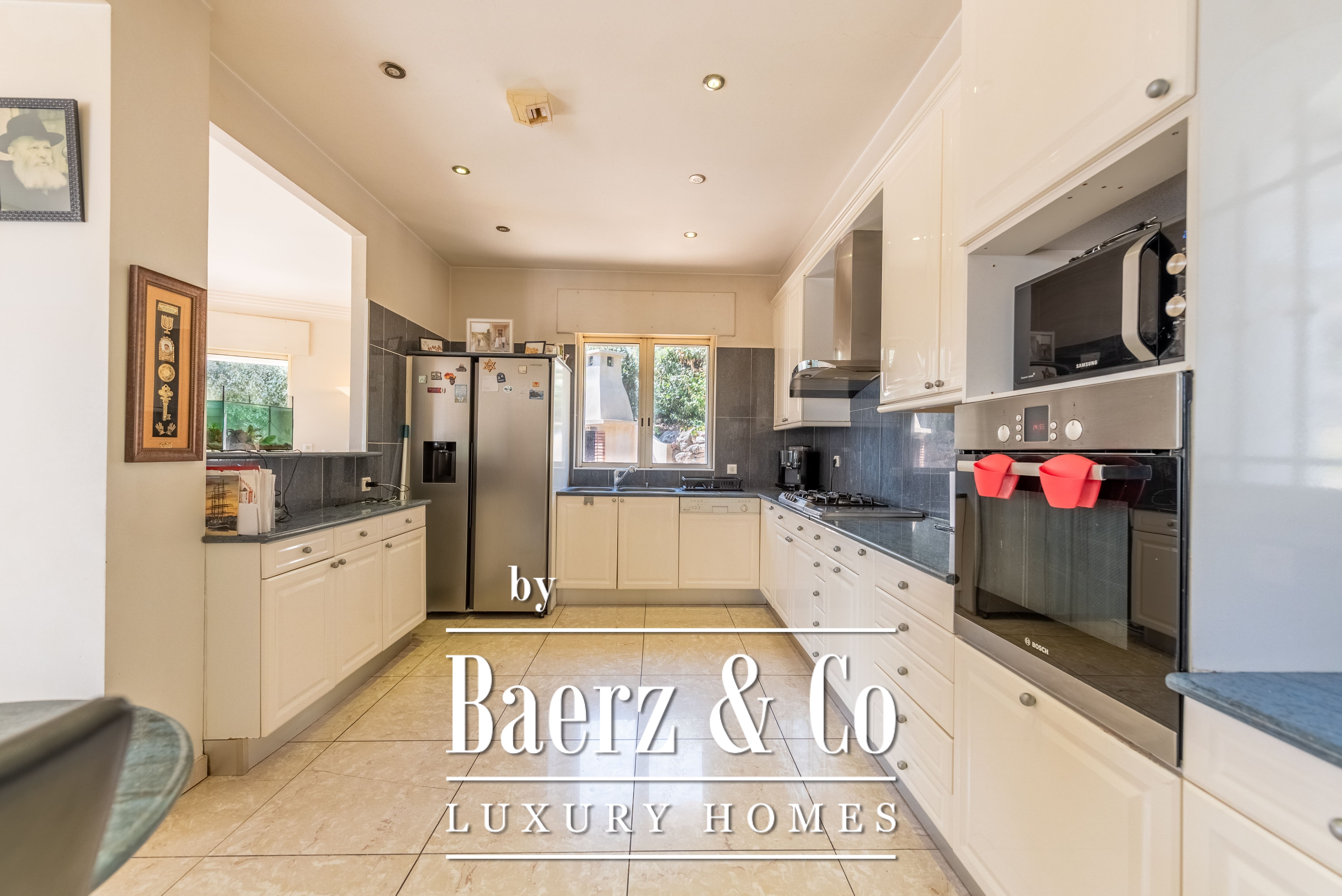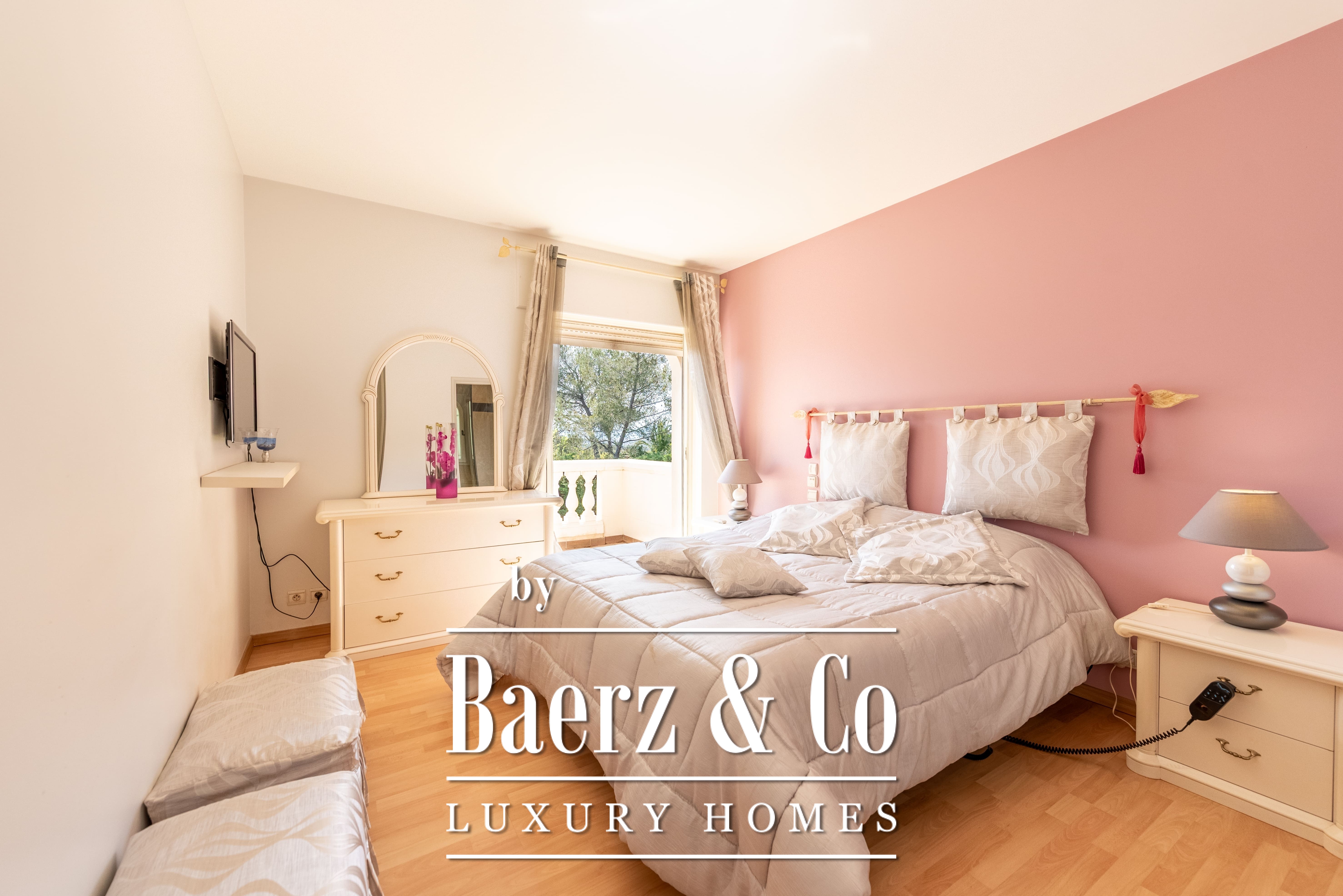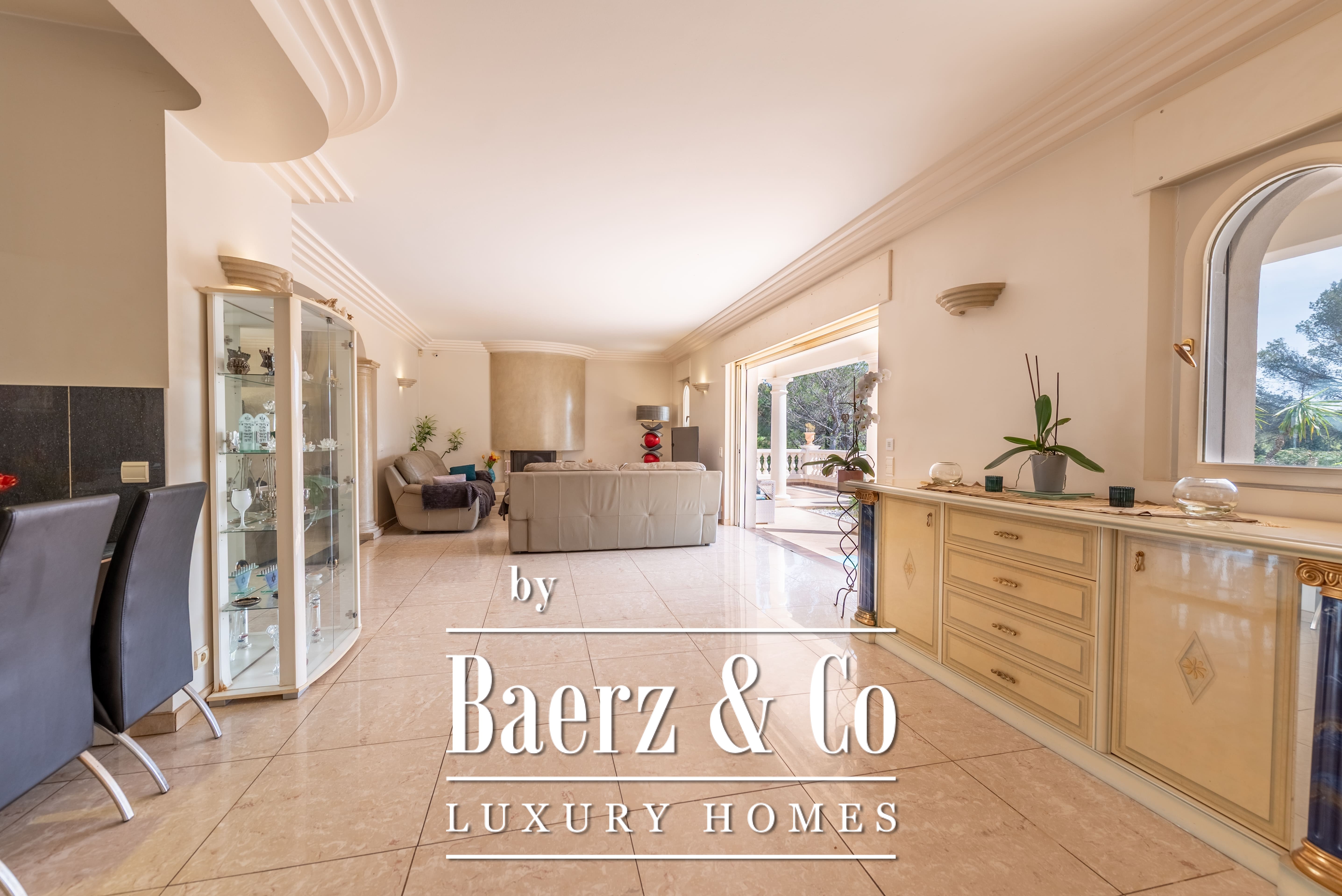 Le terrain paysager de 1 511 m² entoure la propriété de jardins matures, de multiples terrasses et d’une piscine à débordement. Au niveau inférieur, on trouve une salle de jeux, un double garage et des espaces techniques. Les équipements comprennent des huisseries aluminium, volets roulants électriques centraux, alarme, vidéosurveillance et portail électrique, pour une sécurité optimale.