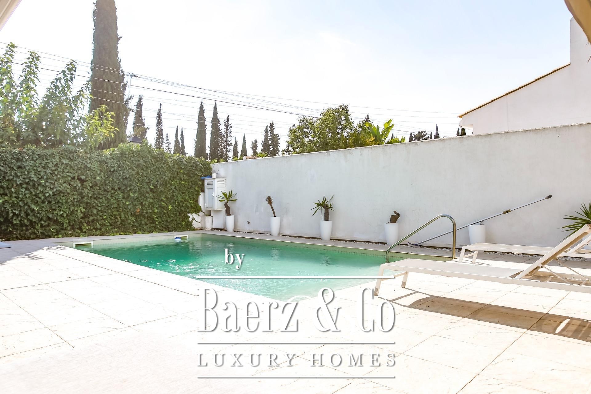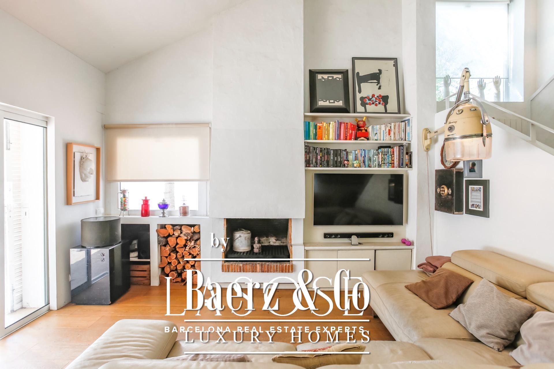 À l’intérieur, l’organisation des espaces offre un rythme harmonieux. Le séjour élégant avec cheminée s’ouvre directement sur le jardin, tandis que la cuisine entièrement équipée avec plan de travail central donne accès à un patio privé et à la zone de stationnement. Au rez-de-chaussée, une suite d’amis ou un bureau complète la flexibilité de vie, alors que l’étage accueille trois lumineuses chambres doubles, chacune profitant de vues sur le jardin et de plafonds à double hauteur. Partout, les finitions soignées et les tons neutres soulignent l’élégance naturelle de l’architecture.