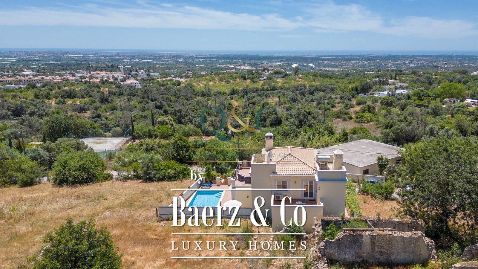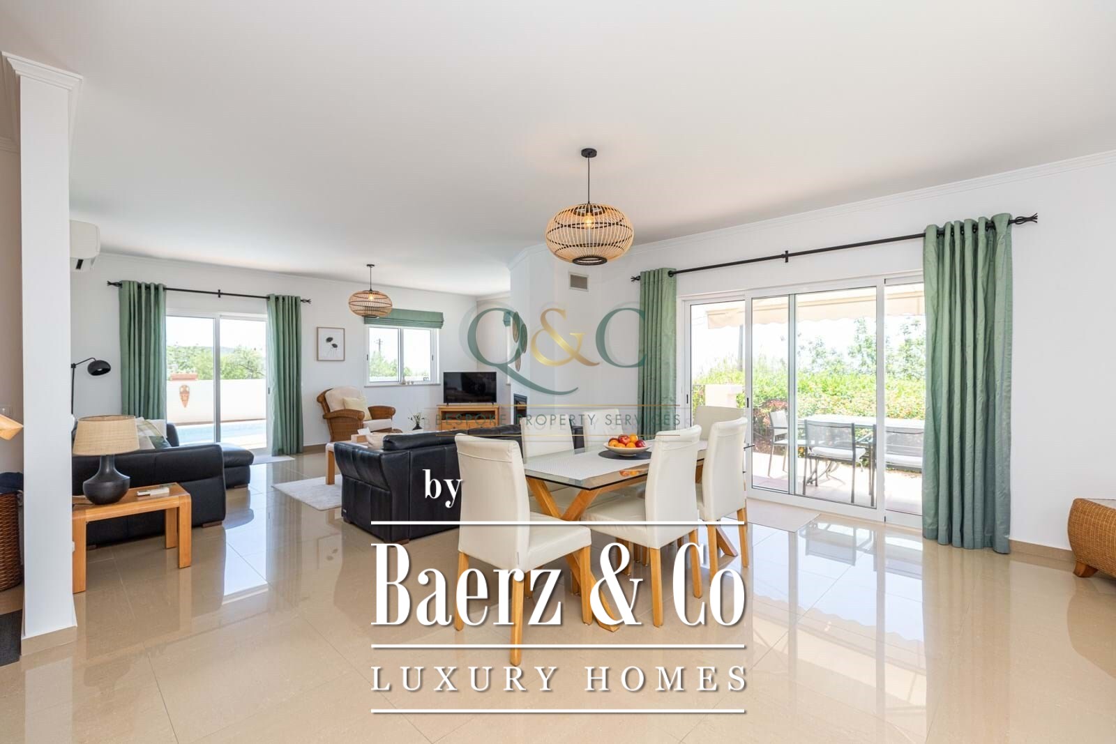 Cette villa à Santa Bárbara de Nexe offre un art de vivre réfléchi sur 174 m², débutant par un garage intégré et une terrasse enveloppant la piscine privée. L'entrée s'ouvre sur un vaste espace de réception avec salon et salle à manger, animé par un poêle à bois. Des transitions subtiles relient l'intérieur aux terrasses ombragées ou ensoleillées, inondant les lieux de lumière et révélant des vues sur la mer et la campagne.