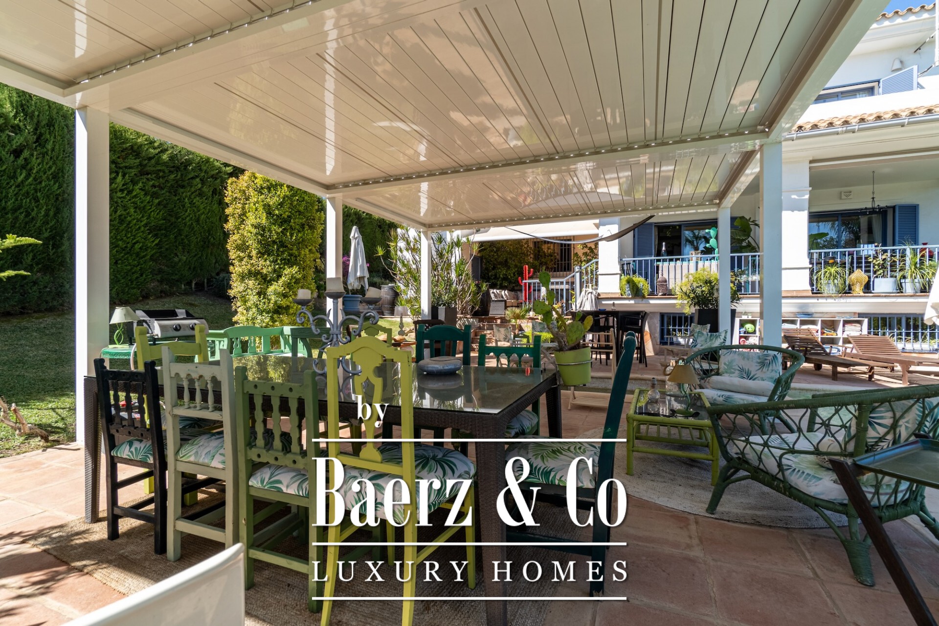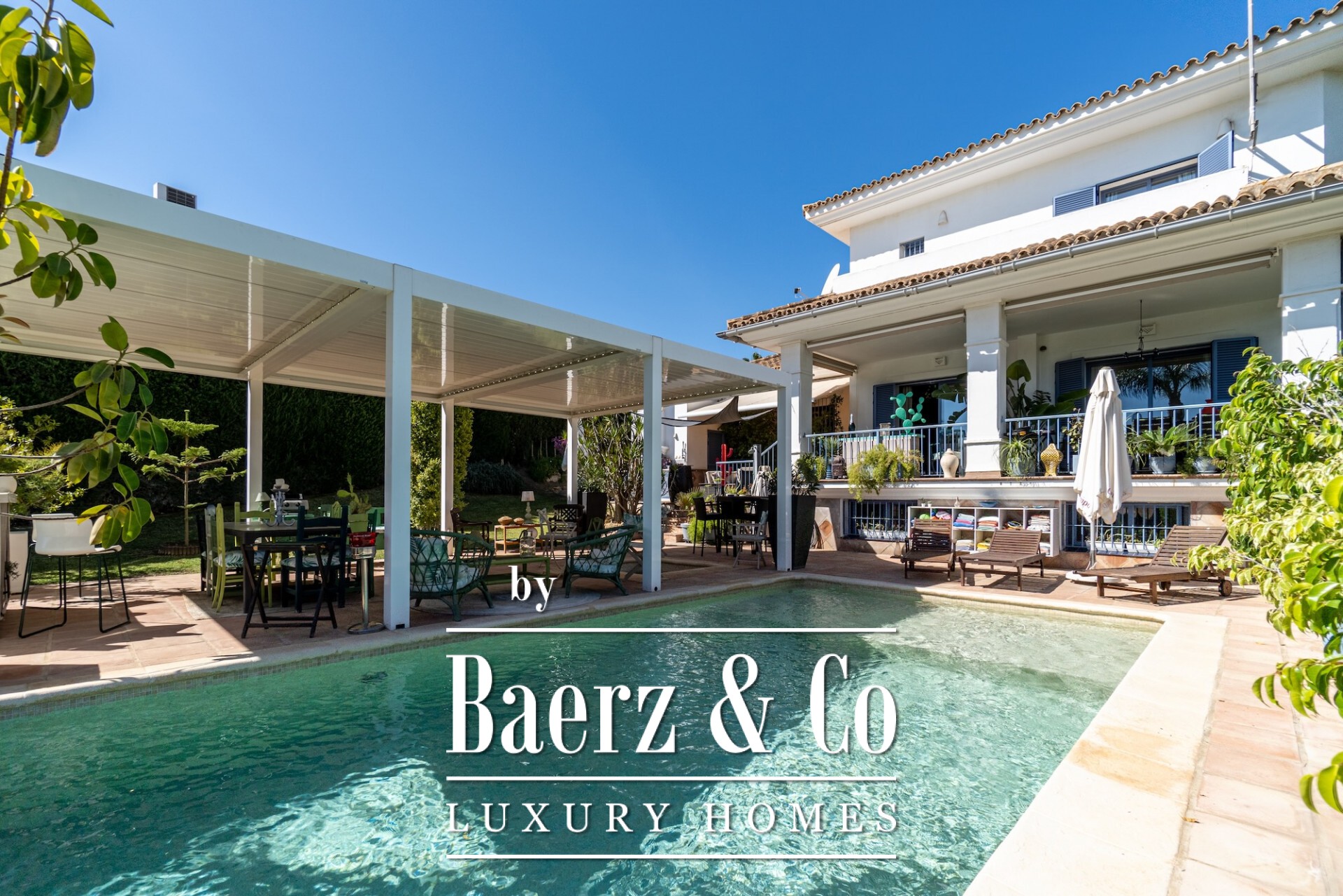 La Villa Sotogrande avec piscine privée est idéalement située dans la très recherchée Zone B de Sotogrande Costa, offrant une opportunité rare de vie familiale raffinée dans une adresse de choix au sein de la station. Édifiée sur un terrain de 1 398 m² et développant 503 m² habitables, cette résidence associe architecture contemporaine, jardins luxuriants et quiétude d'une communauté établie.