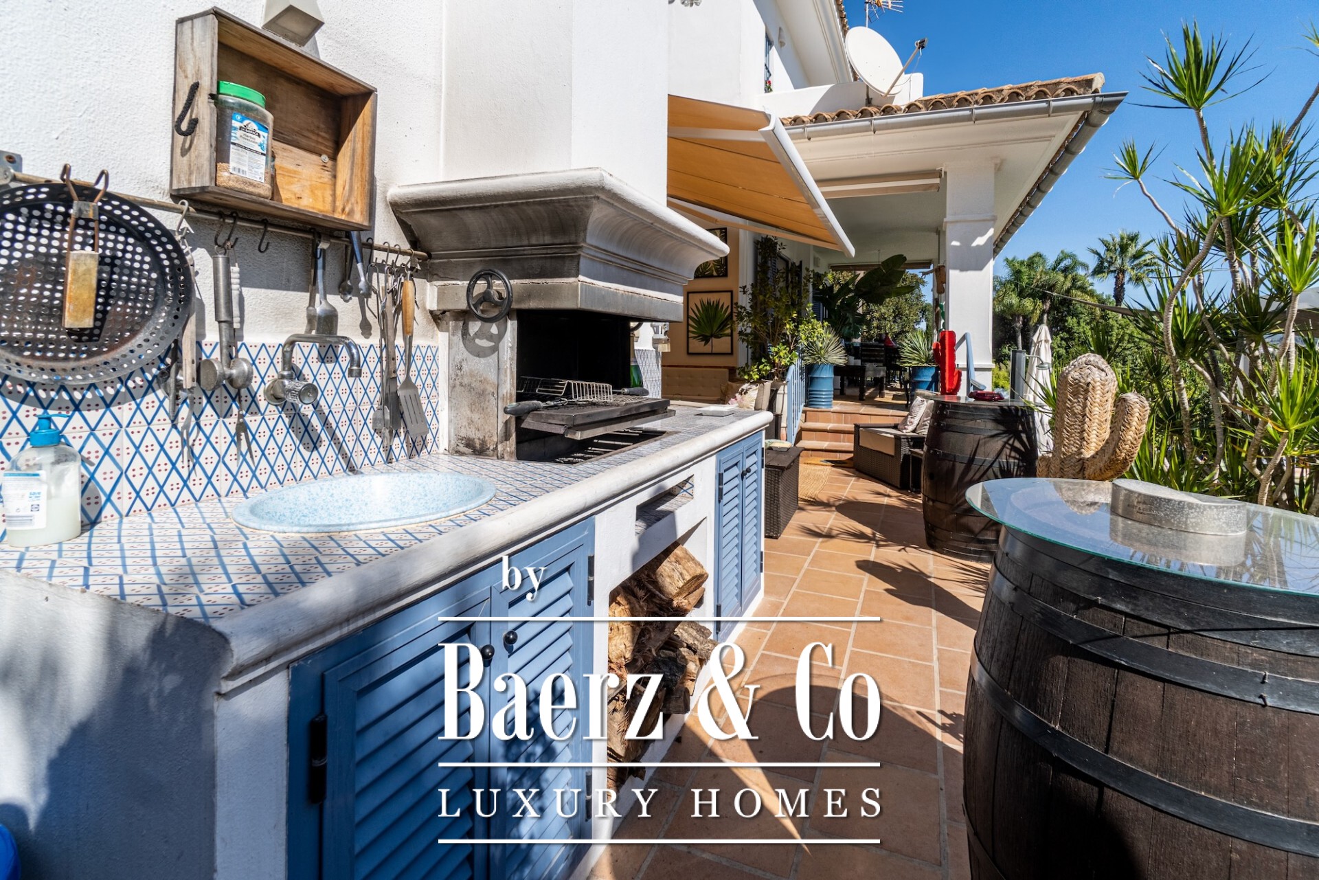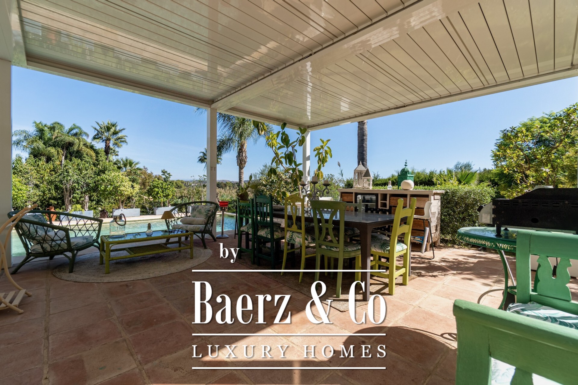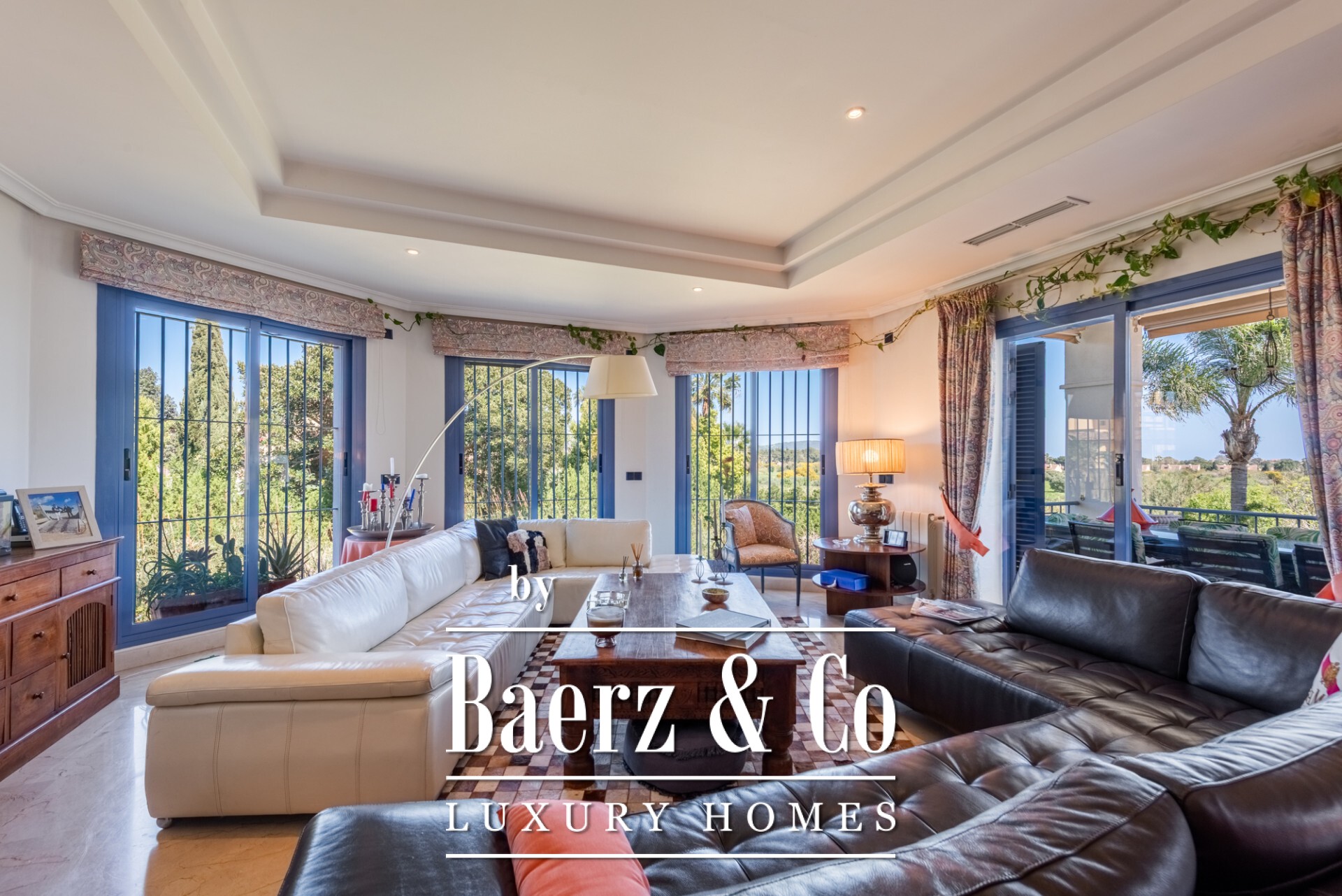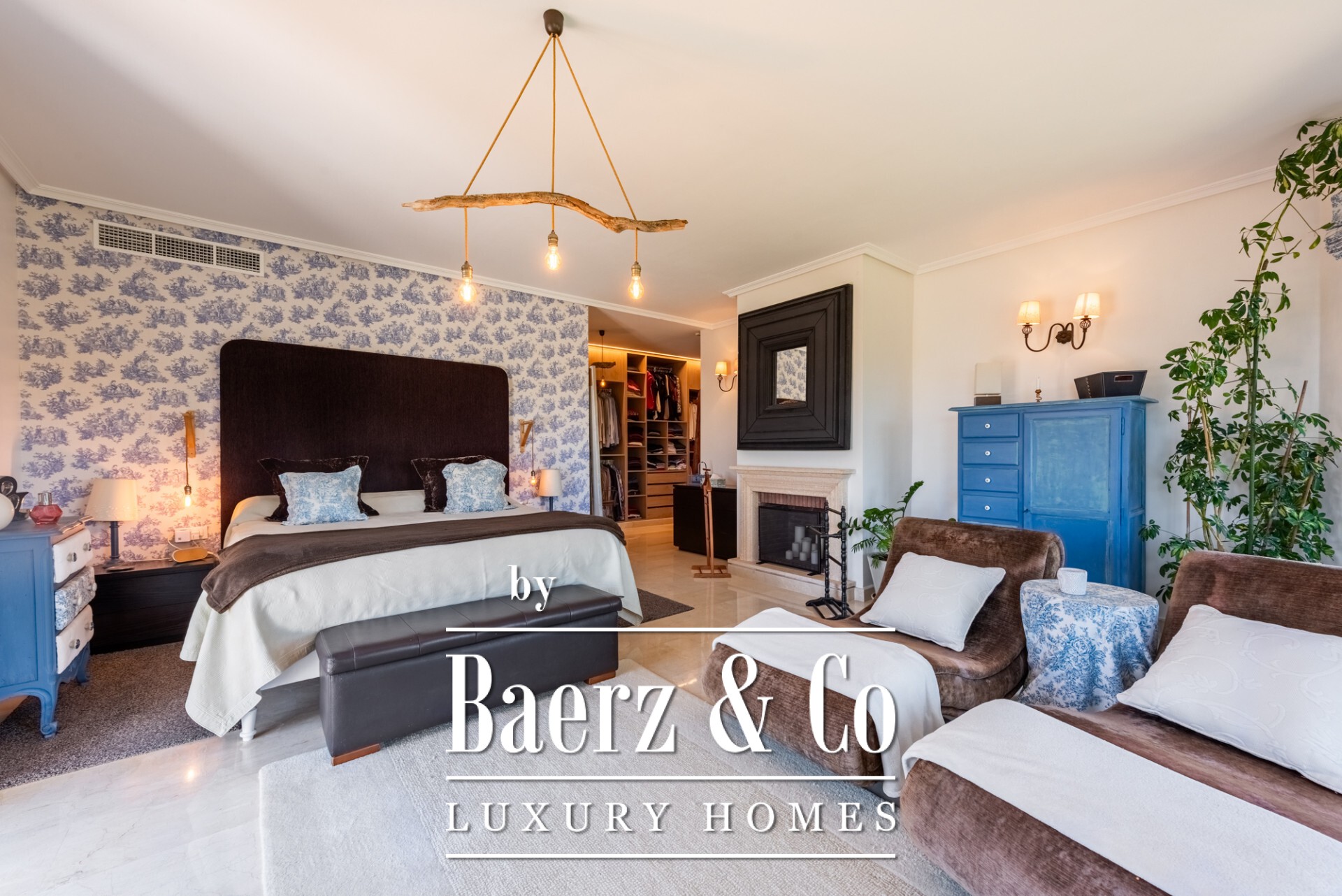 Cette villa propose six chambres et cinq salles de bains réparties sur trois niveaux, dont une suite parentale indépendante avec dressing et salle de bain attenante, ainsi qu’un espace invités distinct. Le rez-de-chaussée relie une cuisine entièrement équipée, une salle à manger conviviale et un salon avec cheminée, chacun s’ouvrant sur des terrasses couvertes et baignées de soleil, pour une expérience de vie fluide entre intérieur et extérieur. Le chauffage central par radiateurs et la climatisation assurent un confort optimal toute l’année.
