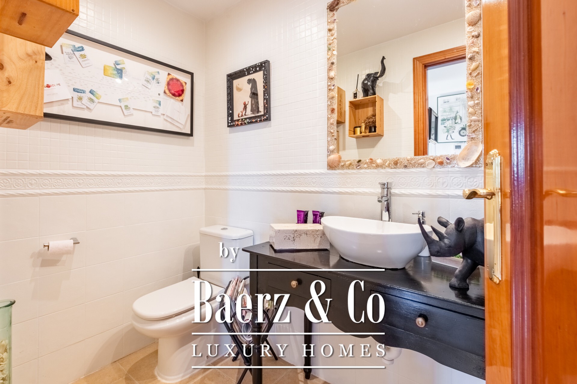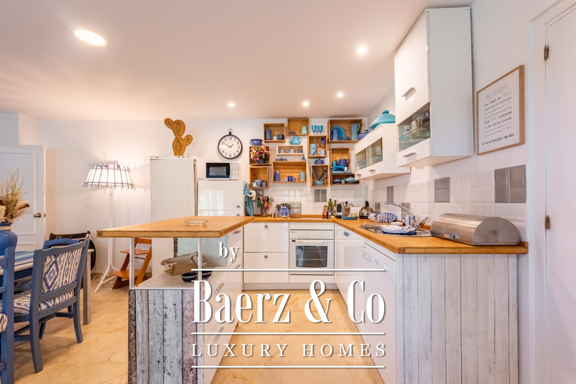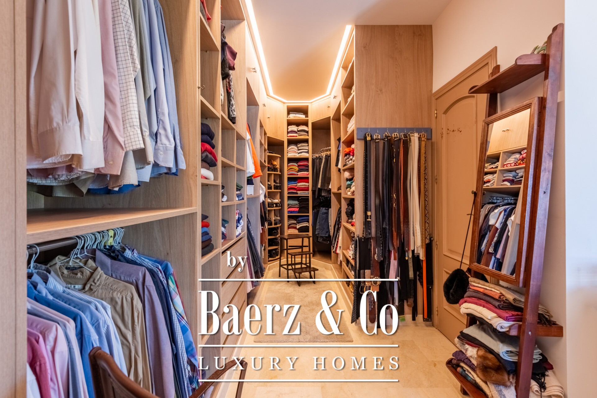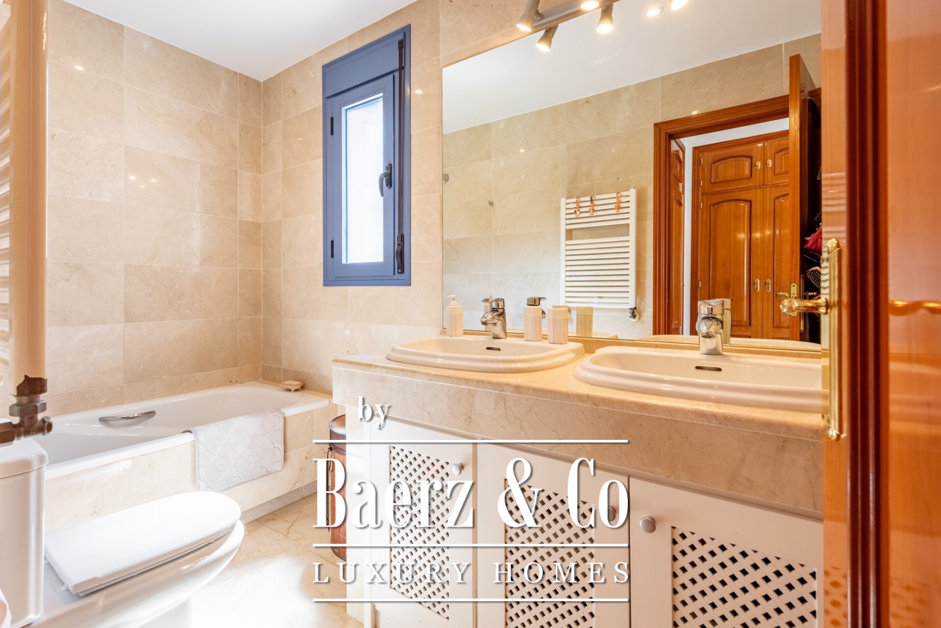 Le niveau inférieur abrite un appartement indépendant avec son propre espace de vie, idéal pour des invités ou le personnel. Plusieurs terrasses, une terrasse privative de 61 m² et une piscine d’eau salée prolongent l’espace de vie à l’extérieur, agrémentés de vues panoramiques sur le jardin et la piscine. La sécurité est assurée par une surveillance 24h/24 et un portail sécurisé. La proximité immédiate des clubs de plage, golfs, écoles et du port de plaisance vient sublimer encore davantage l’attrait de la villa.