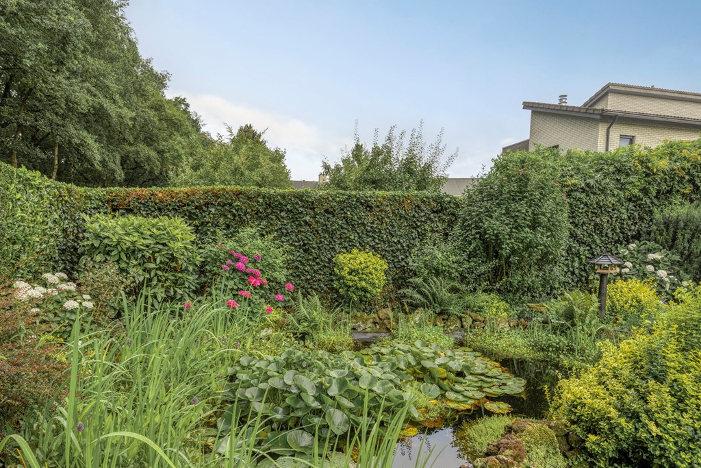 À l’étage, deux chambres remarquablement spacieuses bénéficient d’une abondante lumière naturelle par de larges fenêtres. La salle de bains principale dispose d’une baignoire, d’une douche à l’italienne et de deux vasques, le tout complété par un grenier séparé pour le rangement. La vie extérieure se dessine à l’arrière de la maison, où pelouse soignée, terrasse ensoleillée, bassin et massifs adultes offrent quiétude et intimité. Plusieurs espaces invitent à prendre le petit-déjeuner dehors ou à profiter des soirées estivales entre amis, tandis que le garage accueillerait volontiers passions et collections particulières.