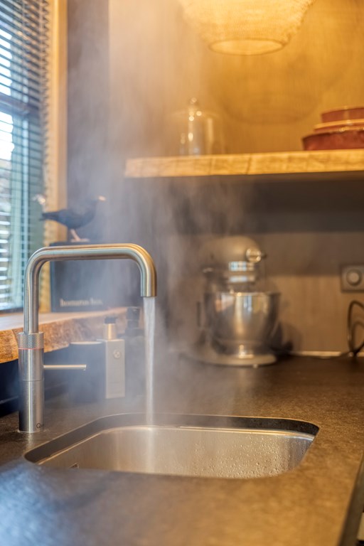 La cuisine conjugue esthétisme et fonctionnalité avec des façades dorées, des appareils haut de gamme, un robinet Quooker pour eau chaude et pétillante, et une vue sur le jardin. La praticité se prolonge dans la buanderie attenante, tandis qu’une grande chambre de plain-pied, bénéficiant d’un dressing et d’une salle de bains privative, préserve l’intimité avec son accès direct au jardin.
