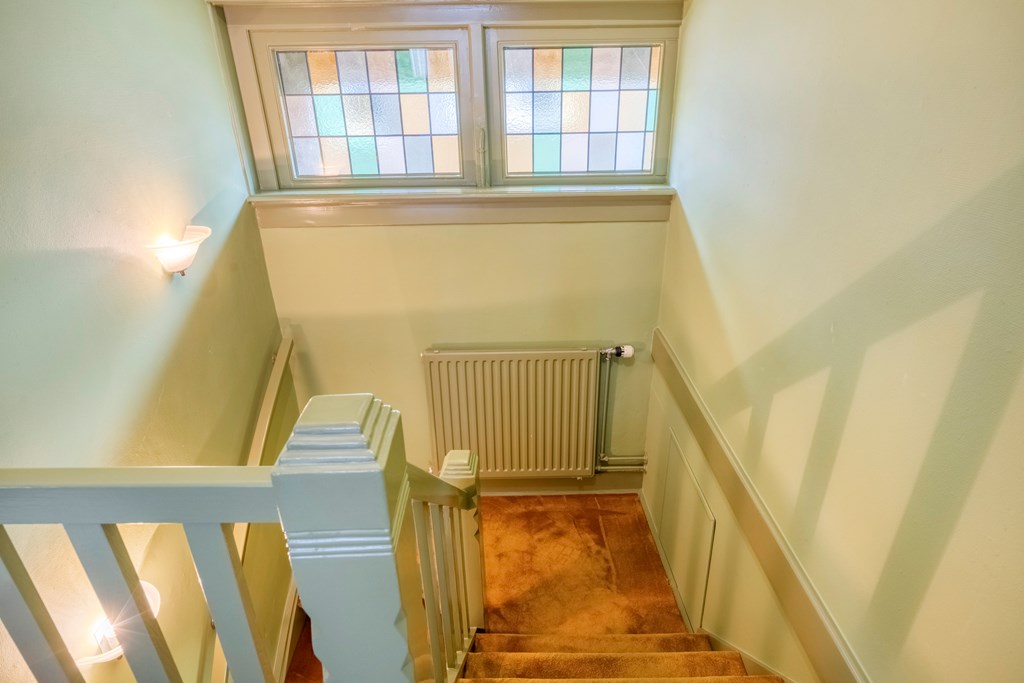 Dès l'entrée, les éléments patrimoniaux—vitraux, boiseries, lumière naturelle—soulignent le seuil. Le séjour s’organise en différents espaces, orchestre baies vitrées et bow-window, et s’ouvre sur une véranda reliant l’intérieur au jardin sud-ouest. Ici, intérieur et nature se fondent, les portes-fenêtres et terrasses favorisant une circulation fluide.