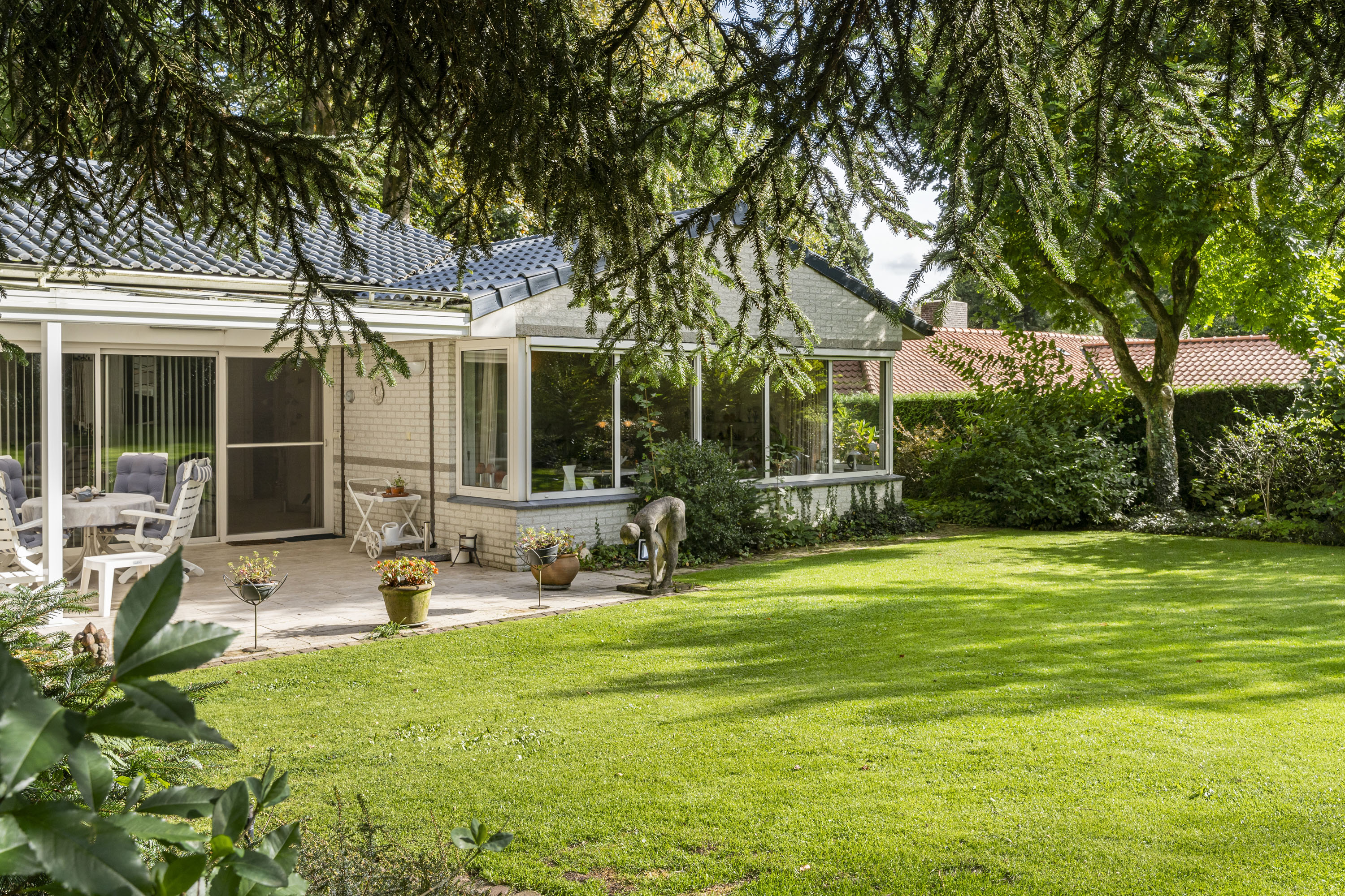 Le sous-sol accueille une cave à vins, de généreux espaces de rangement, un local technique et un grand garage pour deux voitures avec borne de recharge électrique. Le confort se retrouve partout grâce au chauffage au sol, à la classe énergétique A, à l’aspiration centralisée, aux systèmes de sécurité et à une isolation remarquable. Accessibilité, aussi bien dans la villa que pour rejoindre Velp, commodités locales et principaux aéroports, est totale, faisant de cette propriété une adresse de choix pour ceux qui recherchent intimité et raffinement. Parmi les villas de prestige proposées à Velp, cette résidence incarne exclusivité, sérénité et un fort attachement au lieu.