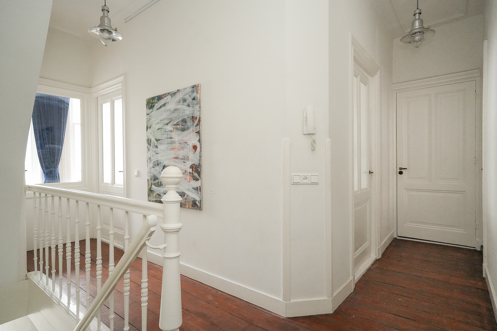 De woning beschikt over een eigen entree en een indrukwekkende leefverdieping met een ca. 6,8 meter brede woonkamer voorzien van hoge ramen en veel lichtinval. De aparte keuken met robuuste uitstraling en hardstenen werkblad staat in verbinding met het dakterras. Daarnaast is er een sfeervolle, separate eetkamer, ideaal voor lange diners met vrienden of familie.
