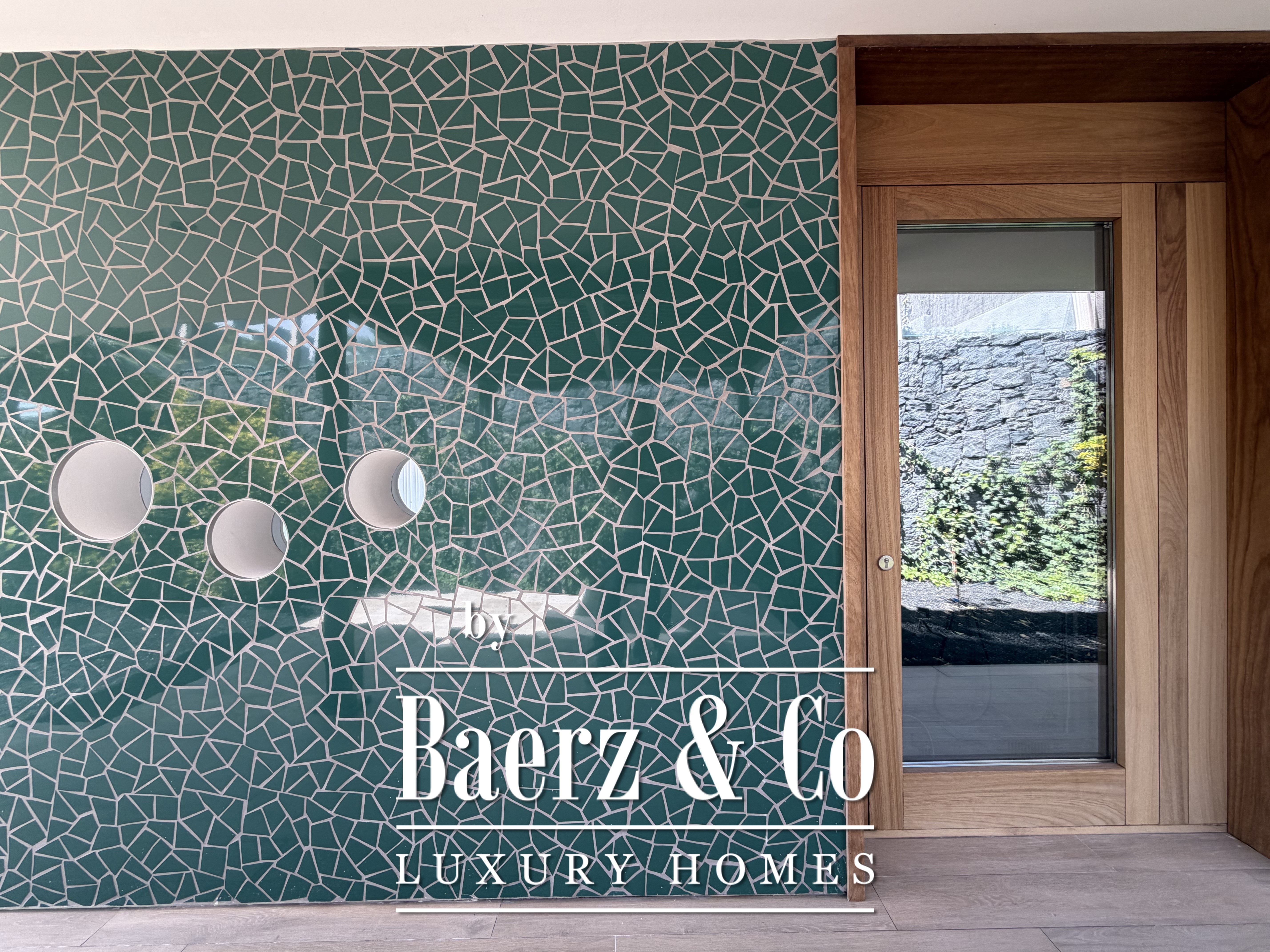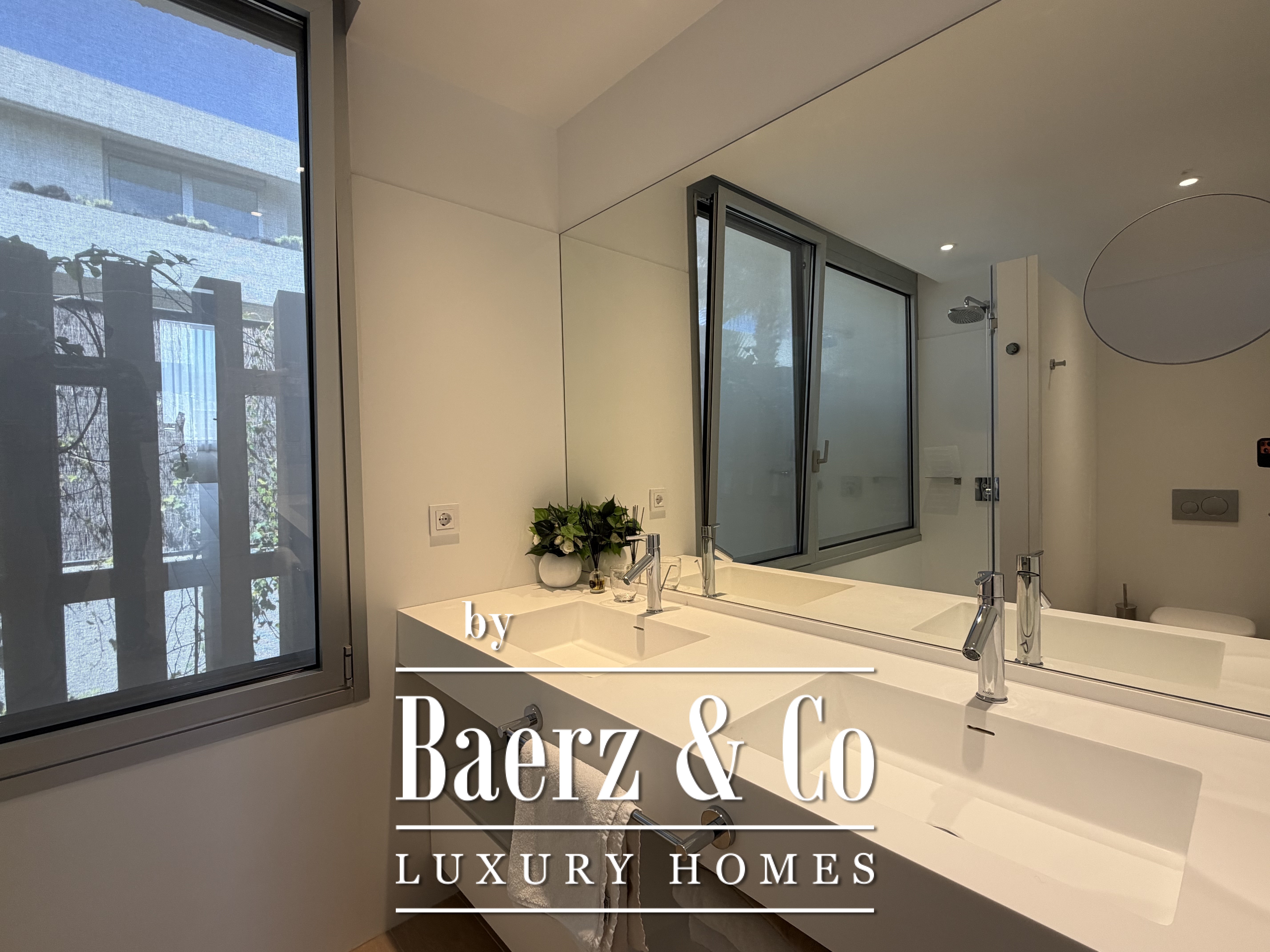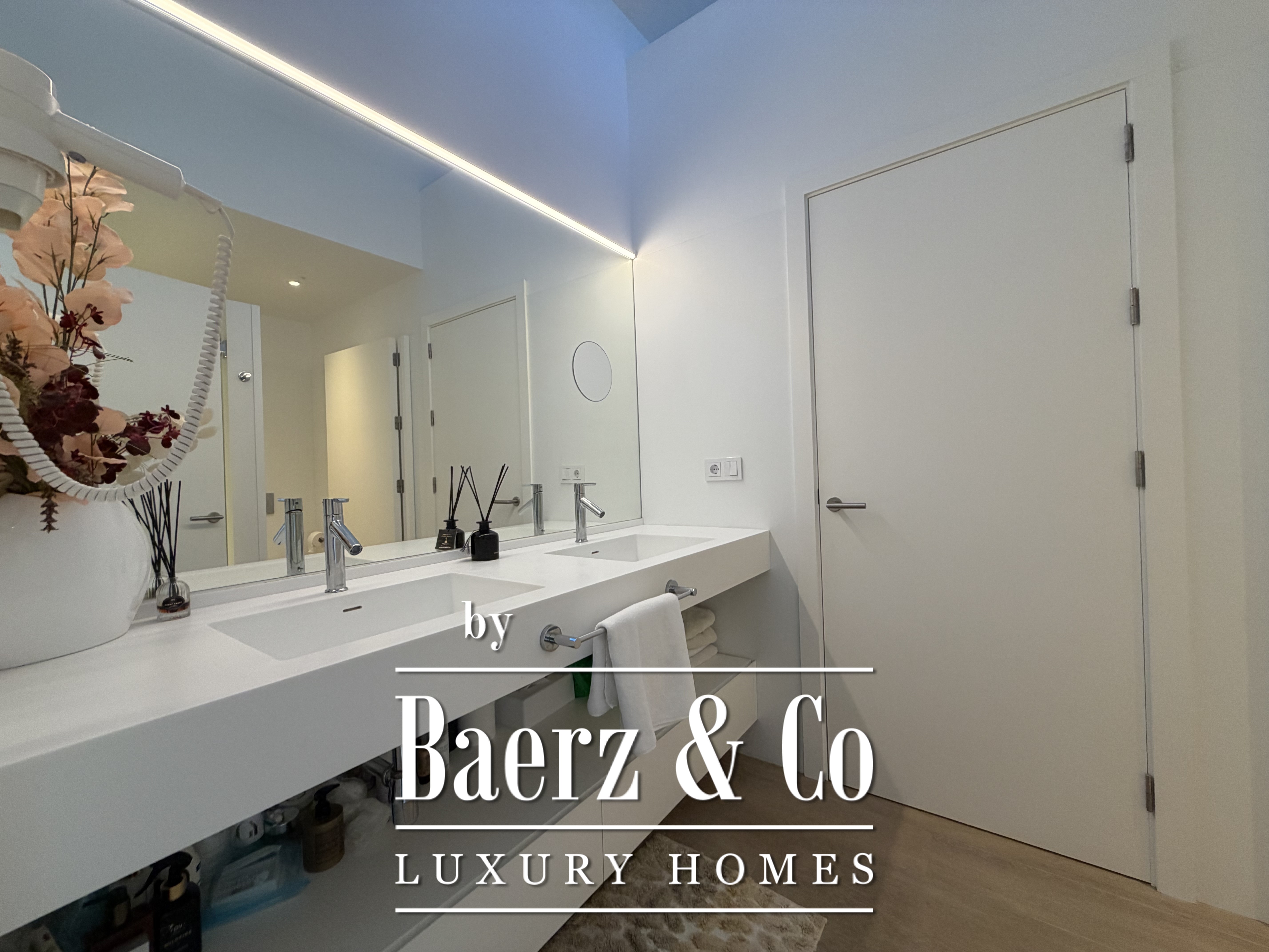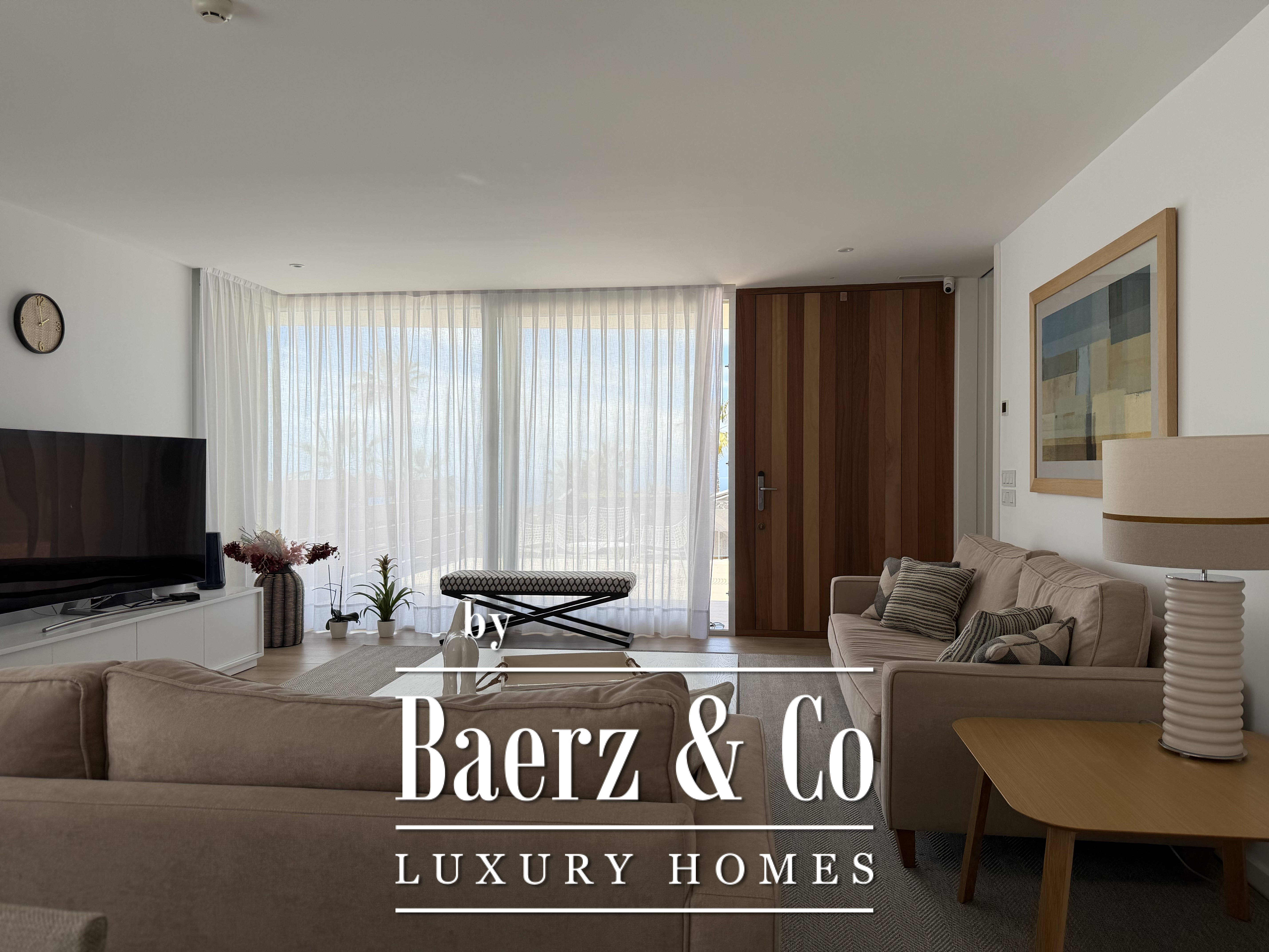 De woning beschikt over een garage voor één auto en een buggy en wordt volledig gemeubileerd verkocht met luxe meubilair, inclusief tuinmeubelen. De ramen zijn voorzien van automatische zonwering die het zonlicht reguleert zonder het natuurlijke licht te verliezen.