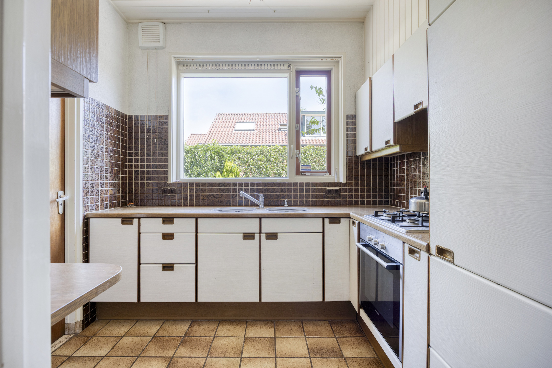 Via de hal loopt u door naar de keuken, die is voorzien van enkele inbouwapparatuur. Aansluitend bevindt zich de bijkeuken, met onder andere de cv-opstelling en de aansluiting voor uw wasmachine. Deze ruimte biedt eveneens direct toegang tot de oprit en de deur naar de achtertuin, ideaal wanneer u thuiskomt met boodschappen of even snel naar buiten wilt.