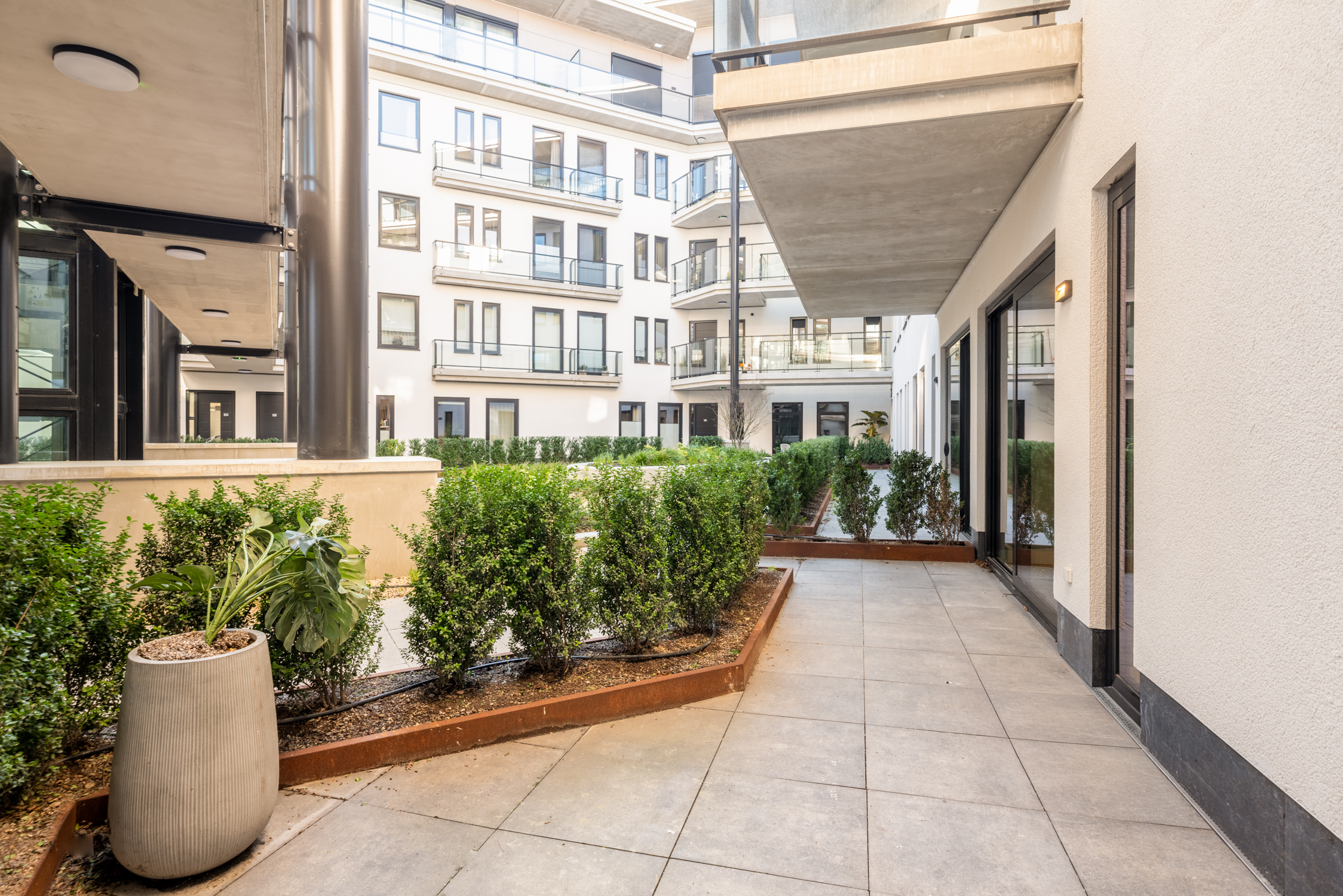 Aan de voorzijde ligt een heerlijke en zeer royale tuin en aan de achterzijde een zeer ruim terras over de volledige breedte van het appartement.