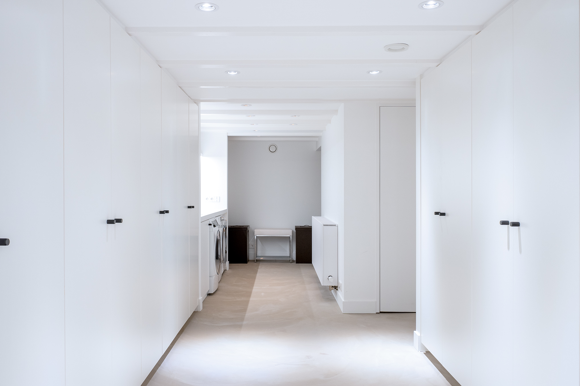 Middels de trap in de hal bereikt u het souterrain. Hier treft u eindeloos veel opbergmogelijkheden, een wasbak en de benodigde aansluitingen voor een wasmachine en een droger. Tevens treft u hier een ruimte perfect te gebruiken bijvoorbeeld als home cinema.