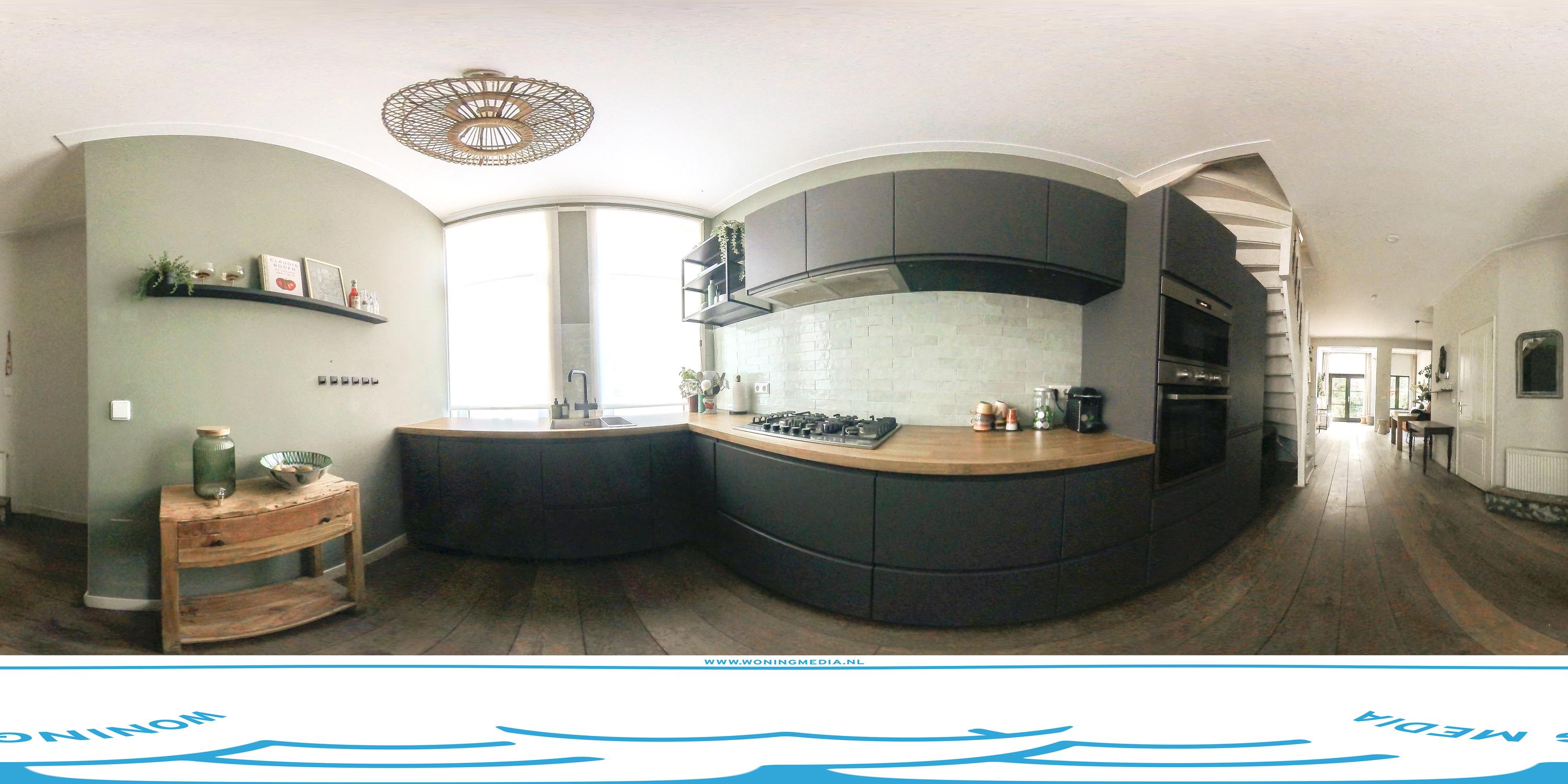 Middels de eigen entree aan de straatzijde en het tochtportaal bereikt u de open keuken en royale woonkamer welke aan de achterzijde is gelegen. Deze heeft een plafondhoogte van ruim 3 meter en wordt verlicht door een groot skylight en openslaande deuren naar de ruime achtertuin van ca. 49m². Deze is op het zuiden gesitueerd en biedt volop mogelijkheden voor een comfortabele loungehoek, een royale eettafel of een speelplek voor kinderen en is een heerlijke plek om de hele dag van de zon te genieten. De open keuken aan de voorzijde met zicht op de straat is voorzien van een spoelbak, Howat 3-1 kookwaterkraan, 5-pits gasfornuis, ingebouwde afzuigkap, vaatwasser, oven, magnetron, koelkast en een volwaardige vriezer.