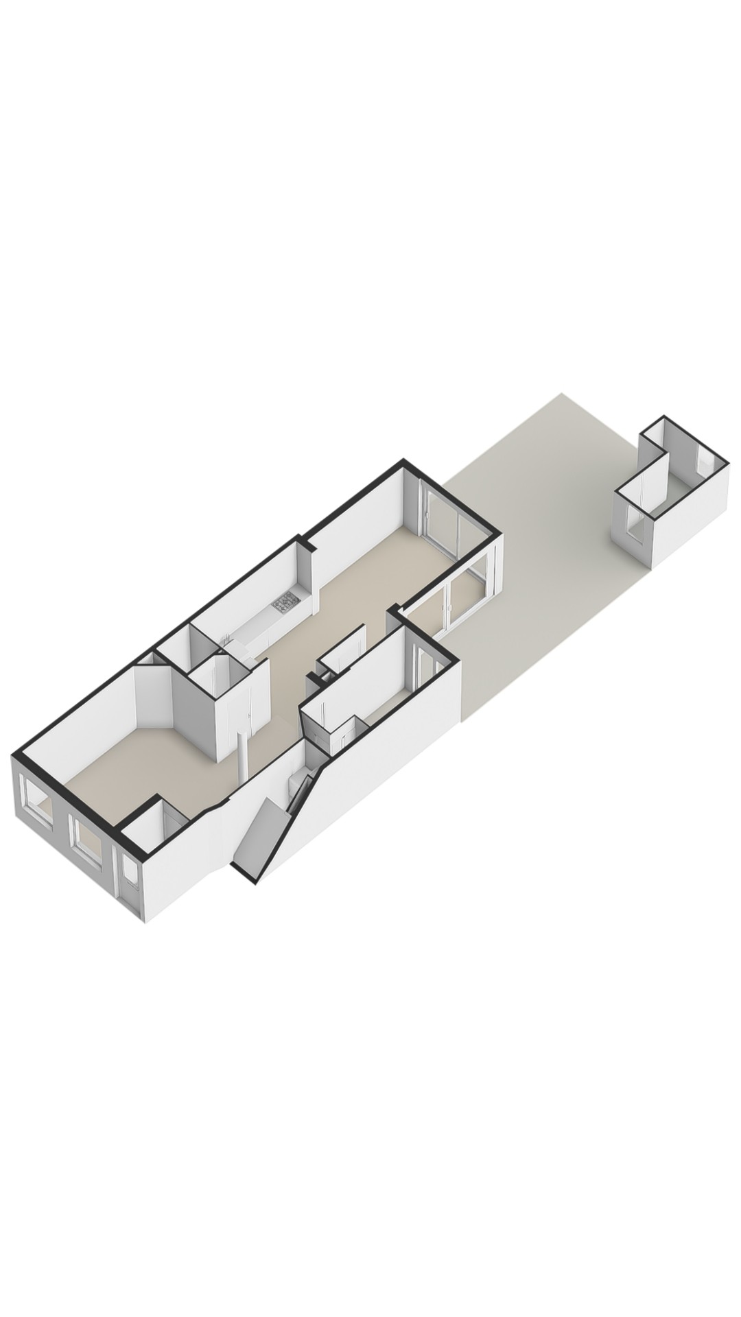 U betreedt de woning via uw eigen voordeur en komt binnen in het tochtportaal, dat toegang biedt tot de lichte woonkamer aan de voorzijde. De woonkamer is ruim opgezet en voorzien van grote raampartijen, waardoor er een prettige hoeveelheid natuurlijk daglicht binnenvalt.